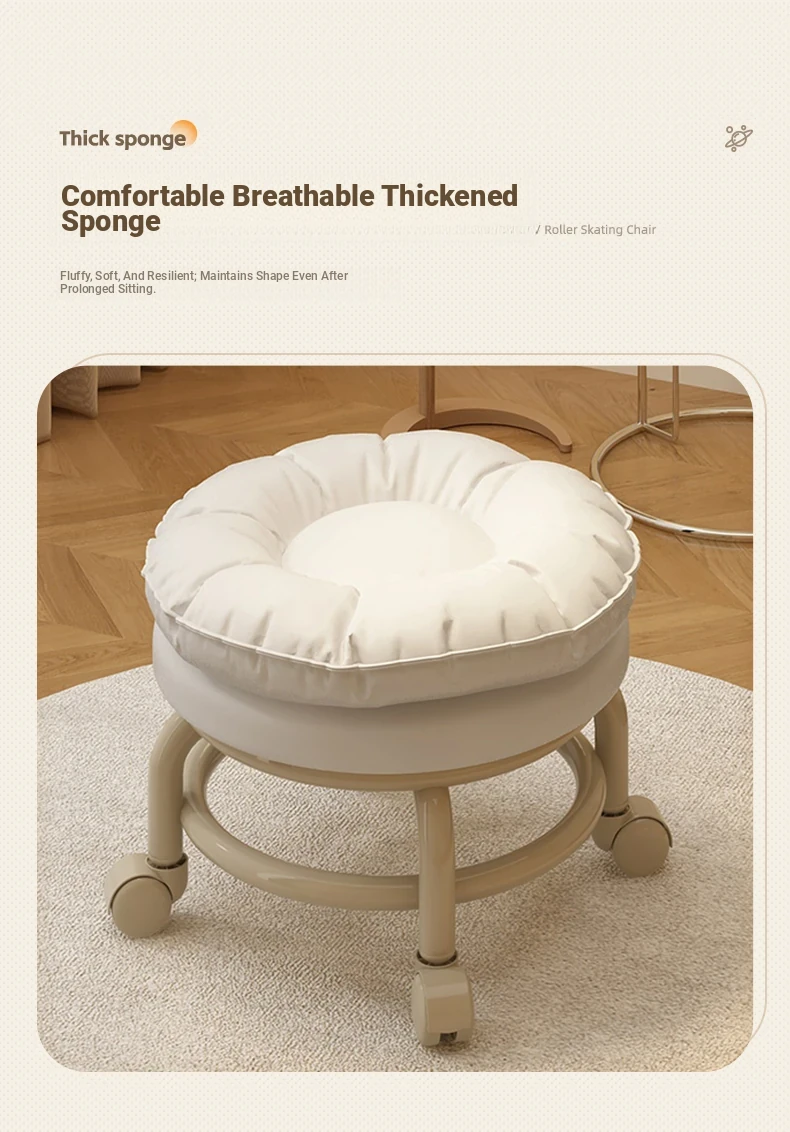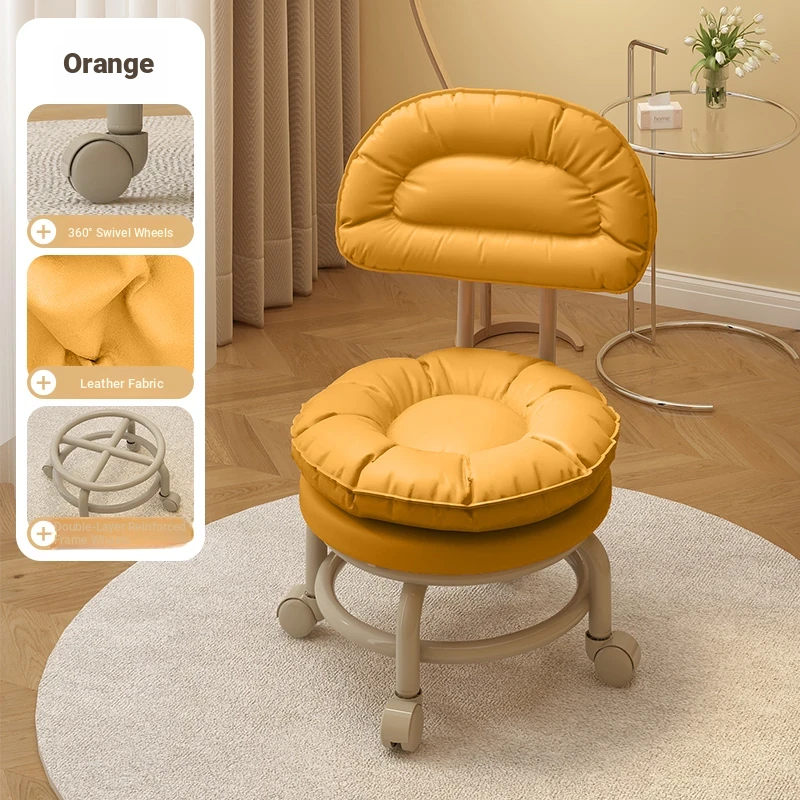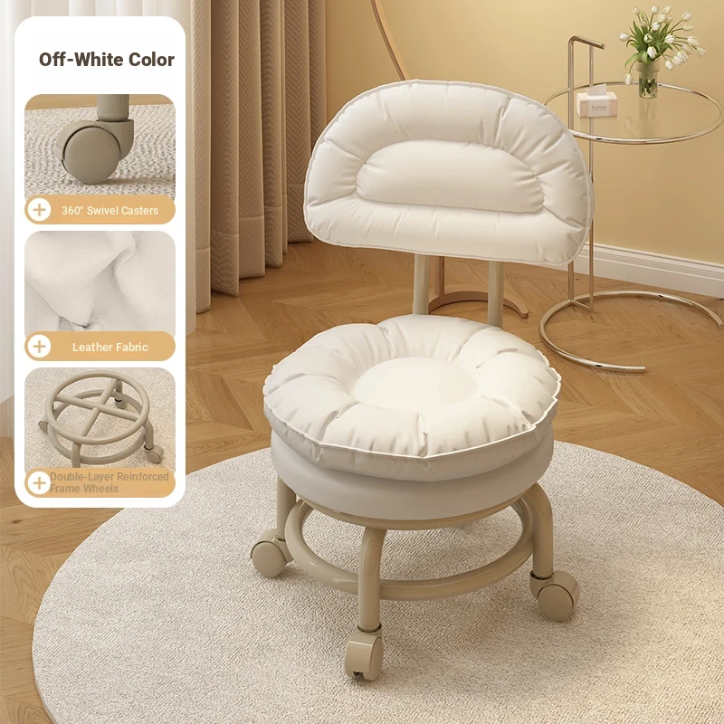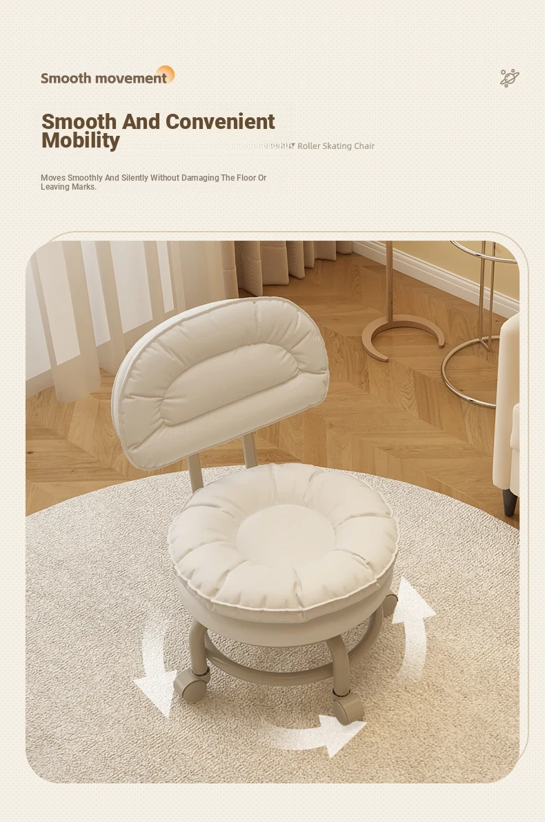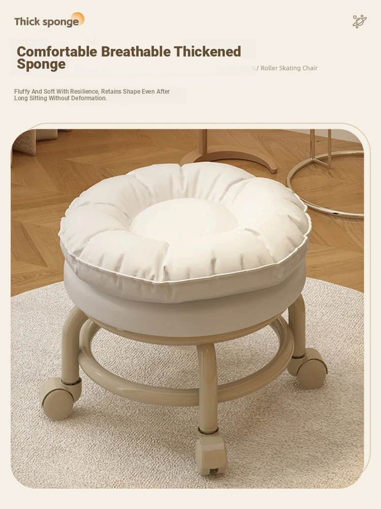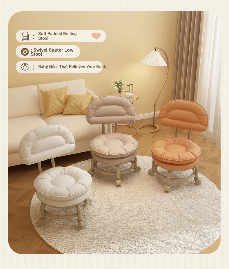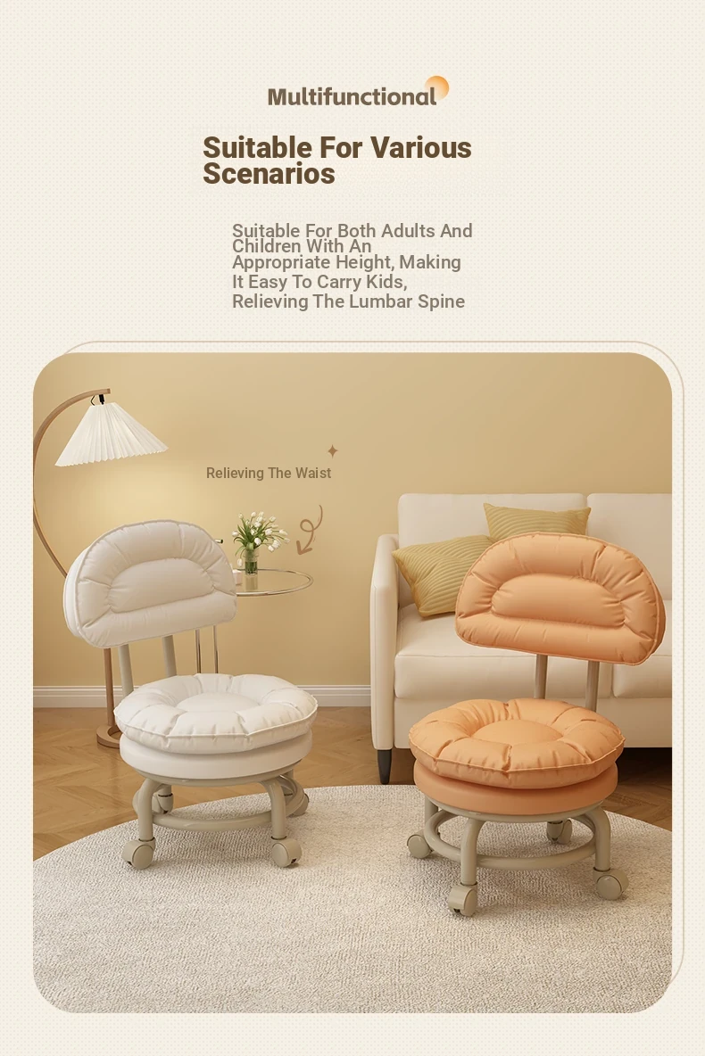 Multifunctional Rolling Stool for Home - Lightweight Low Stool with Wheels, Round Design Ideal for Kids' Learning, Perfect for Parents with Children, Lazy Chair with Back Support