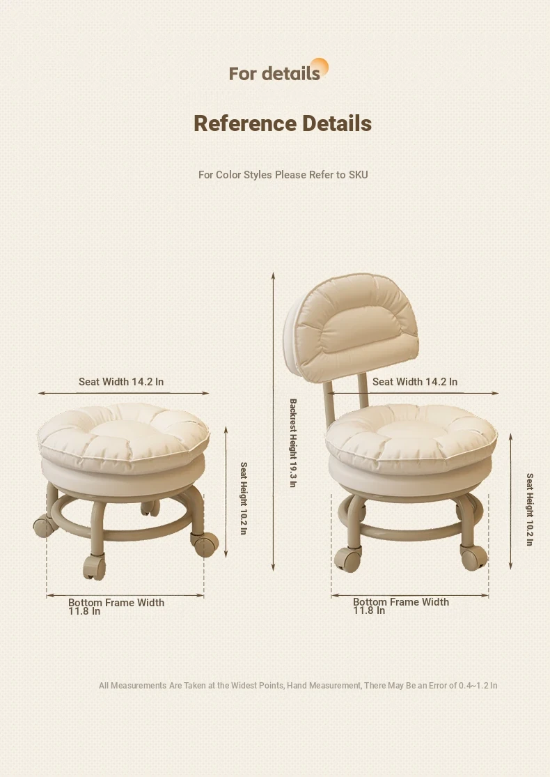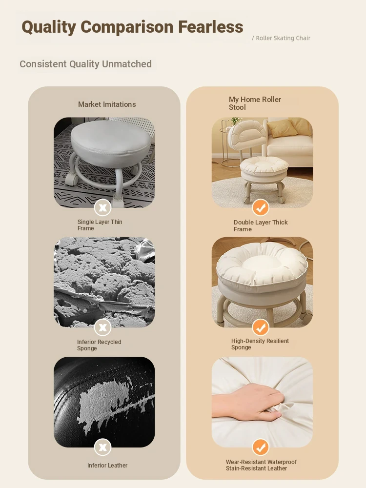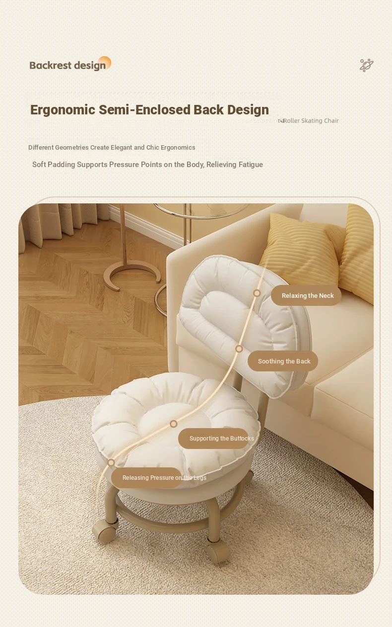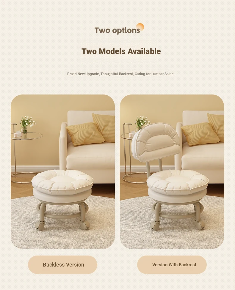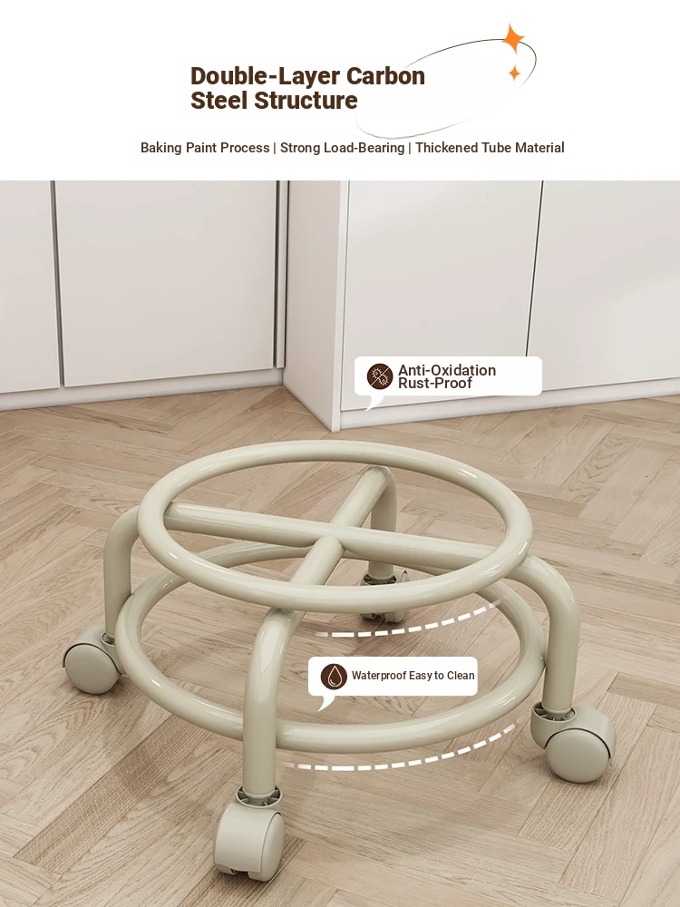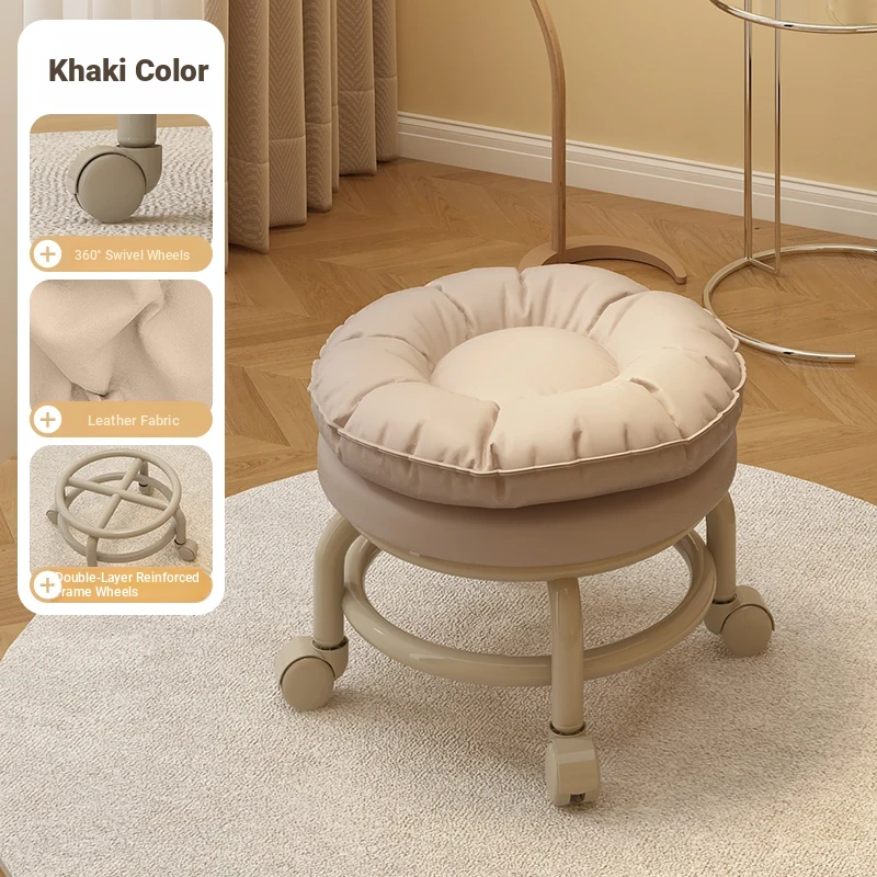 Multifunctional Rolling Stool for Home - Lightweight Low Stool with Wheels, Round Design Ideal for Kids' Learning, Perfect for Parents with Children, Lazy Chair with Back Support