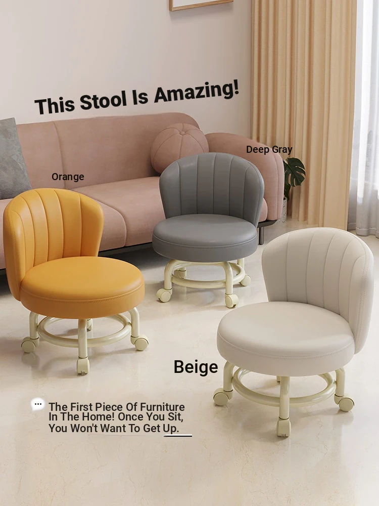 Multifunctional Rolling Stool for Kids - Compact Universal Pulley Design, Perfect for Shoe Changing at Home, Baby Walker Aid, and Portable with Backrest for Comfortable Seating!