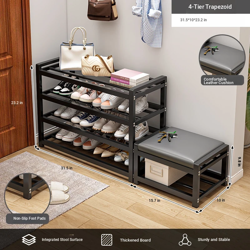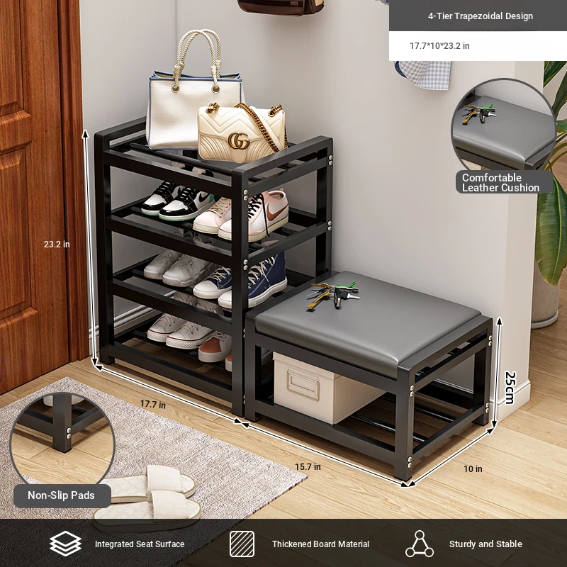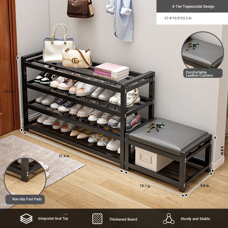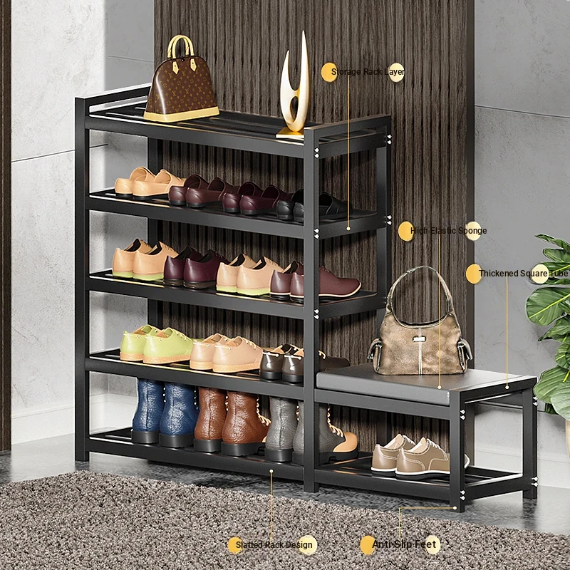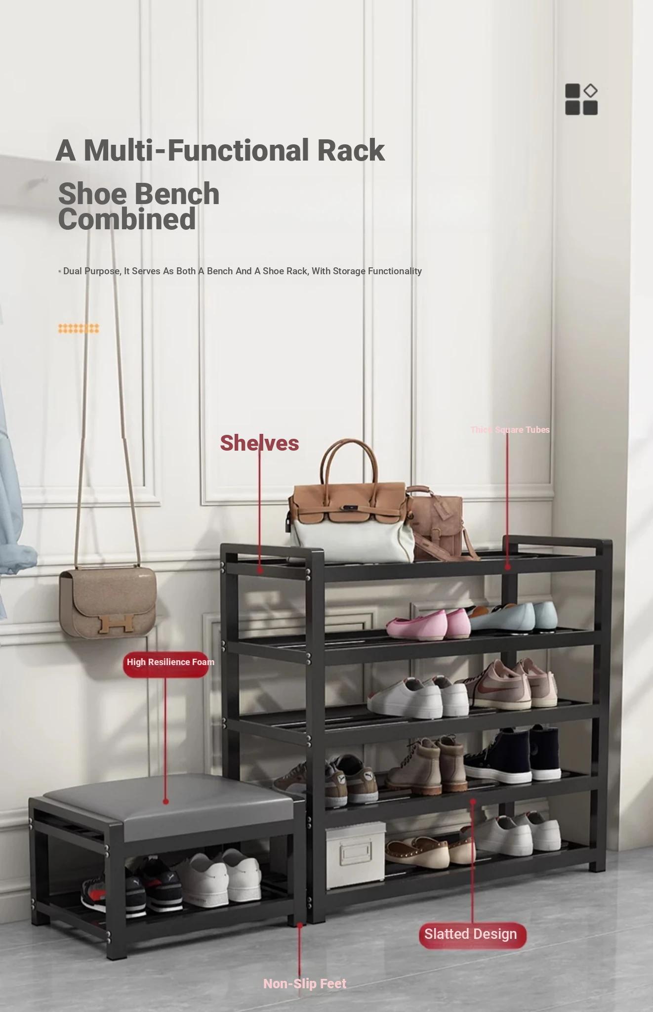 Multi-Layer Steel Shoe Rack for Home - Stylish Metal Entryway Organizer, Perfect for Indoor Use, Durable and Functional Shoe Cabinet with Seating Option for Your Hallway