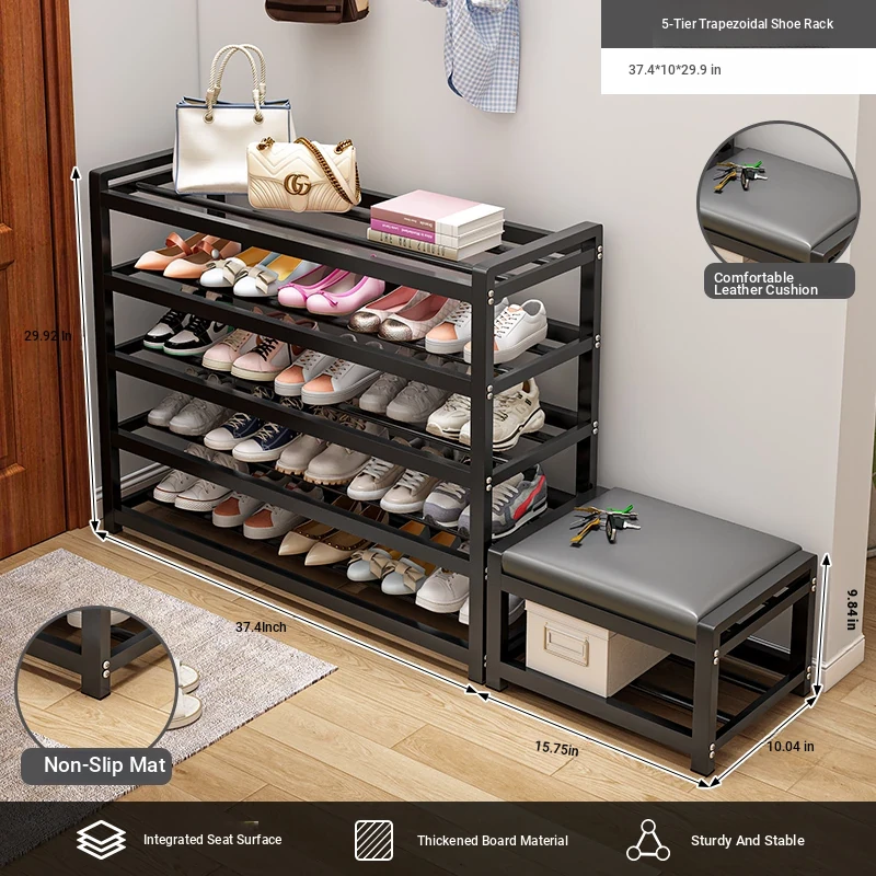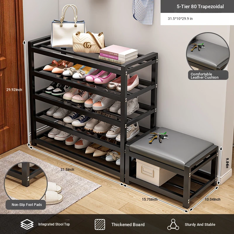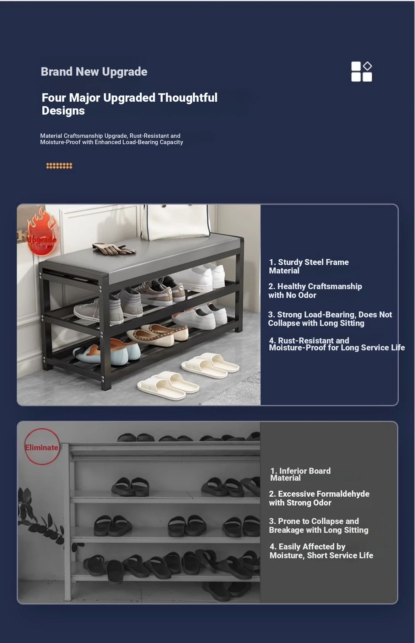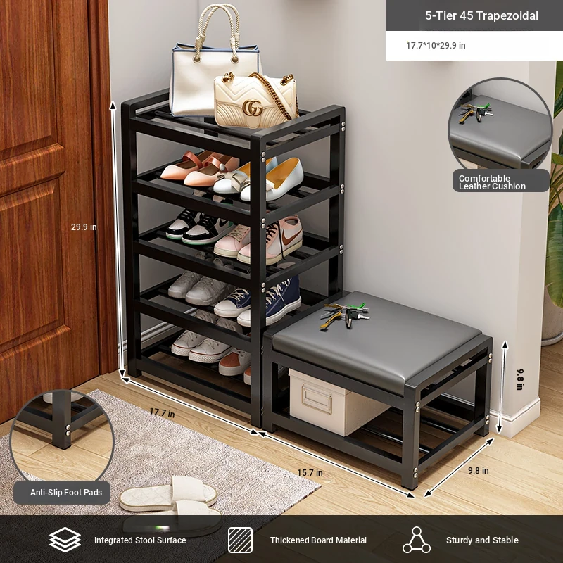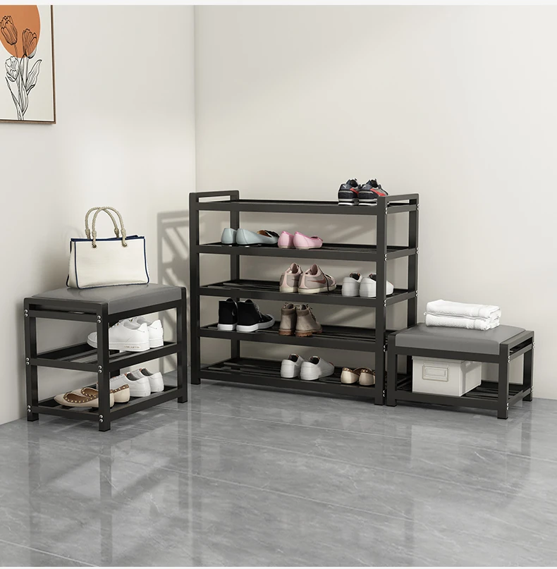 Multi-Layer Steel Shoe Rack for Home - Stylish Metal Entryway Organizer, Perfect for Indoor Use, Durable and Functional Shoe Cabinet with Seating Option for Your Hallway