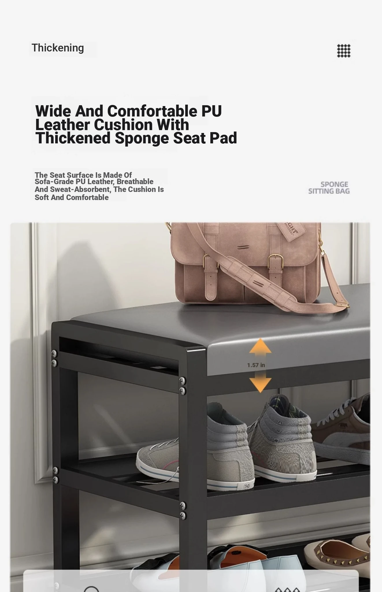 Pu leather cushion 4 layers long 31.50in [thickened carbon steel⭐Strong load-bearing]