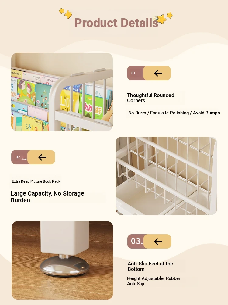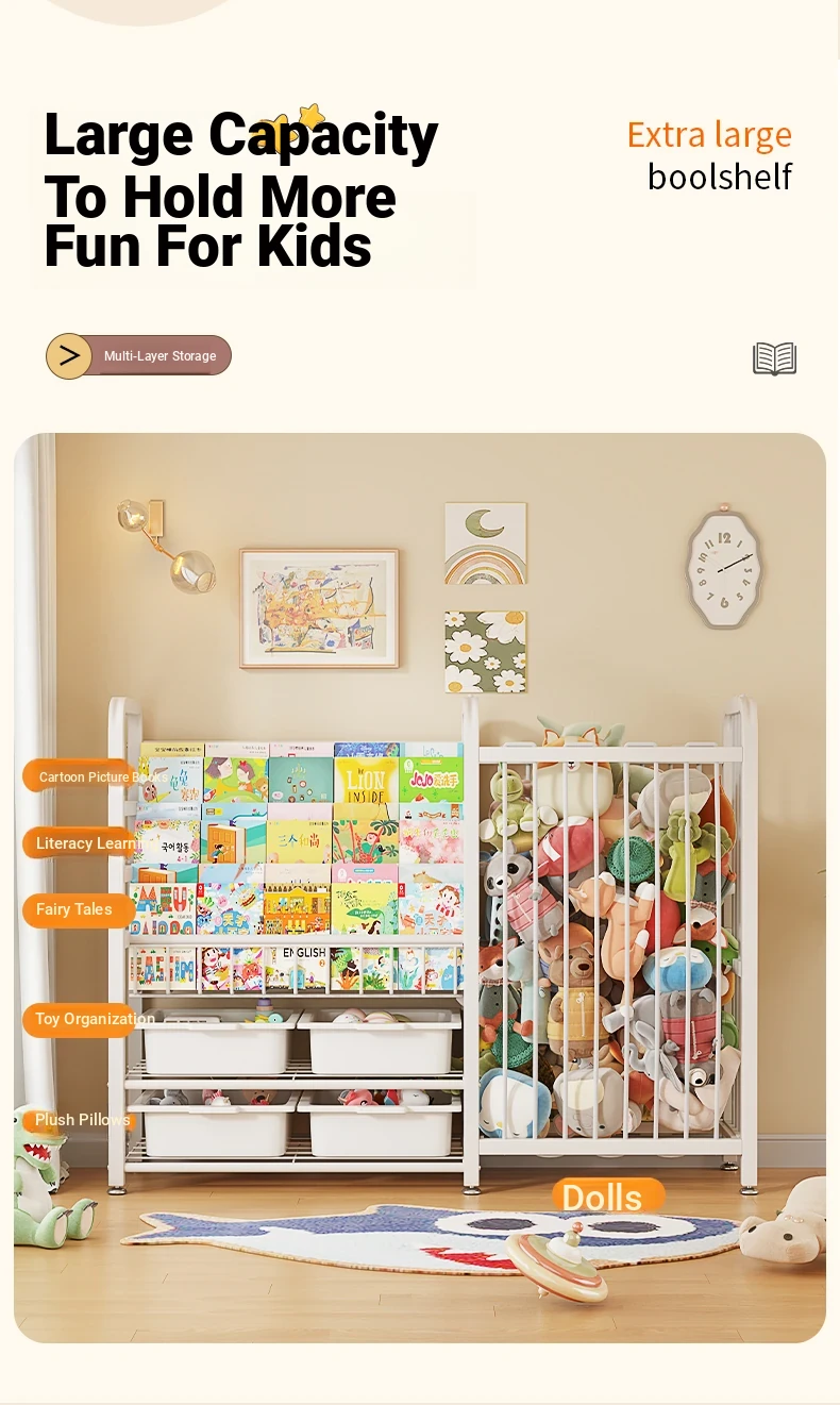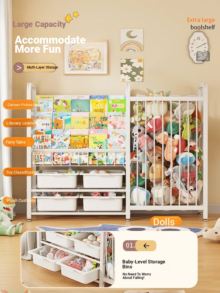 Multi-Tiered Children's Bookshelf and Storage Rack - Spacious Organizer for Picture Books and Toys - Perfect for Home Use with Ample Storage Capacity and Easy Classification