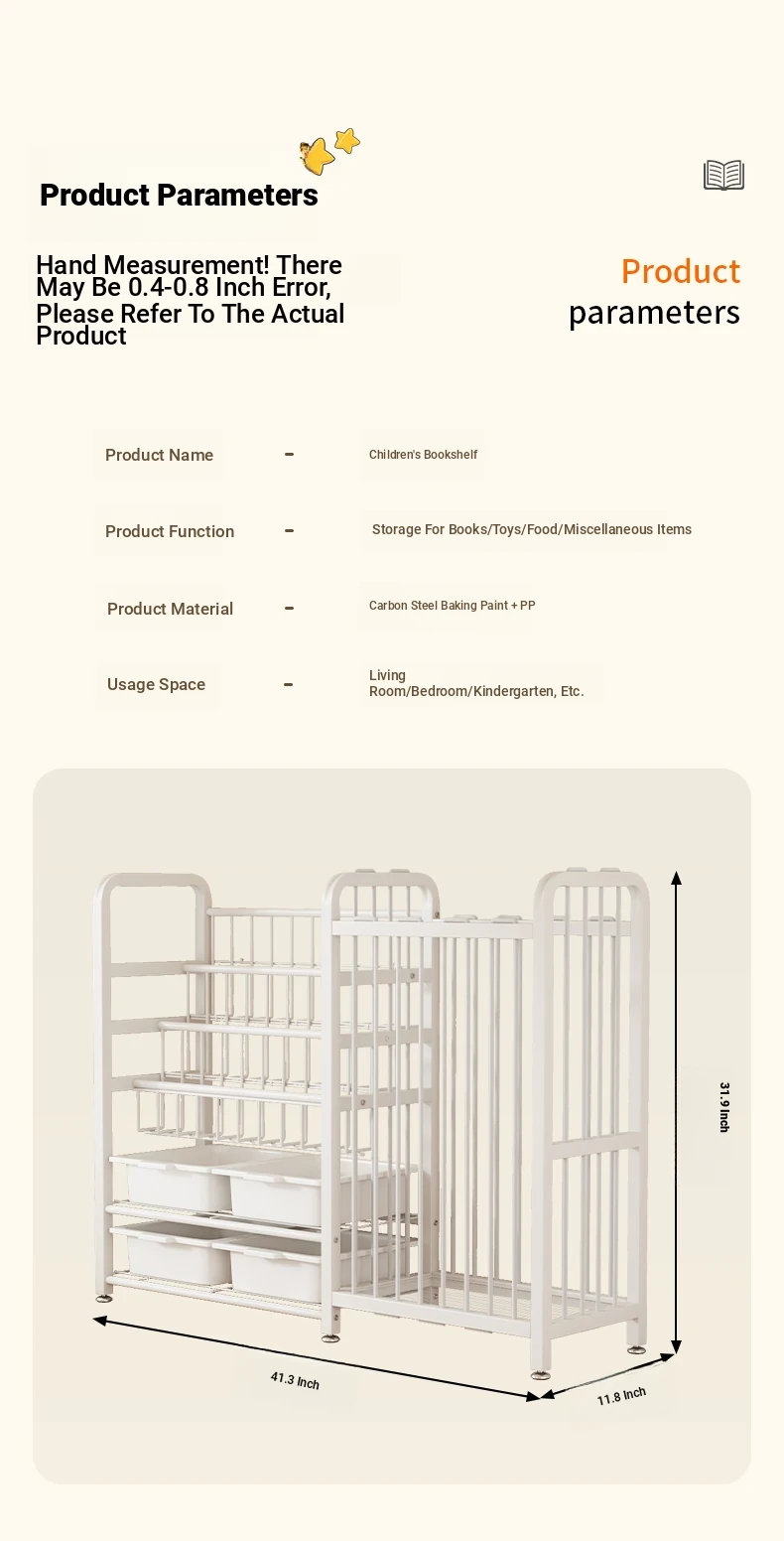105 long [thick carbon steel] 3-layer bookshelf +2-layer storage + toy basket