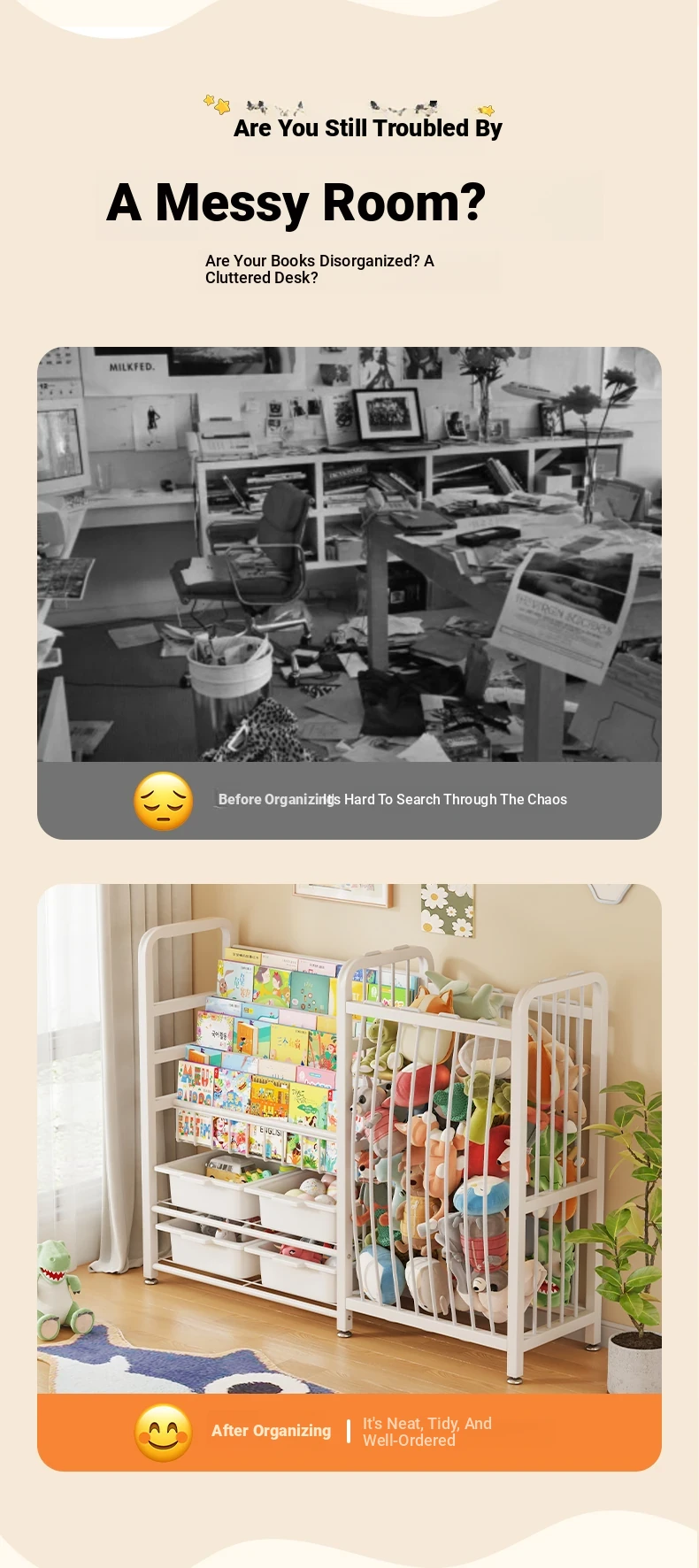 105 long [thick carbon steel] 3-layer bookshelf +2-layer storage +2 boxes + toy basket