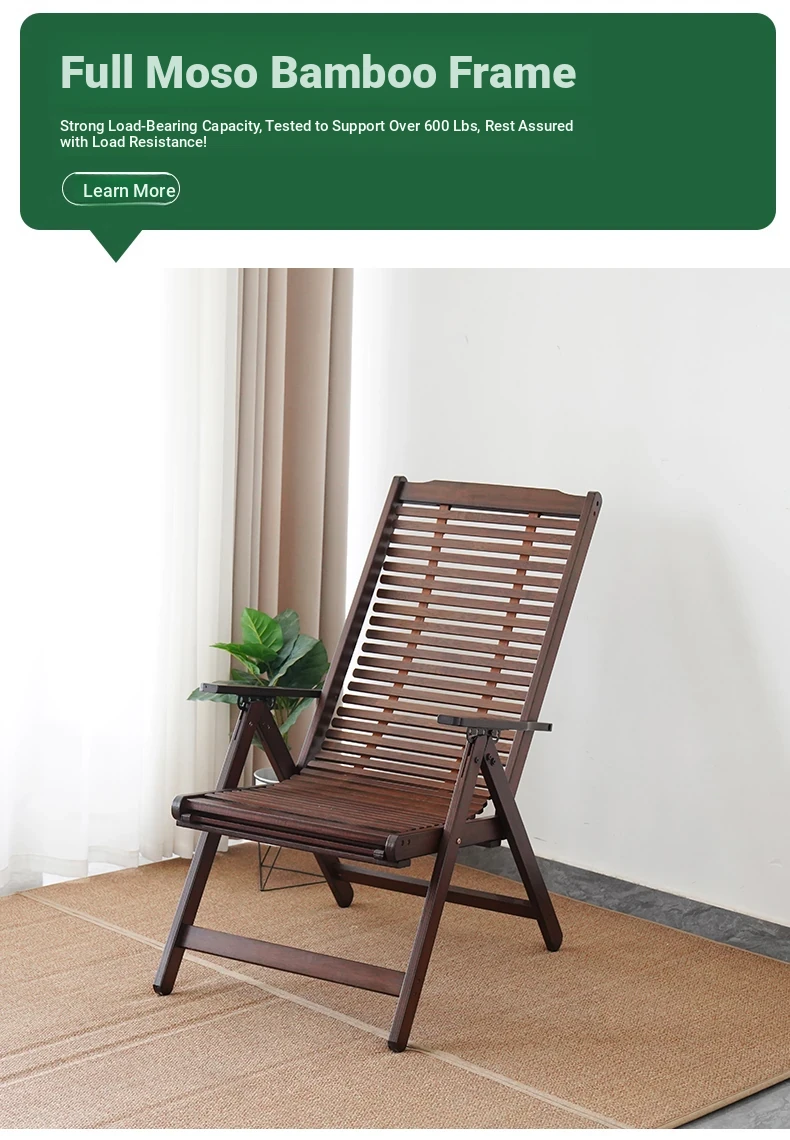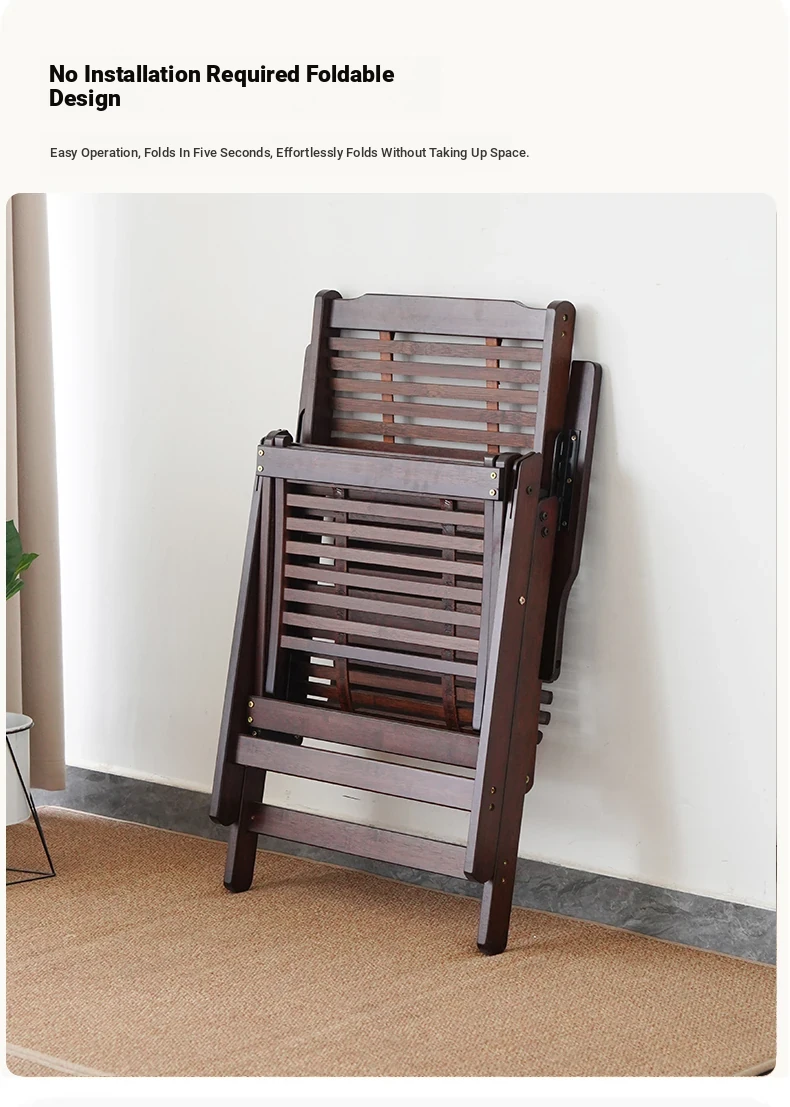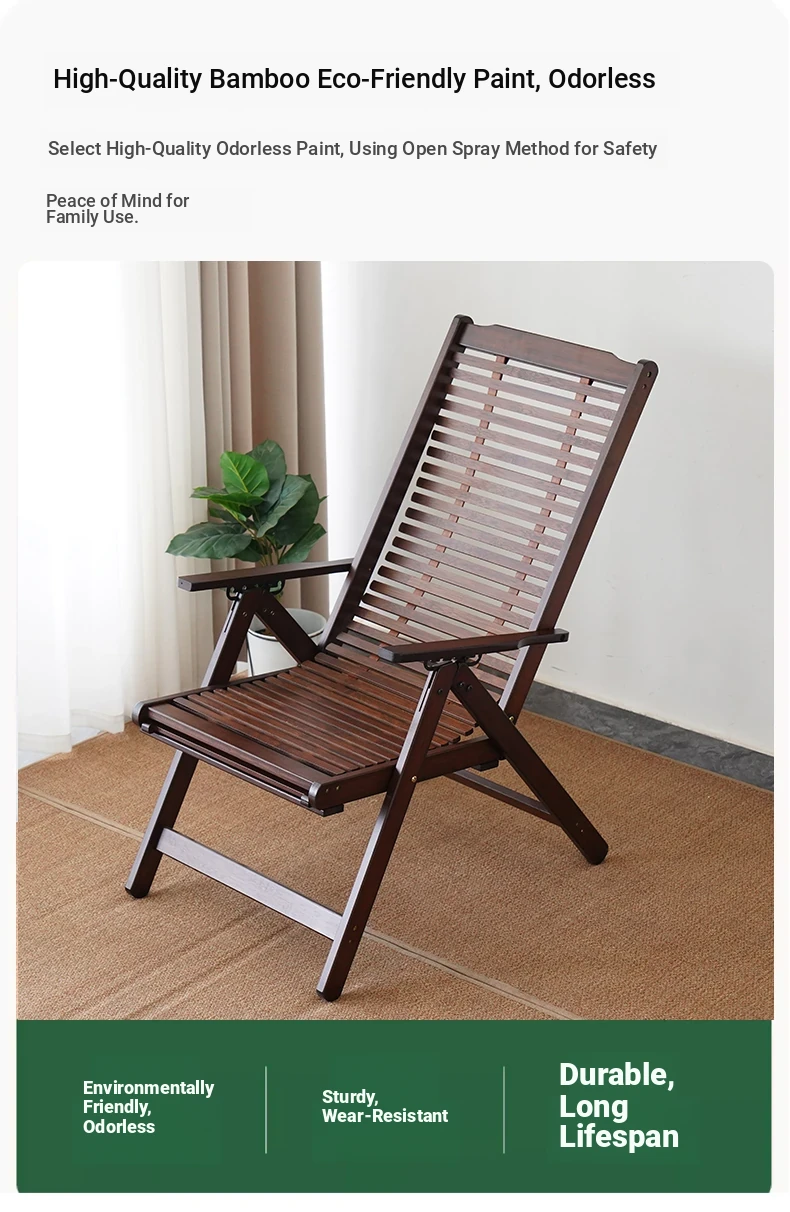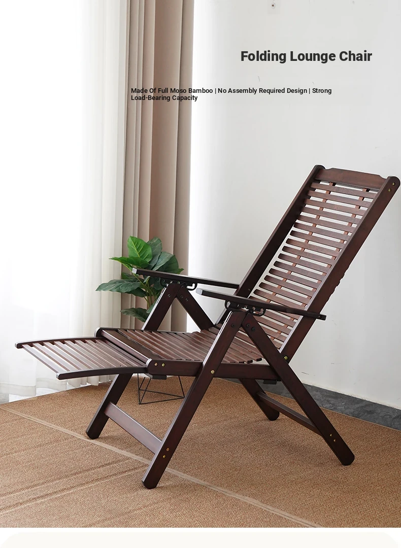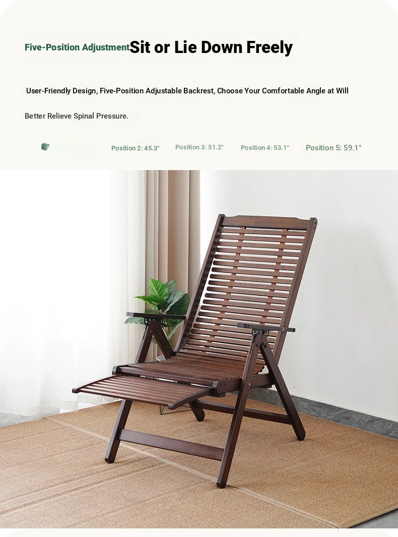 Outdoor Bamboo Folding Lounge Chair - Versatile Sit and Sleep Design for Adults, Perfect for Napping at Home or Relaxing on the Balcony. Ideal for Seniors Seeking Comfort and Style.