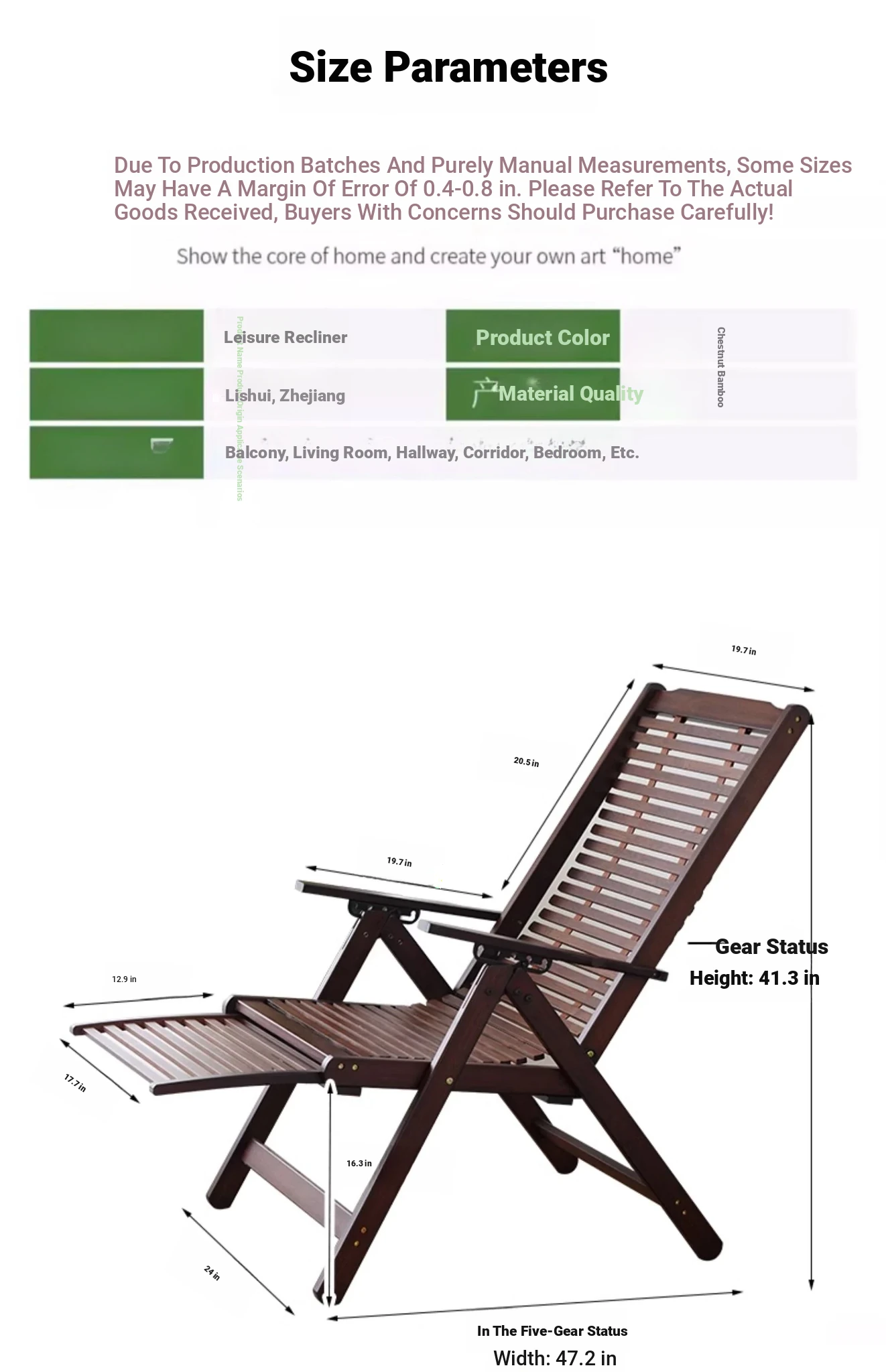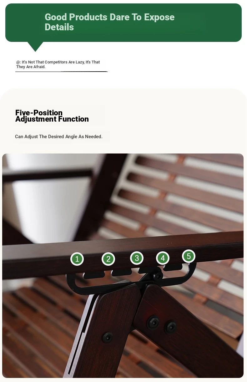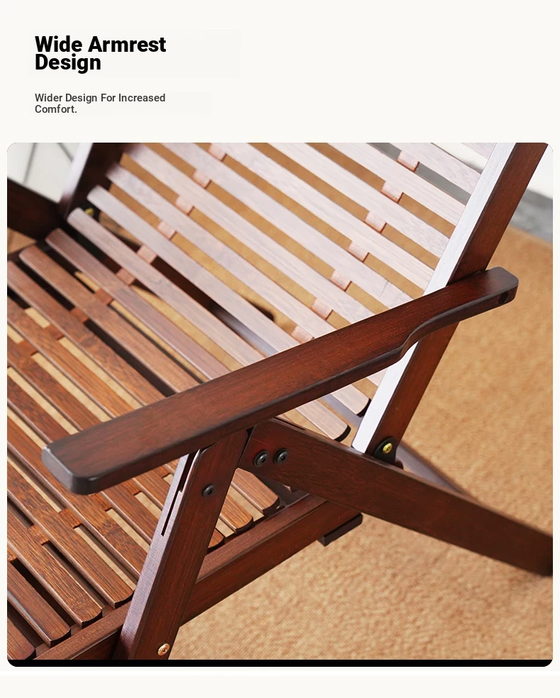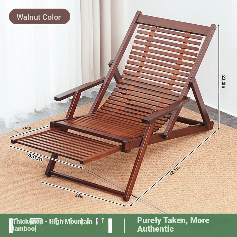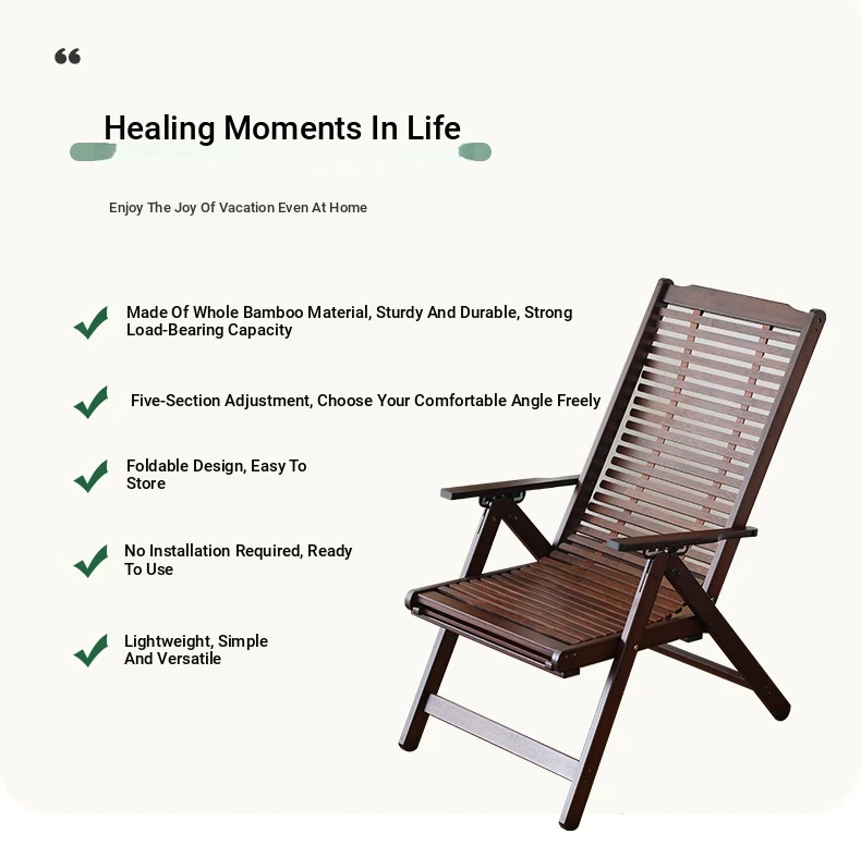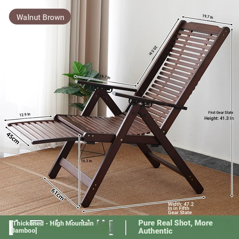 Outdoor Bamboo Folding Lounge Chair - Versatile Sit and Sleep Design for Adults, Perfect for Napping at Home or Relaxing on the Balcony. Ideal for Seniors Seeking Comfort and Style.