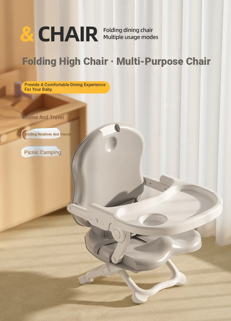 Portable Foldable Baby High Chair - Multi-Functional Dining Seat for Infants and Toddlers (1-3 Years) - Perfect for Outdoor Use, Easy to Store and Transport