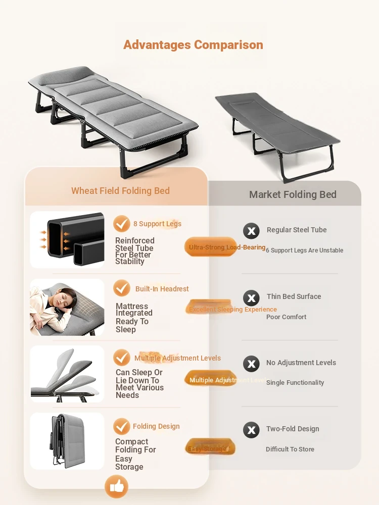 Portable Folding Bed - Perfect for Office Naps, Hospital Care, and Outdoor Adventures - Comfortable Backrest Chair for Ultimate Relaxation!