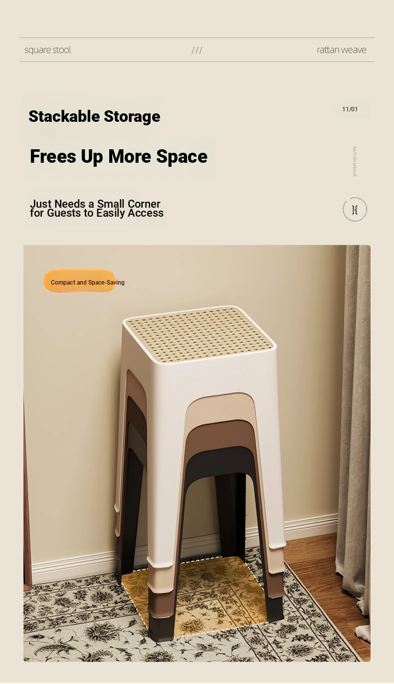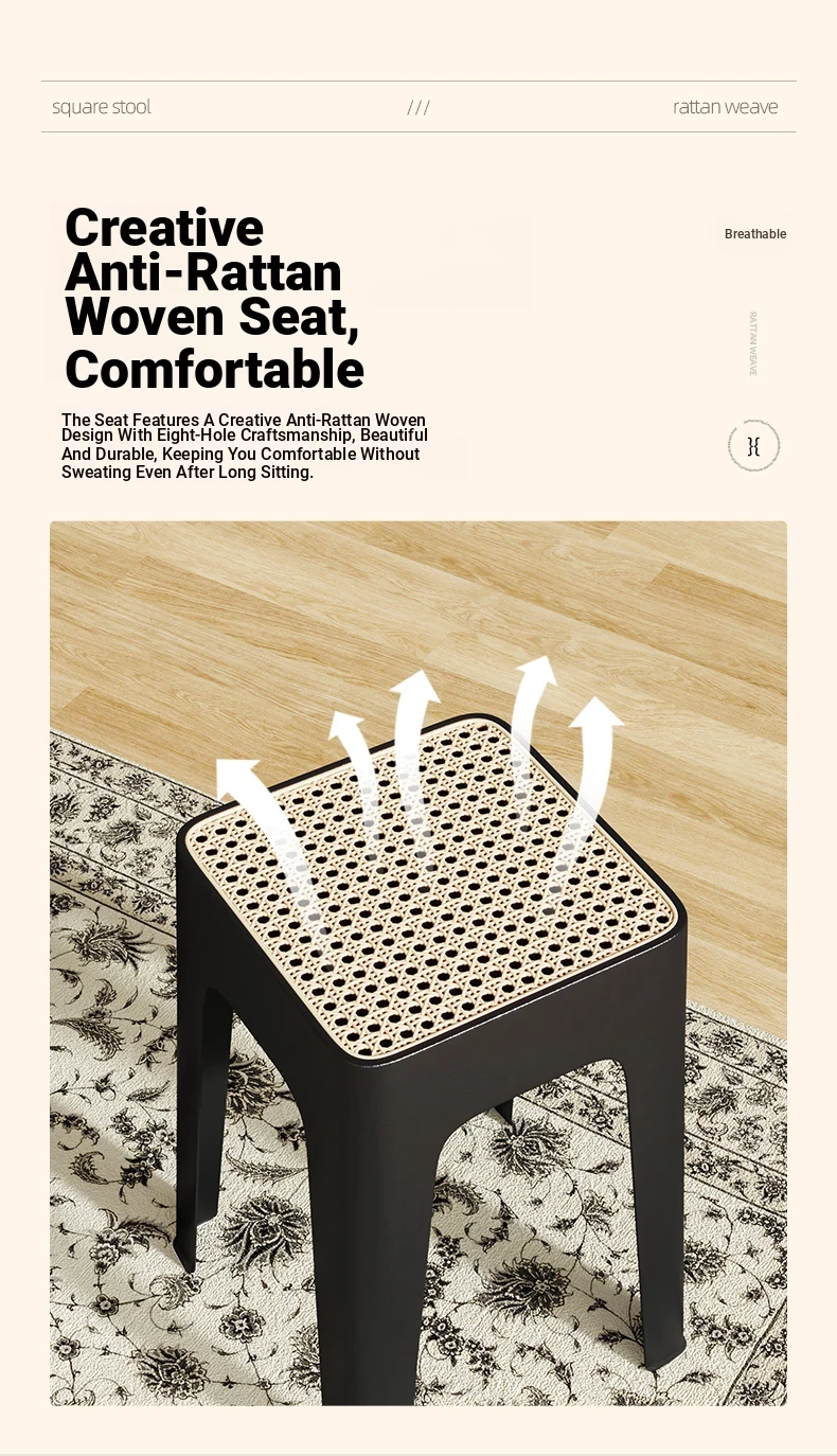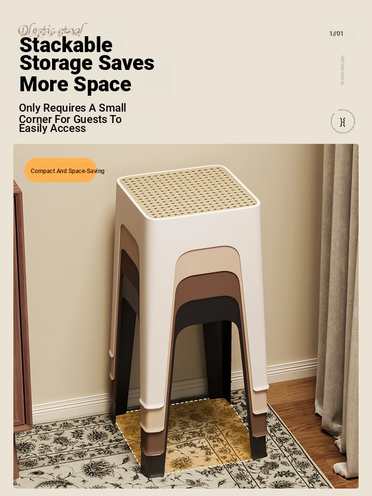 Premium Thickened Plastic Stool for Home Use - Sturdy, Durable, and Lightweight High Chair with Elegant Design, Perfect for Dining Tables and Stackable for Easy Storage.