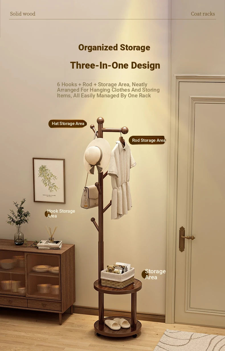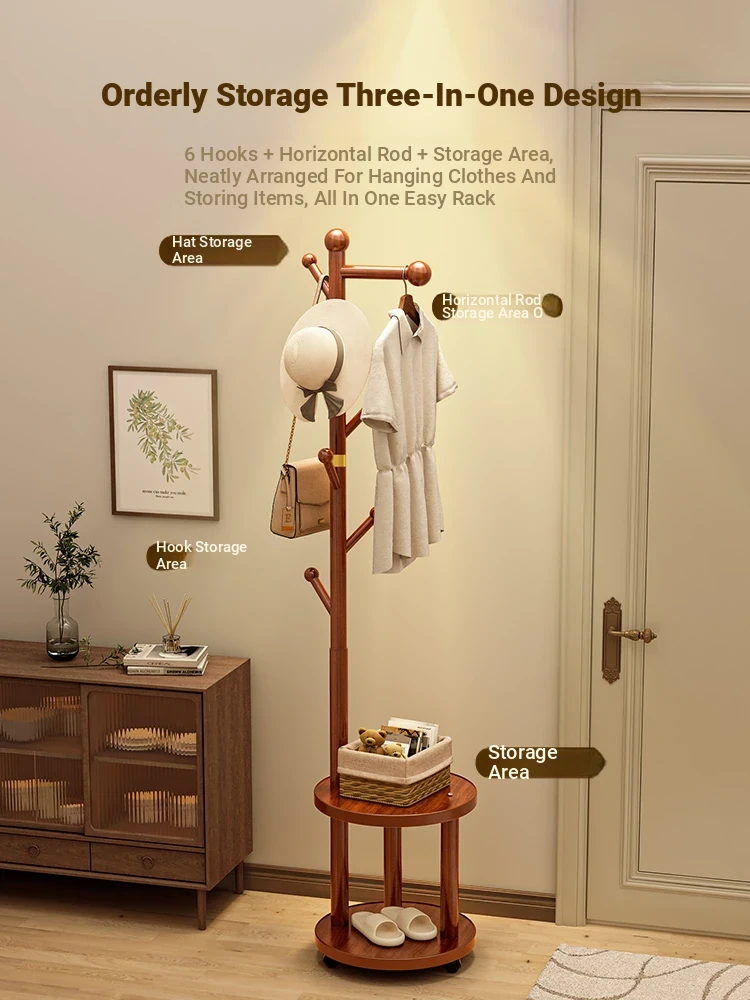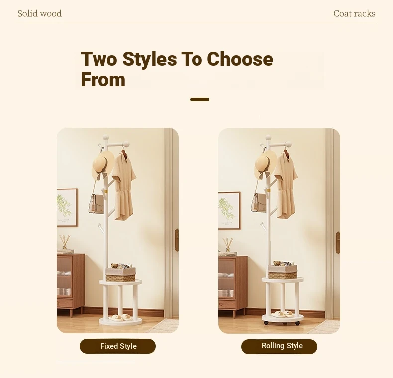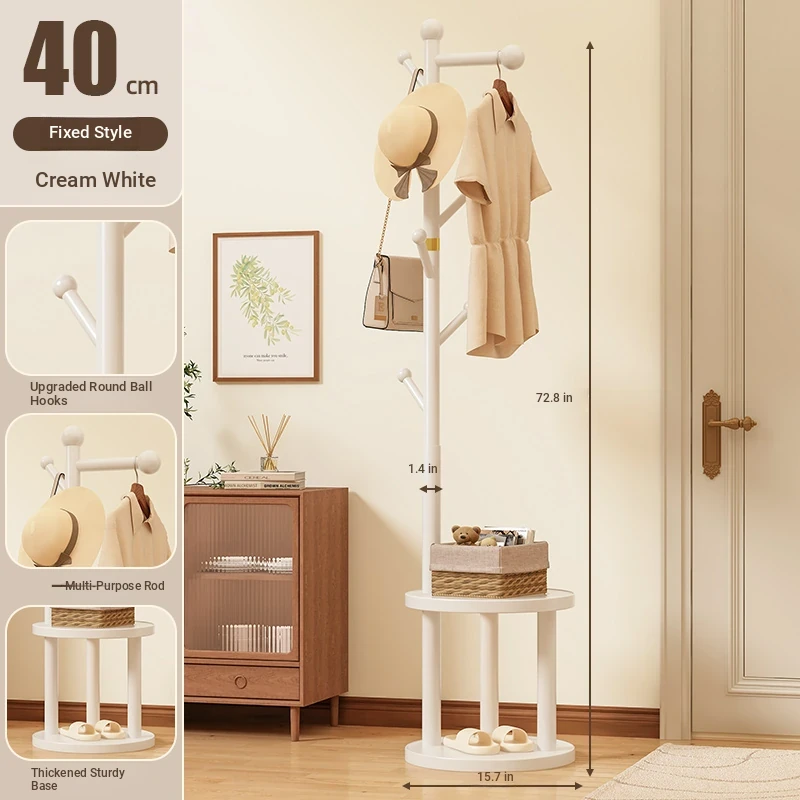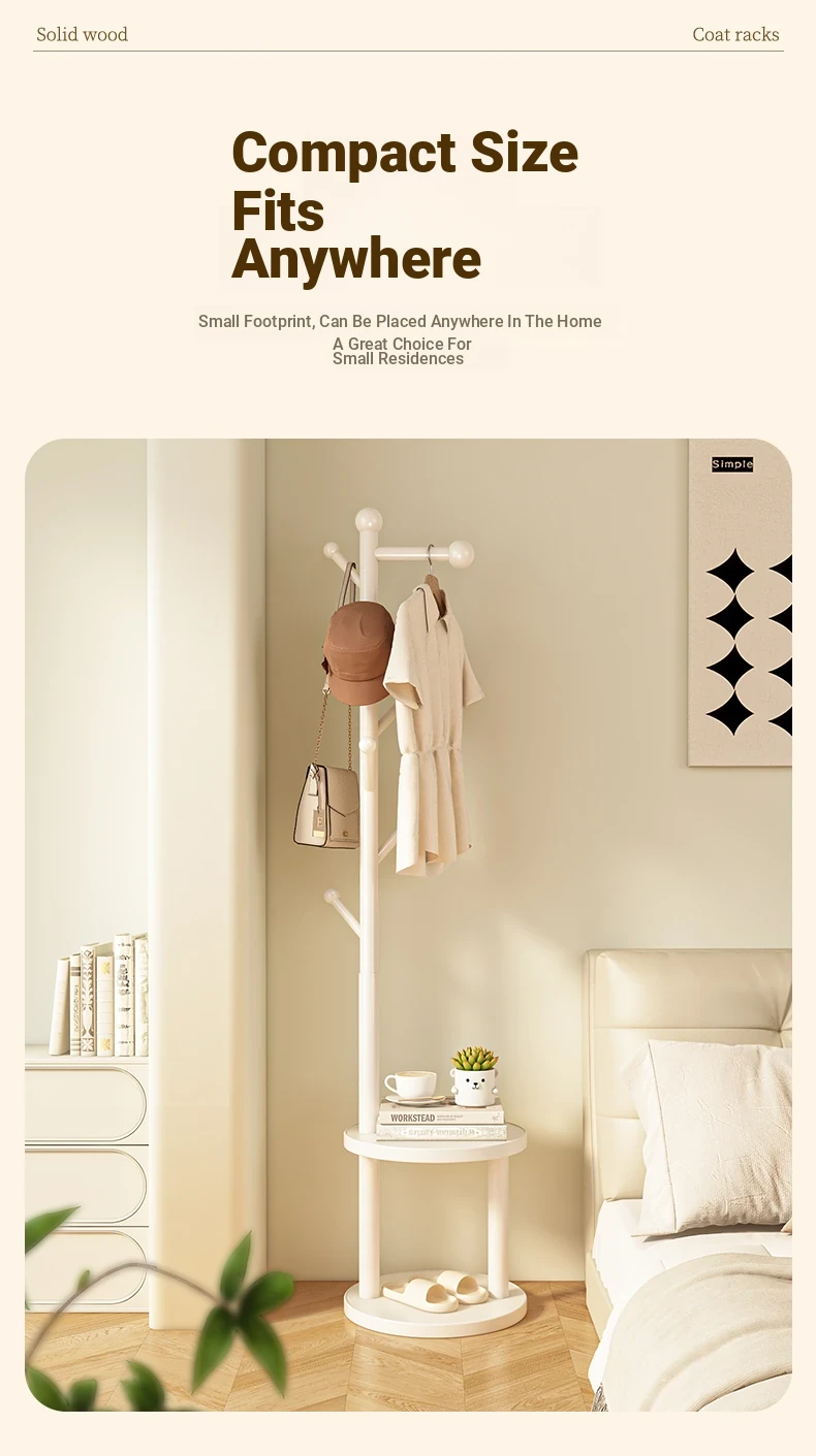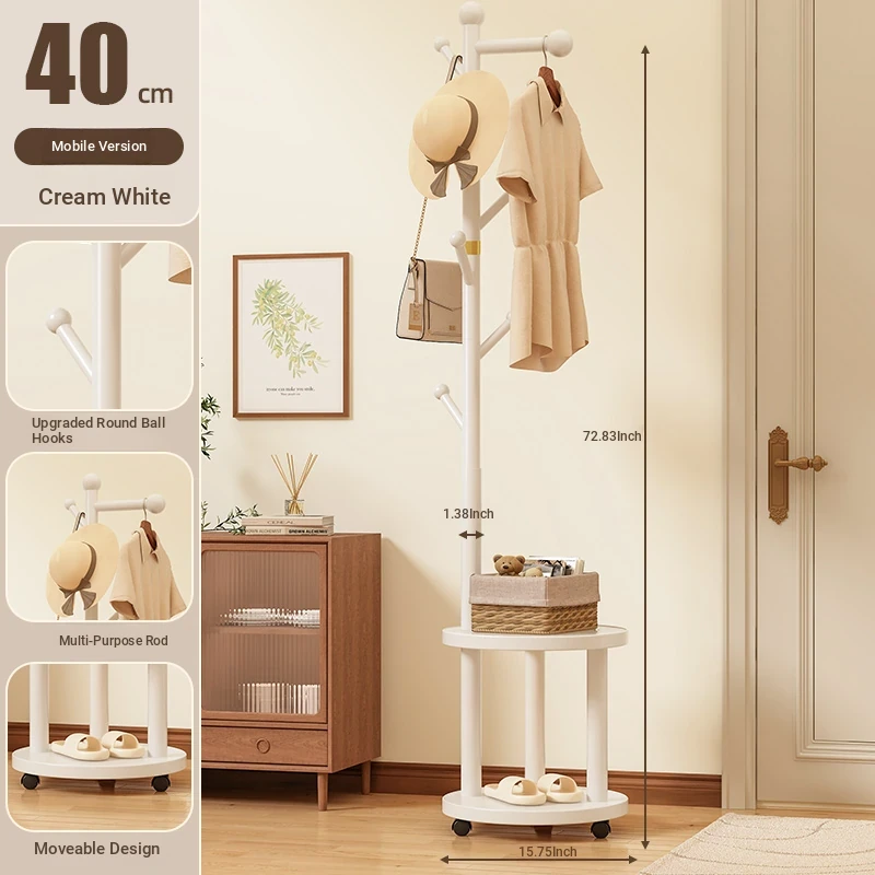 Solid Wood Freestanding Coat Rack for Kids' Room - Stylish Creamy Aesthetic Entryway Organizer for Coats and Bags, Perfect for Trendy Homes