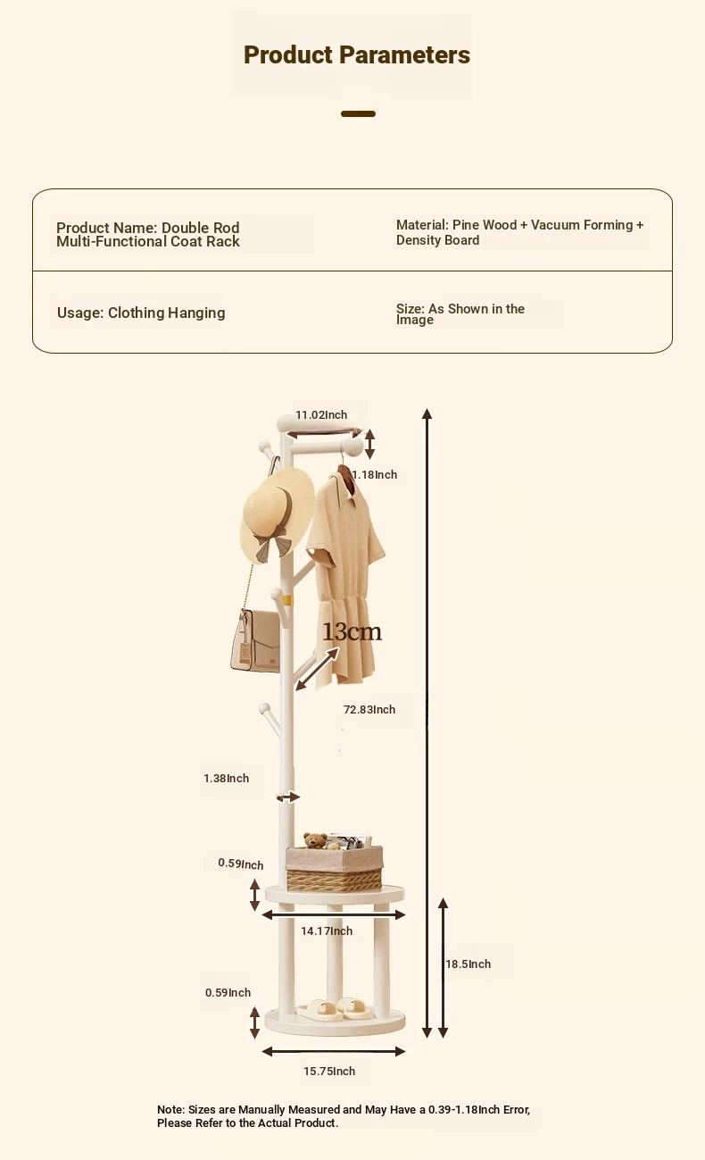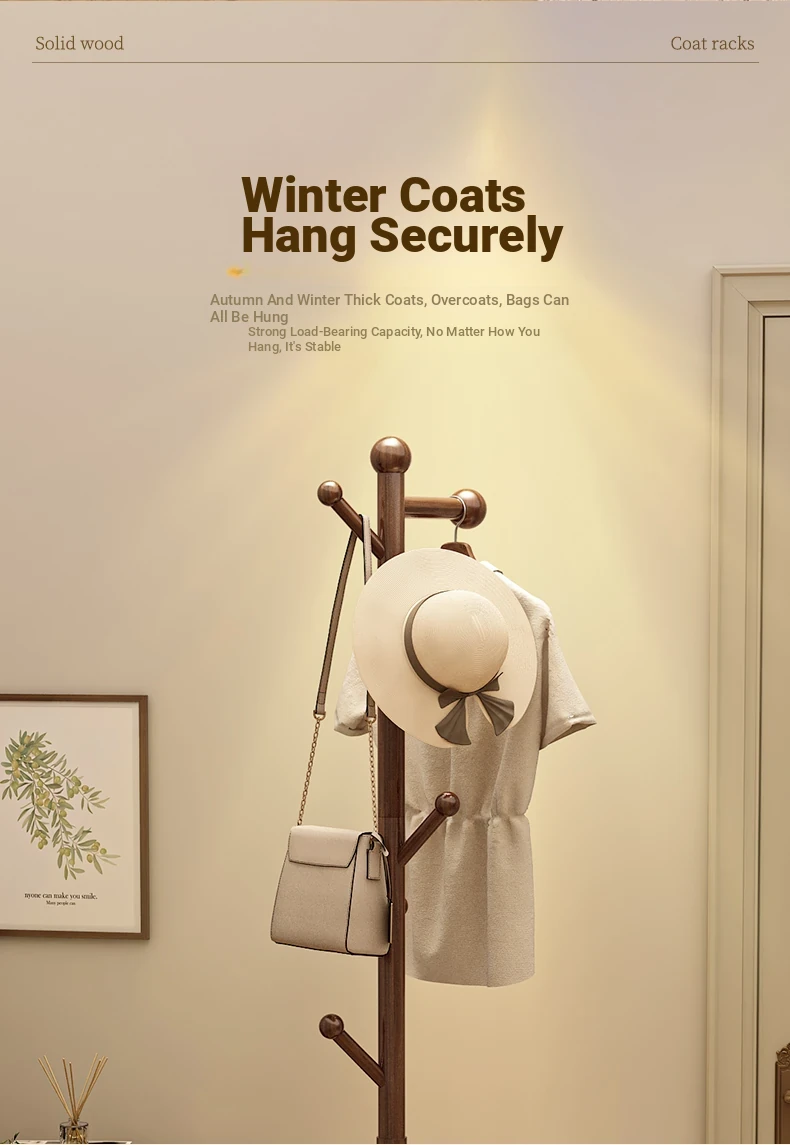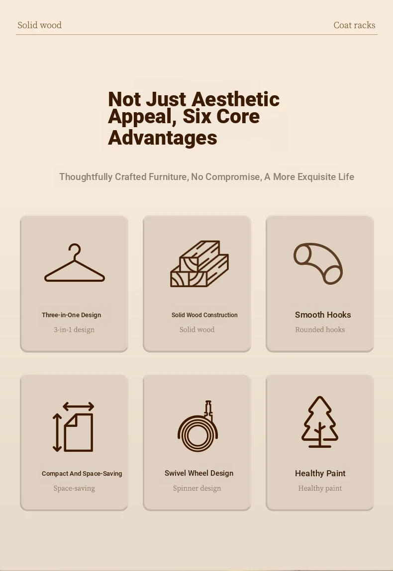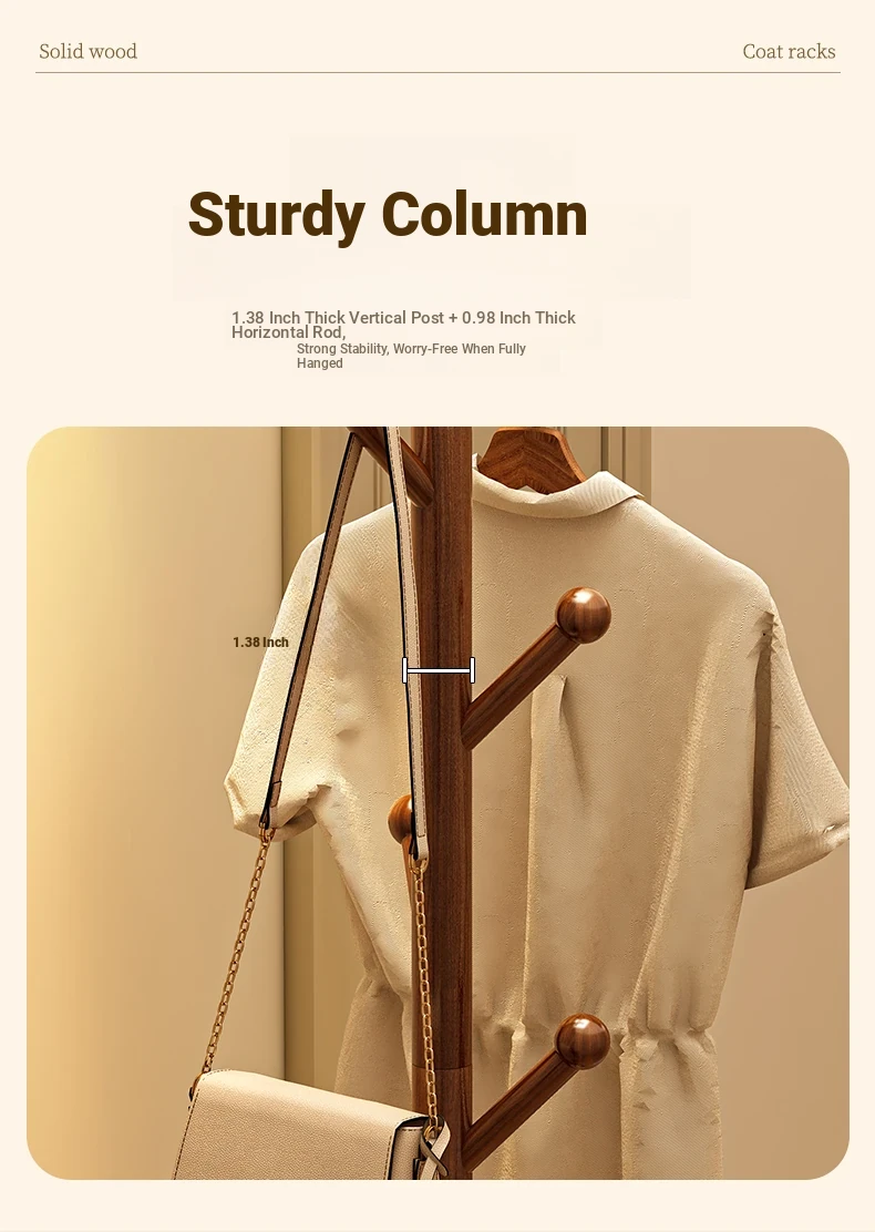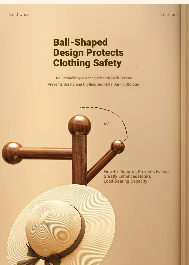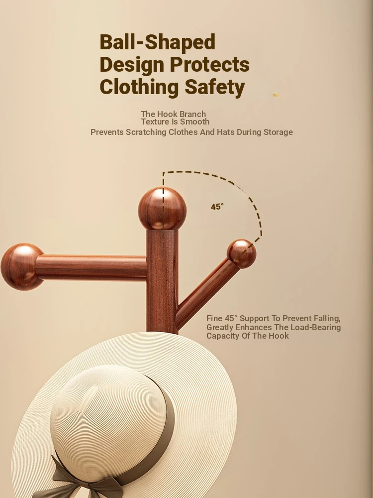 Solid Wood Freestanding Coat Rack for Kids' Room - Stylish Creamy Aesthetic Entryway Organizer for Coats and Bags, Perfect for Trendy Homes