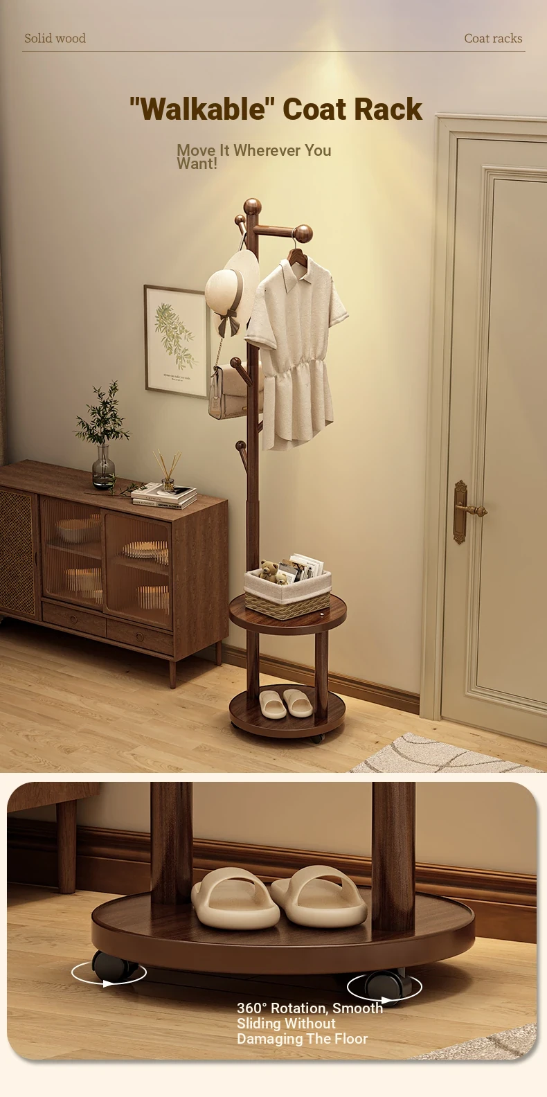 Walnut color [mute Rotate + double-layer storage] stable large chassis