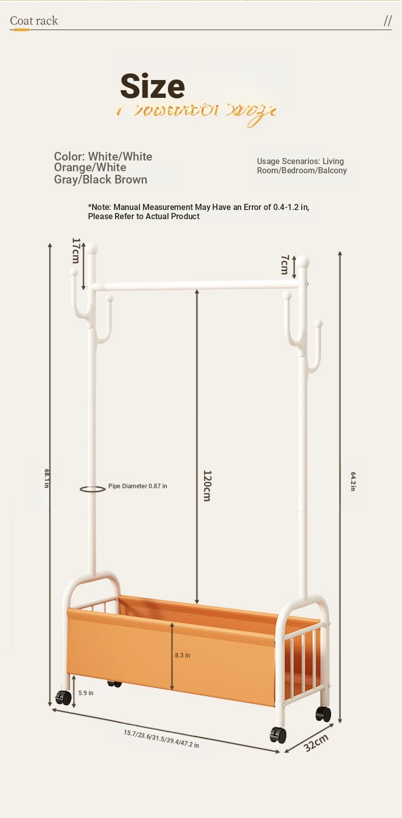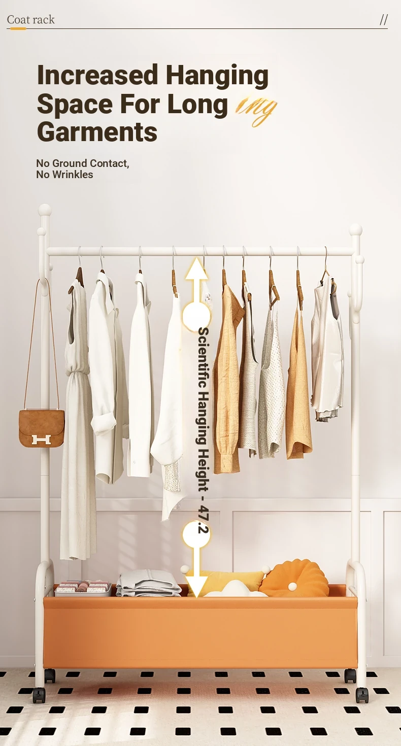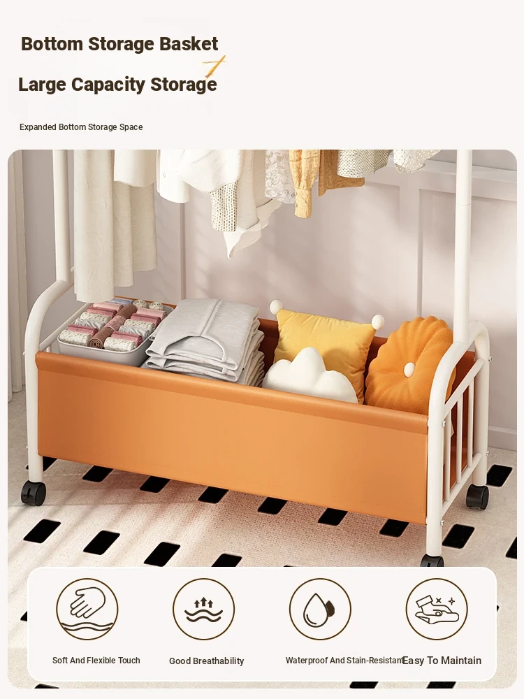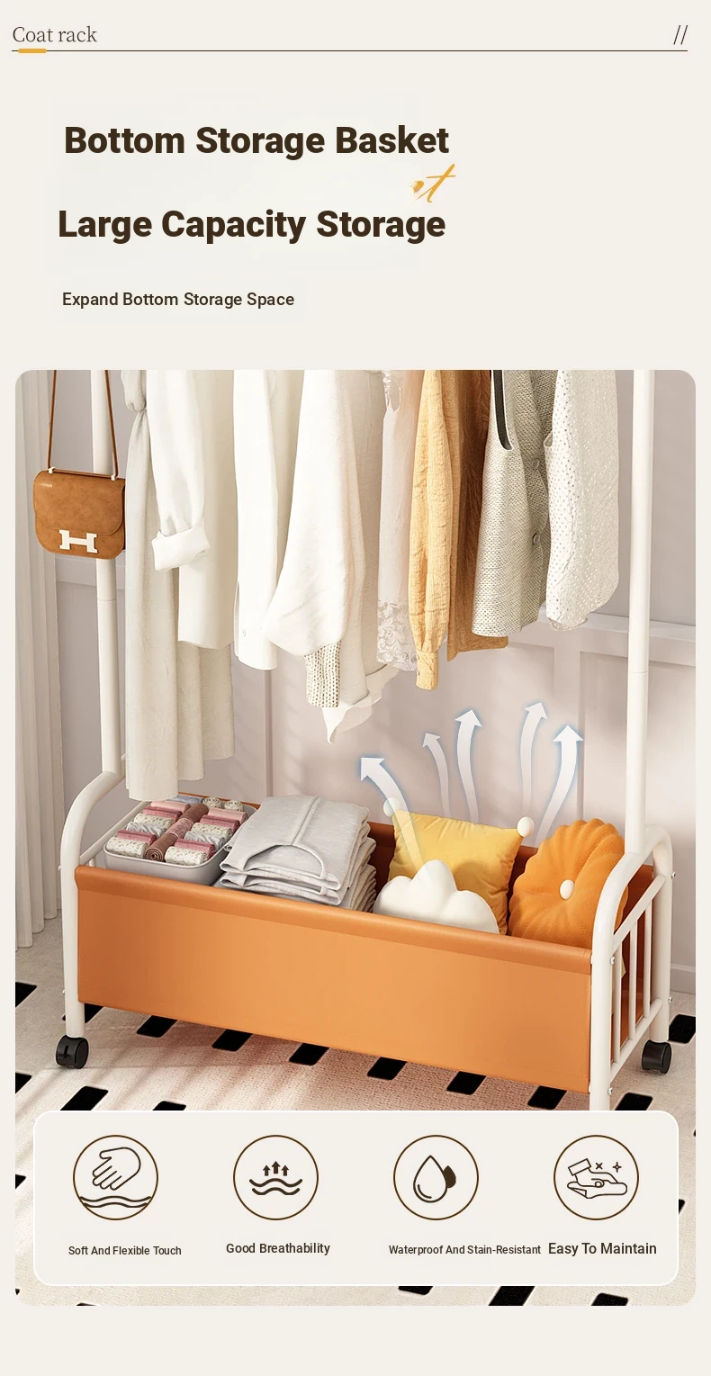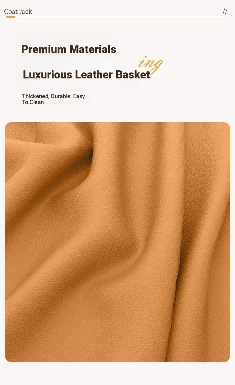 [White orange 47.24in] bold pipe diameter⭐️ 4 Hook⭐️ Leather storage basket