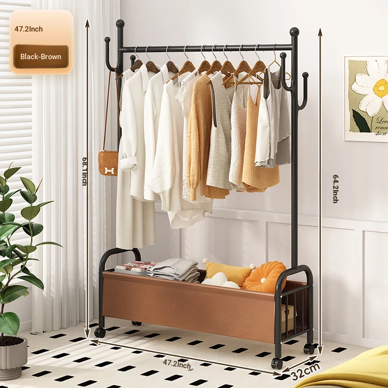 [Black Brown 47.24in] thick pipe diameter⭐️ 4 Hook⭐️ Leather storage basket