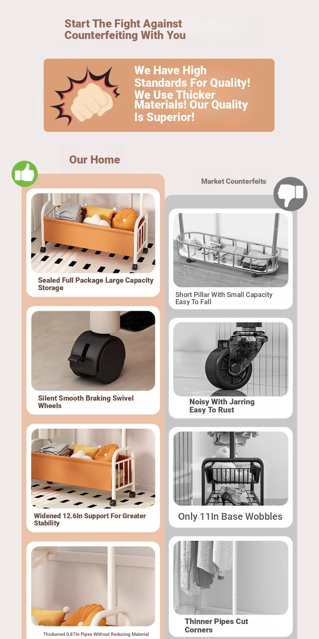 [White Orange 39.37in] Bold Pipe Diameter⭐️ 4 Hook⭐️ Leather storage basket