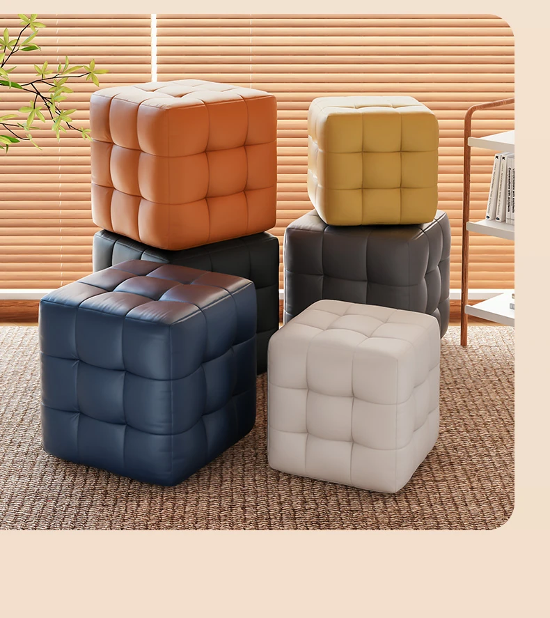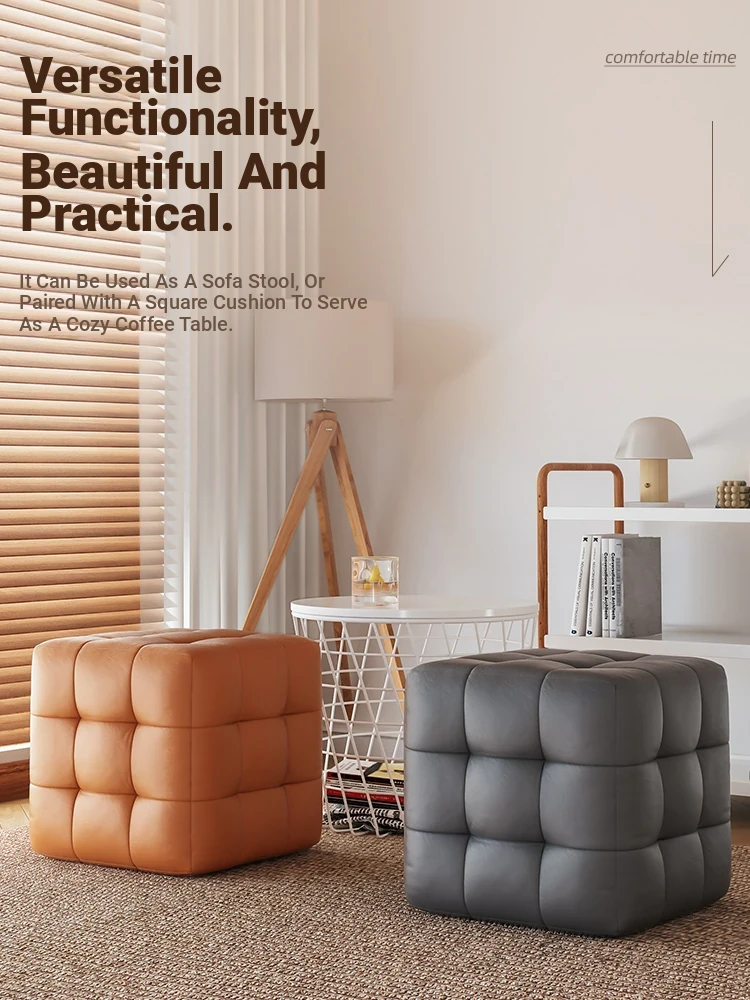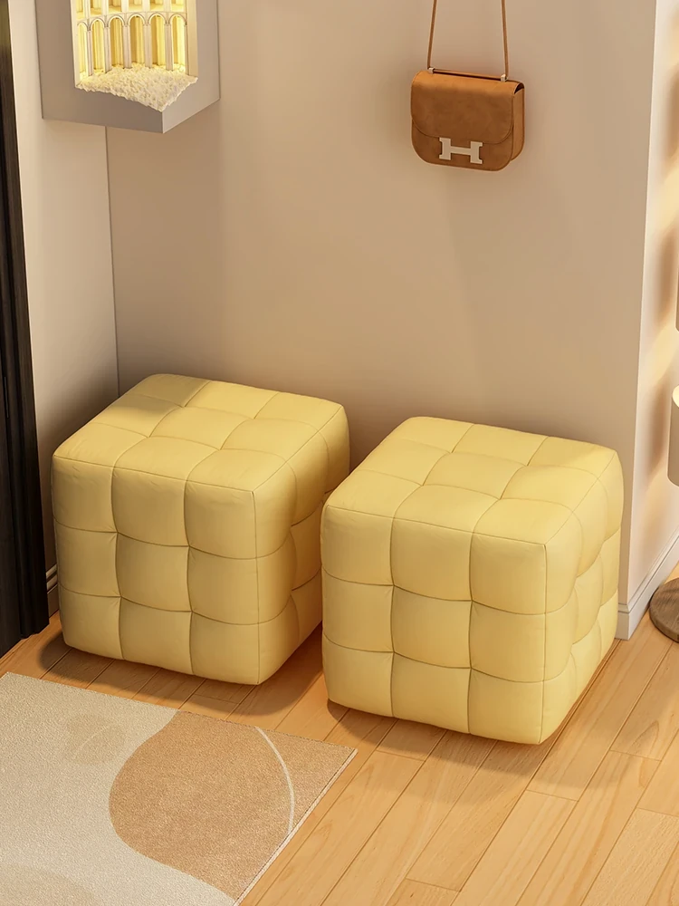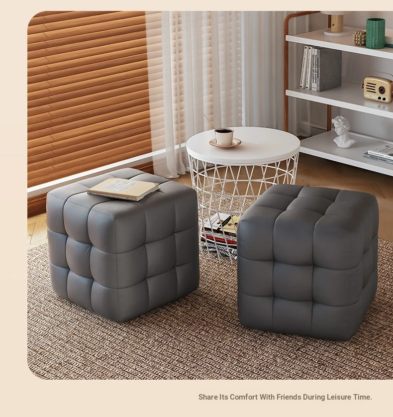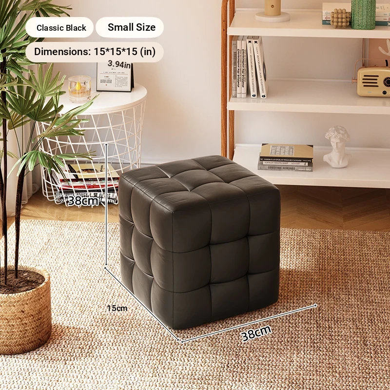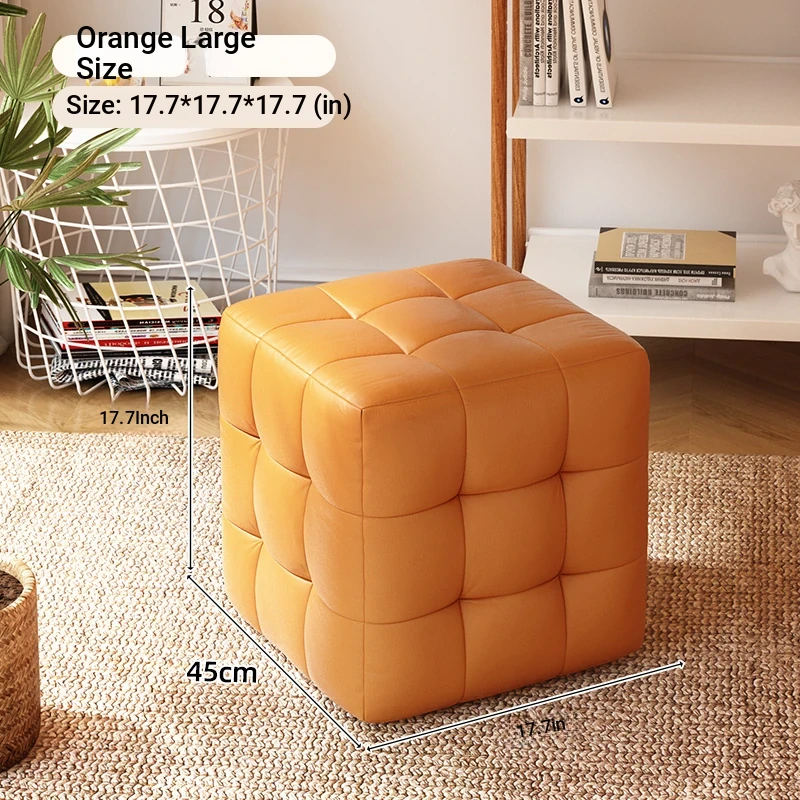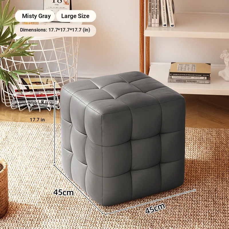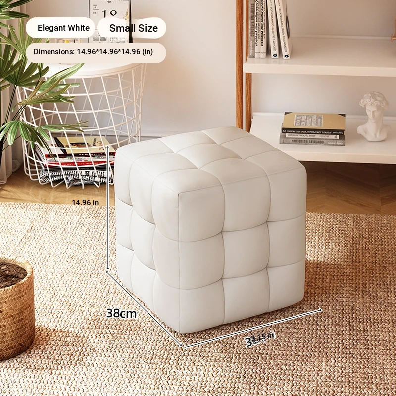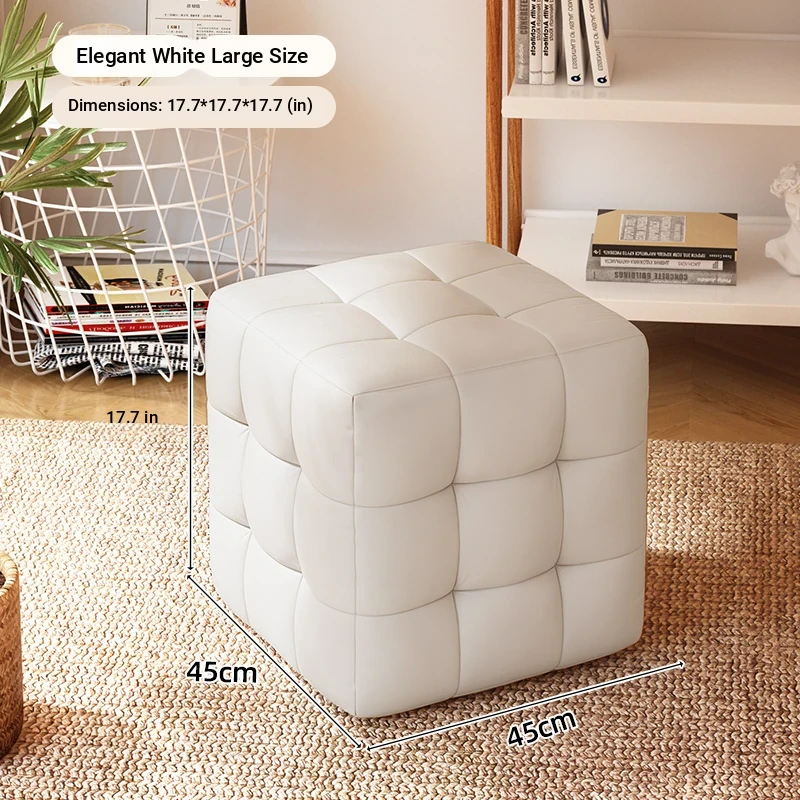 Stylish Entryway Stool - Versatile Home Shoe Changing Bench, Soft Faux Leather Square Ottoman, Perfect for Living Room or Bedroom Use