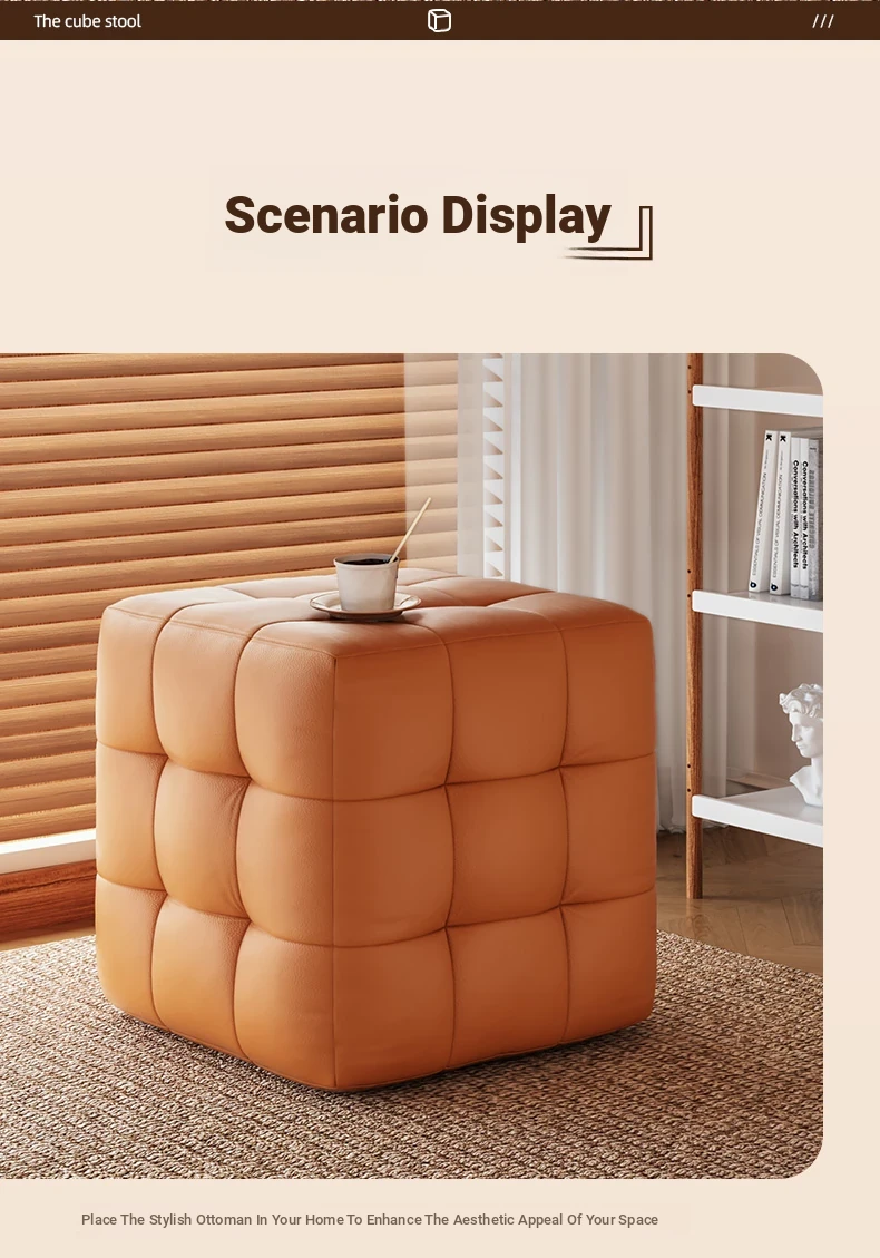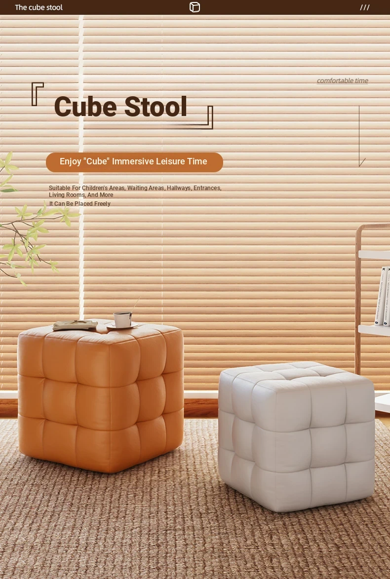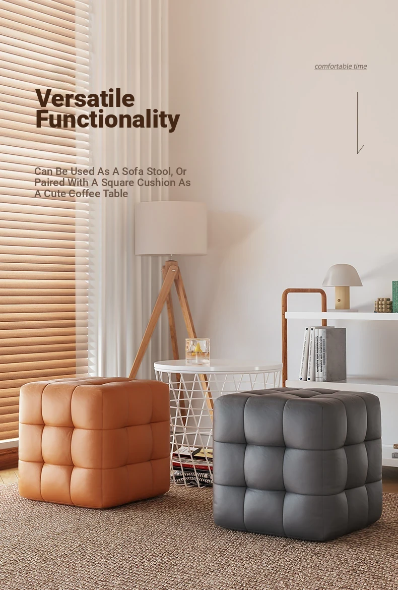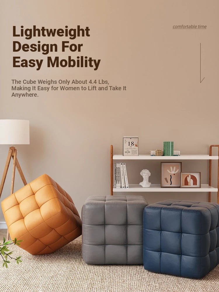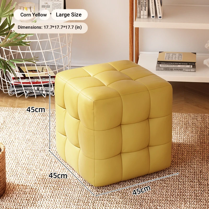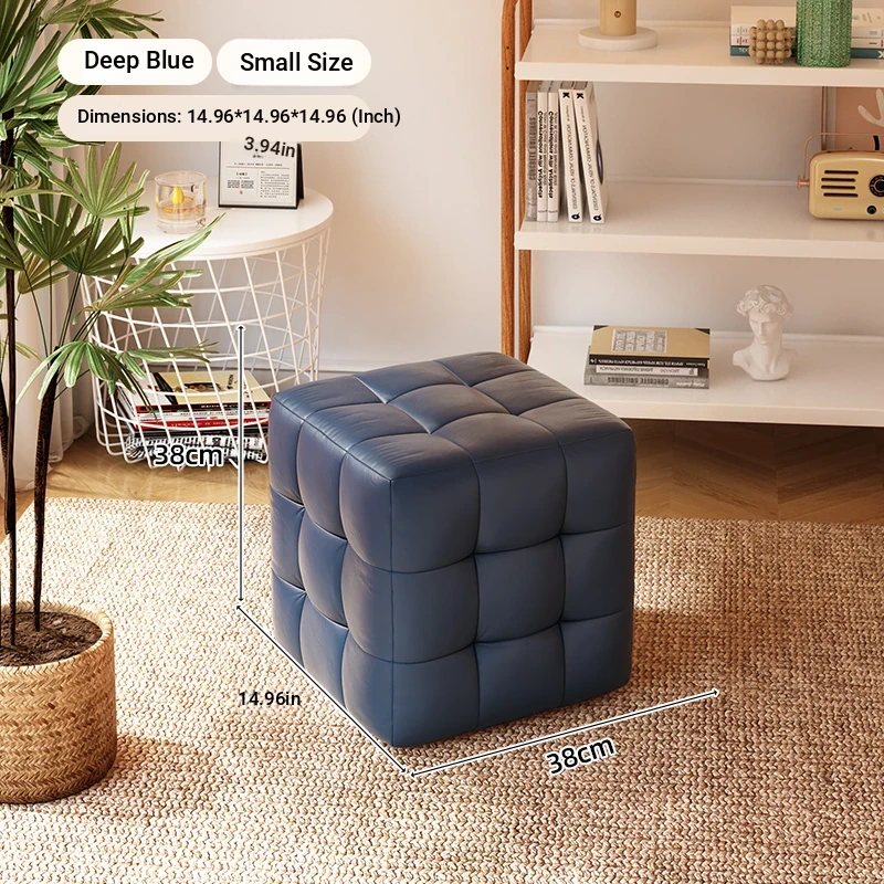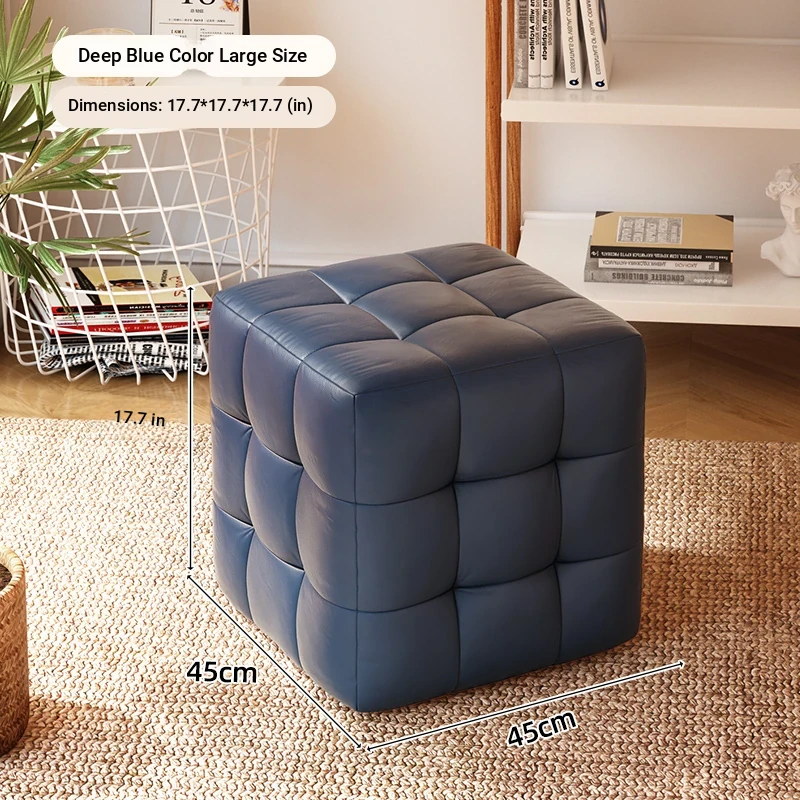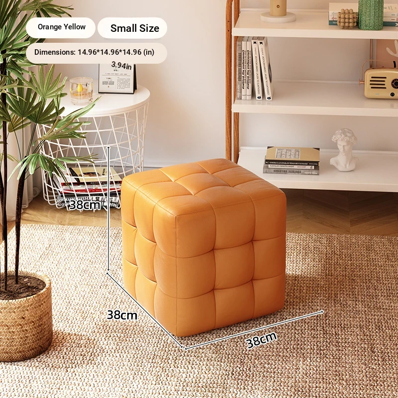 Stylish Entryway Stool - Versatile Home Shoe Changing Bench, Soft Faux Leather Square Ottoman, Perfect for Living Room or Bedroom Use