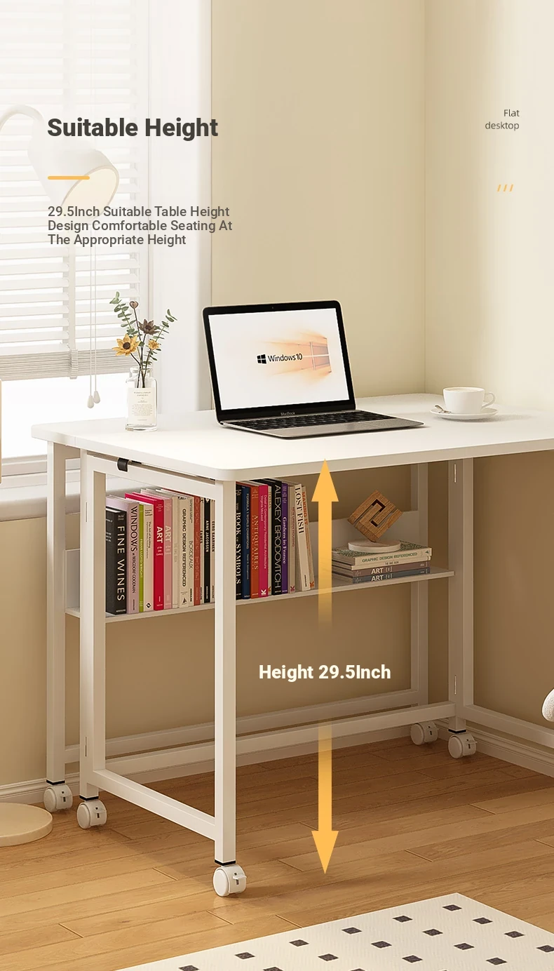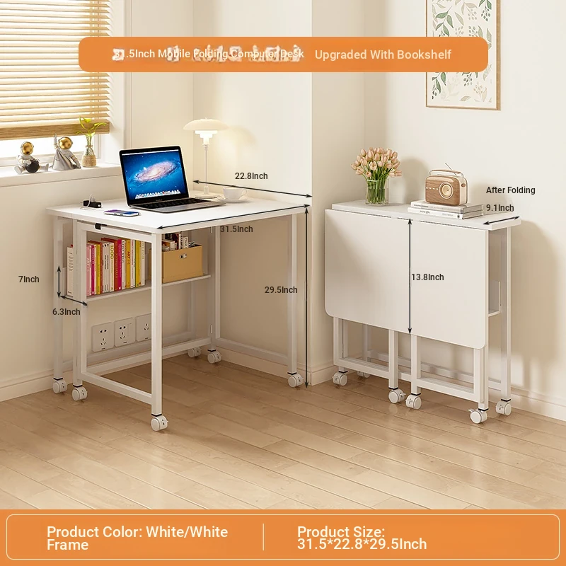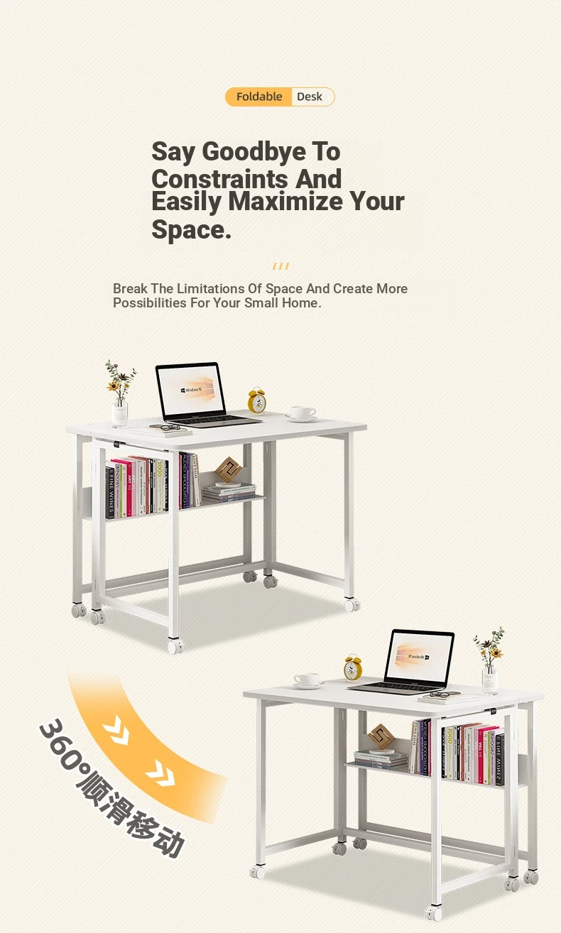 [Upgrade bold Export quality] Foldable movable [single table + bookshelf] 80*58