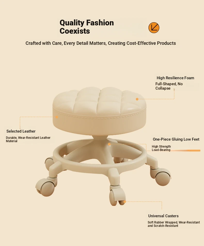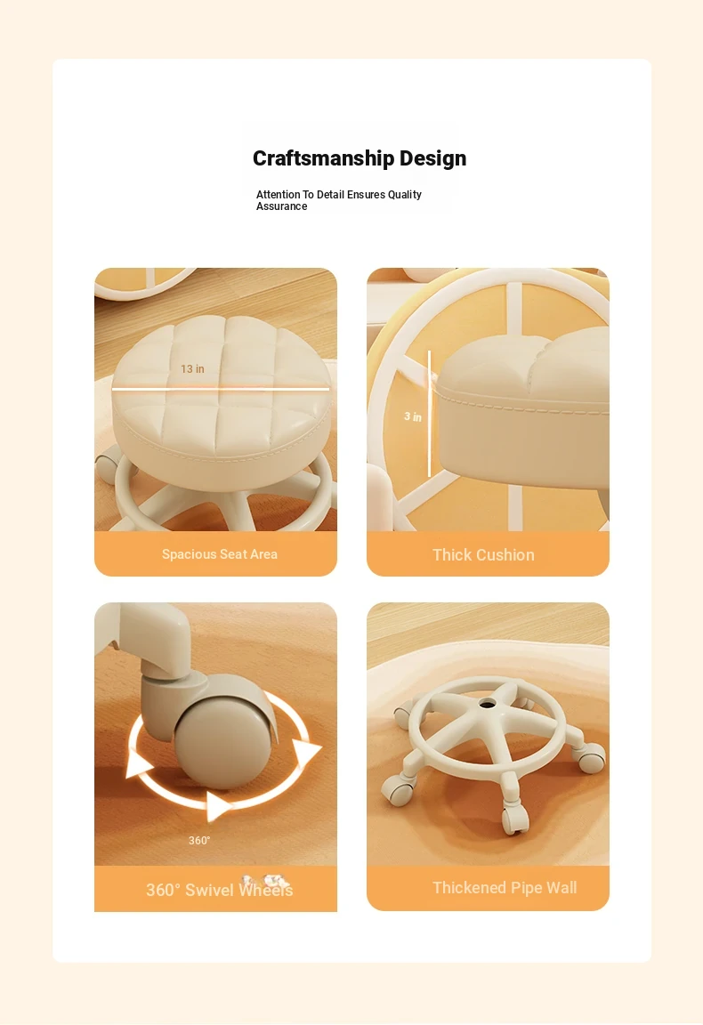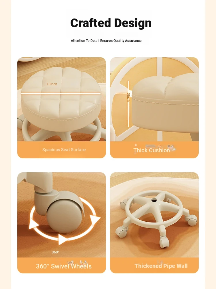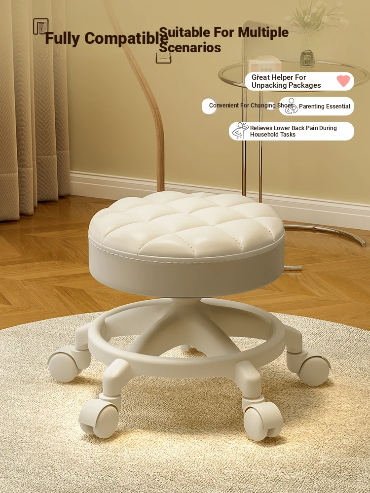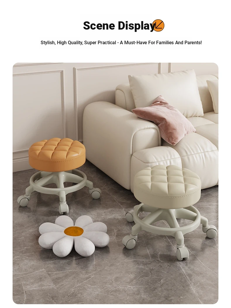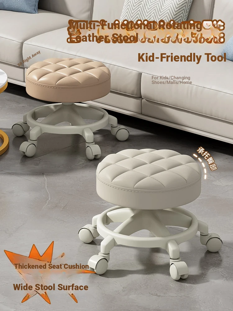 Versatile Home Stool with Swivel Wheels - Perfect for Living Room, Tea Table, and Shoe Change at the Door! Ideal for Parents with Kids - Easy to Move Round Stool!