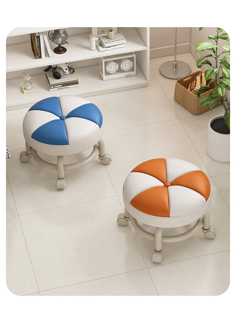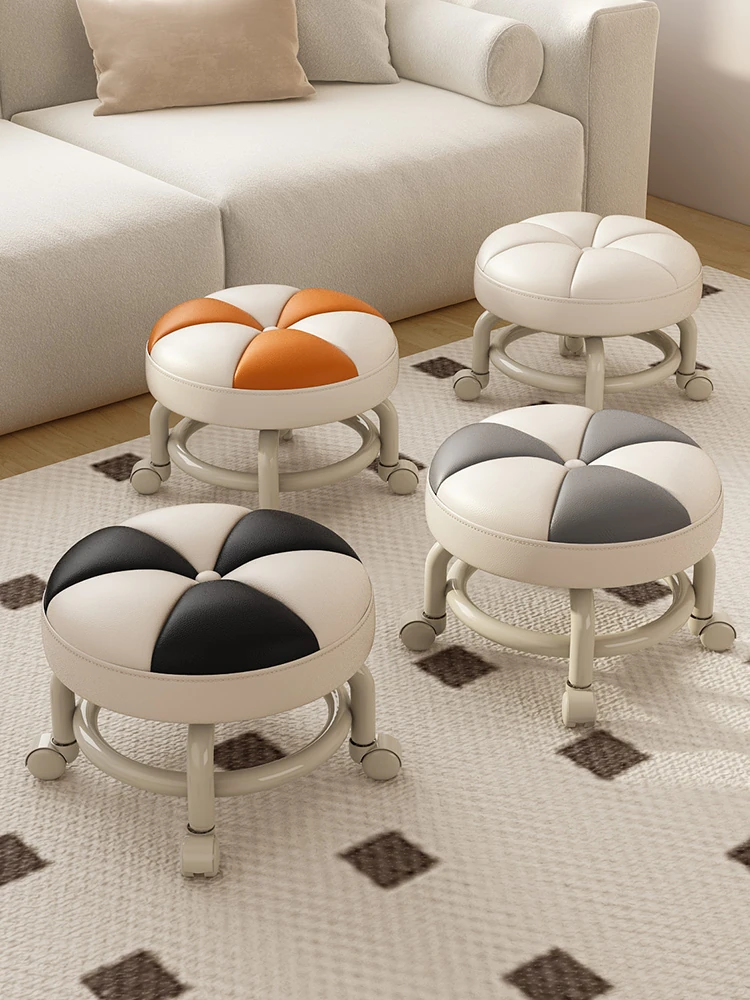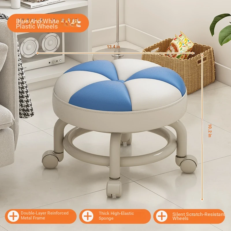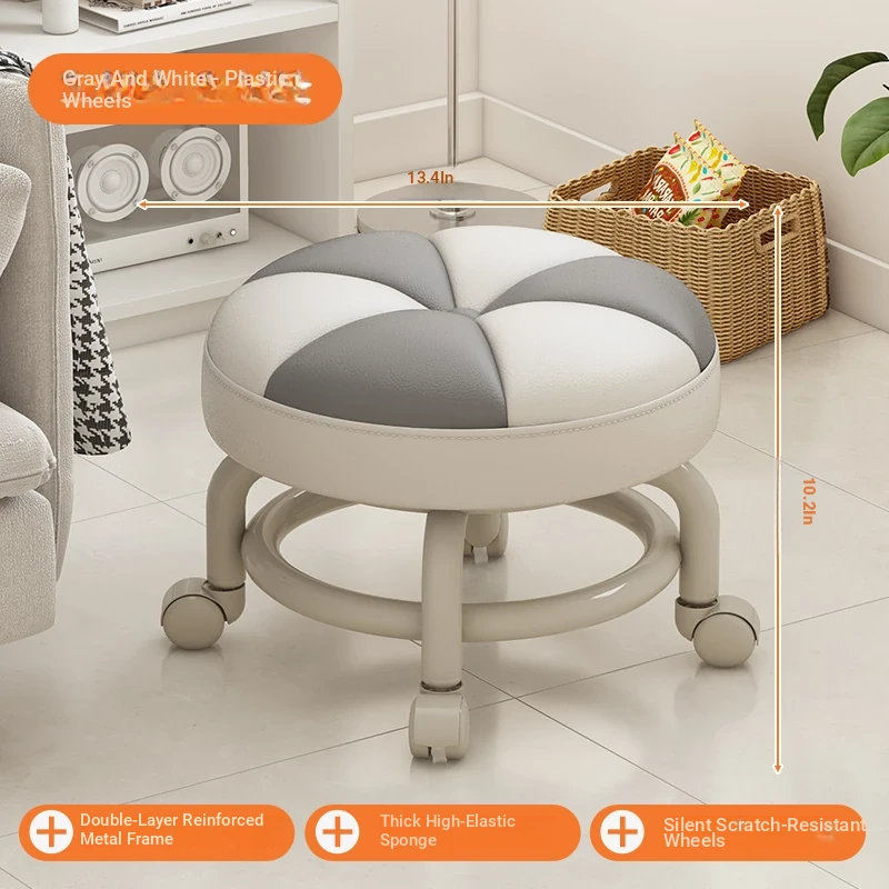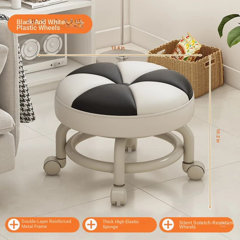Versatile Rolling Stool - Compact Round Seat with Wheels for Home Use, Perfect for Living Room, Sofa, Kids, and Shoe Changing - Stylish and Functional Low Stool