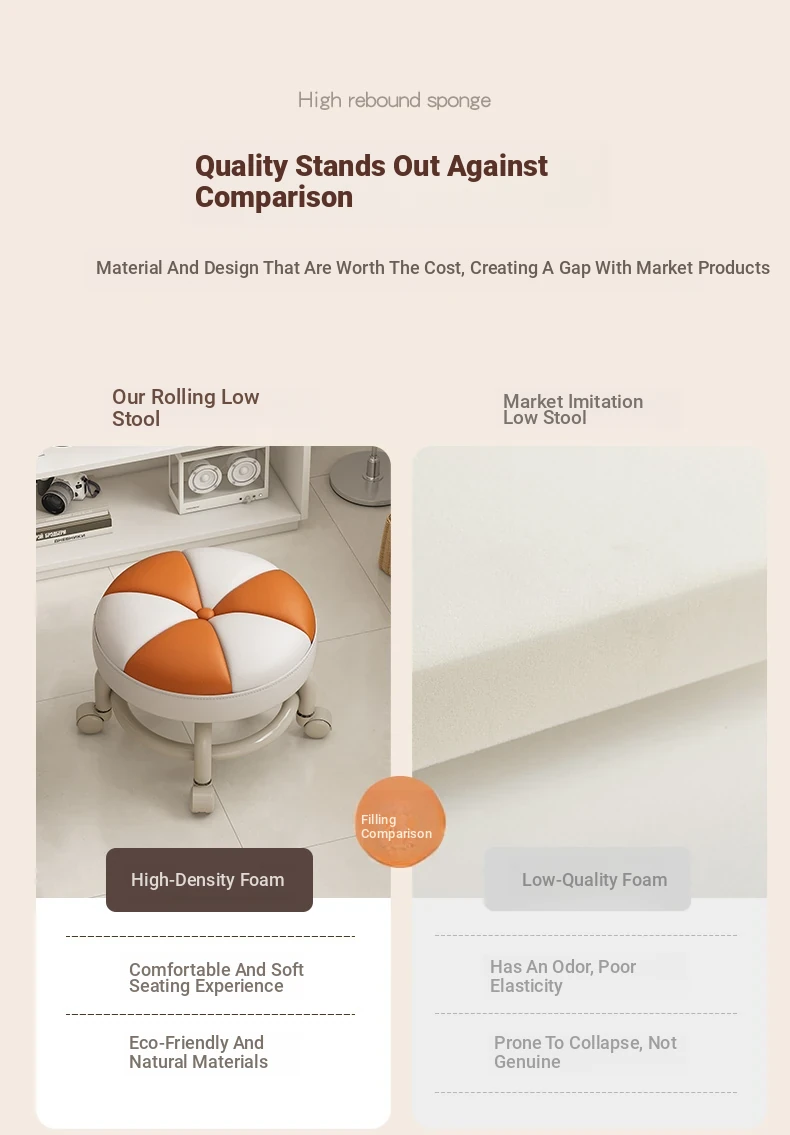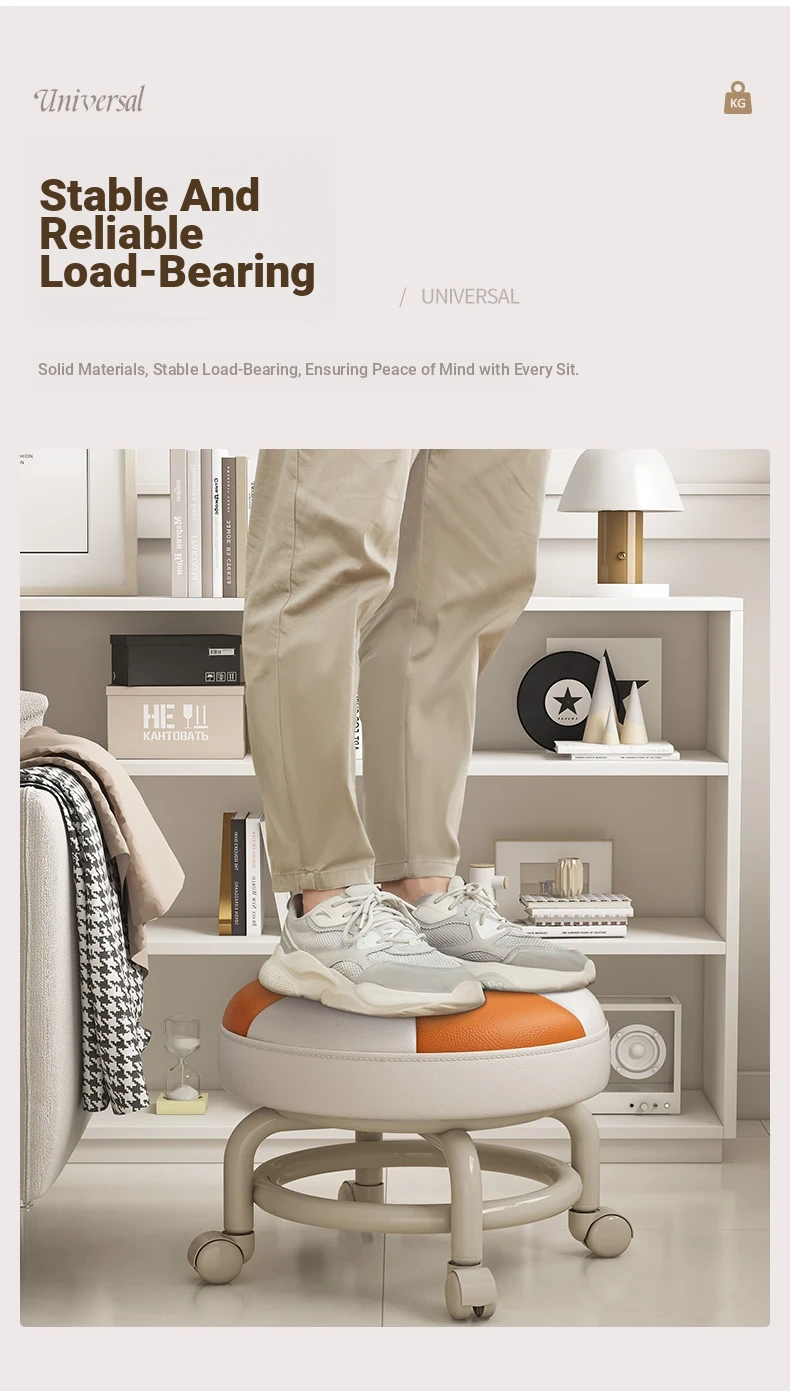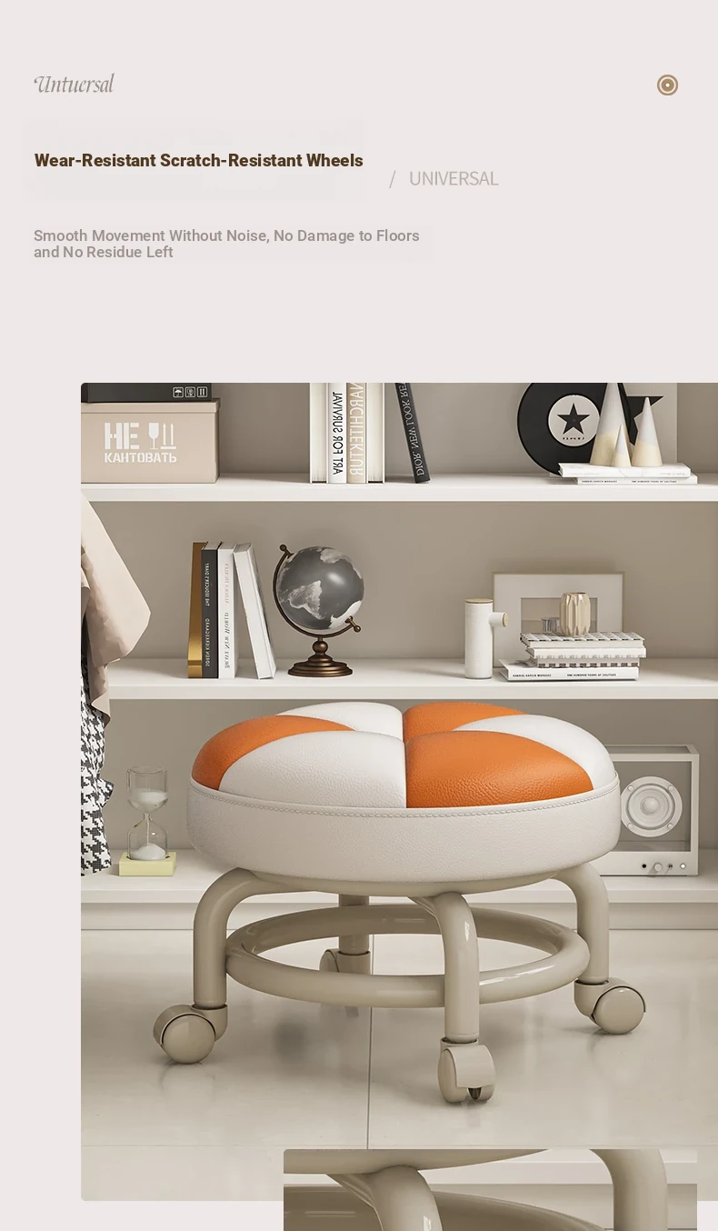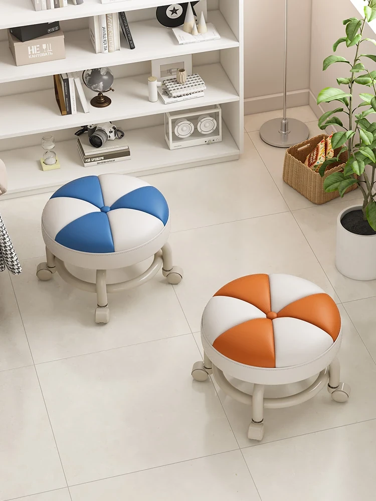 Versatile Rolling Stool - Compact Round Seat with Wheels for Home Use, Perfect for Living Room, Sofa, Kids, and Shoe Changing - Stylish and Functional Low Stool