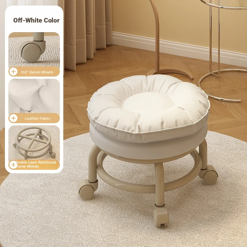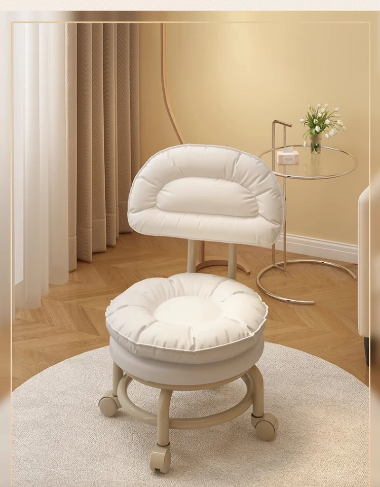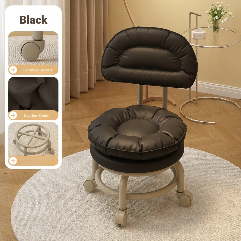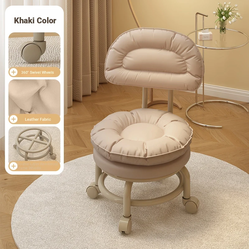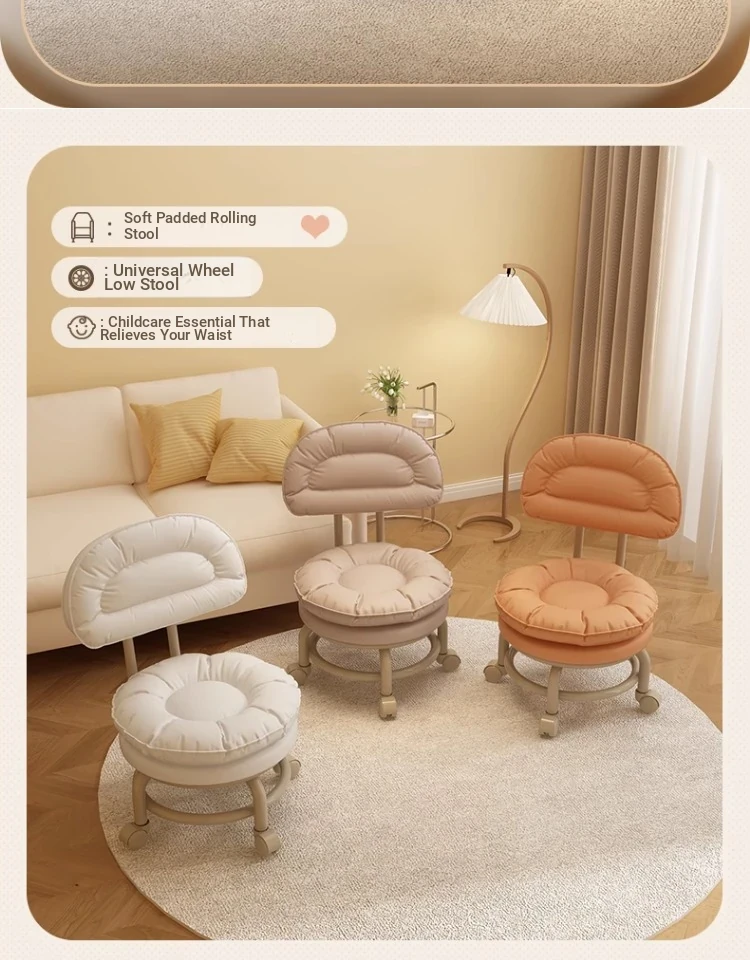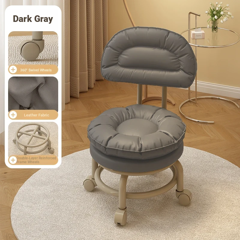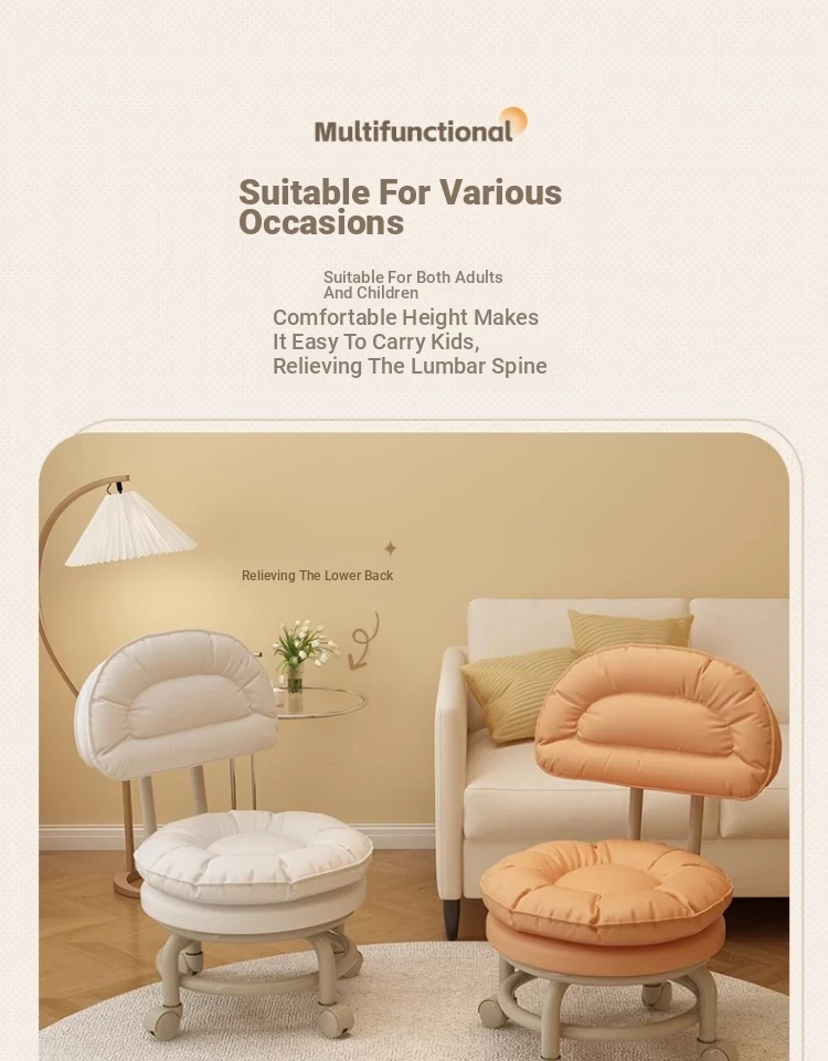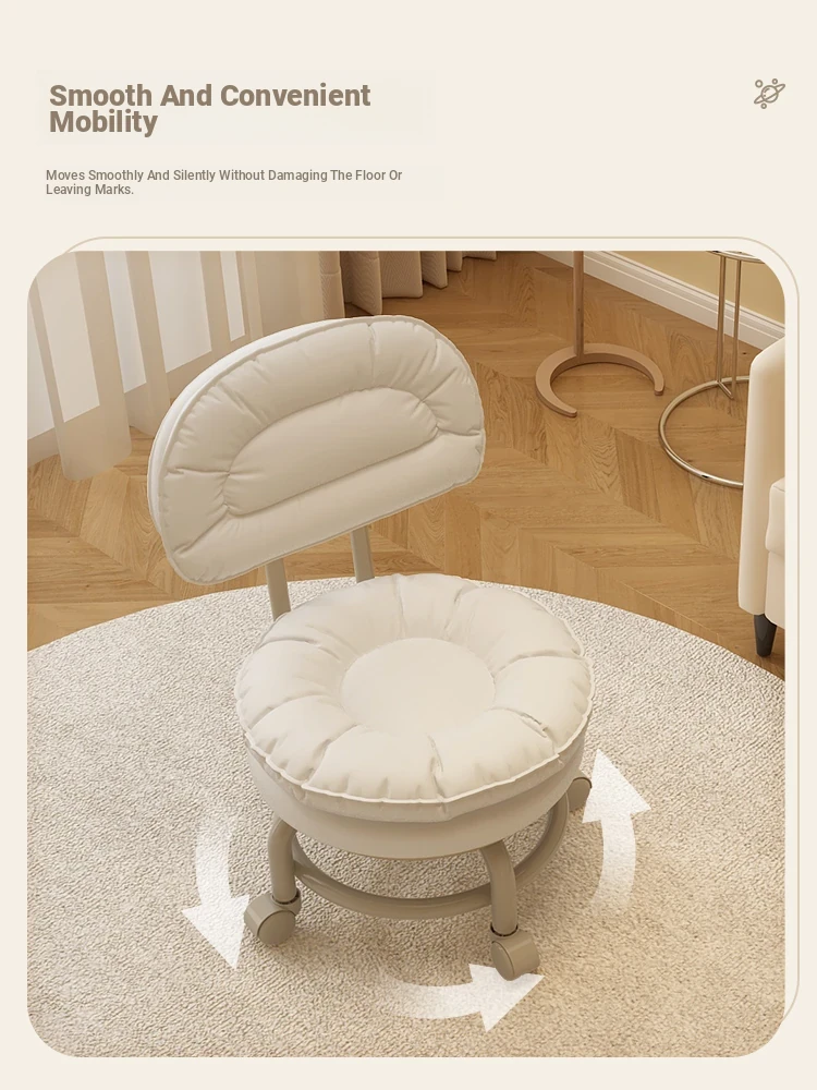 Versatile Rolling Stool with Backrest - Perfect for Kids and Adults! Ideal for Living Rooms, Entryways, and Shoe Changing. Compact and Stylish Round Design for Home Use.