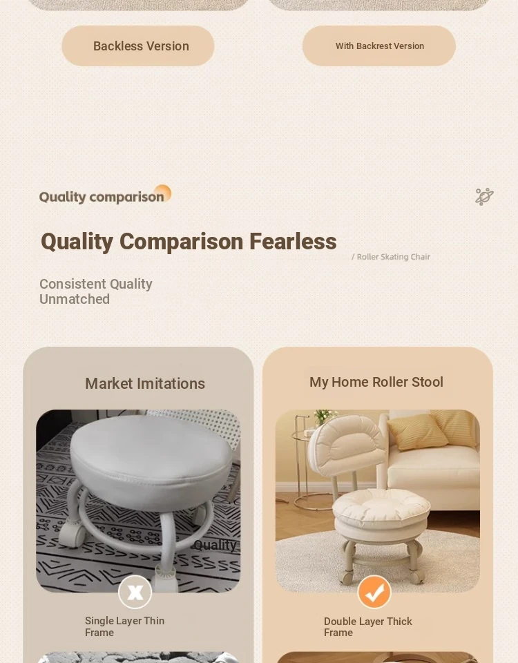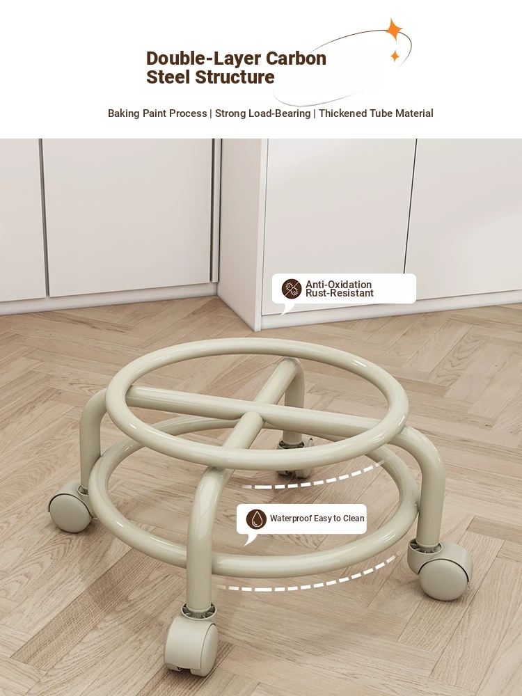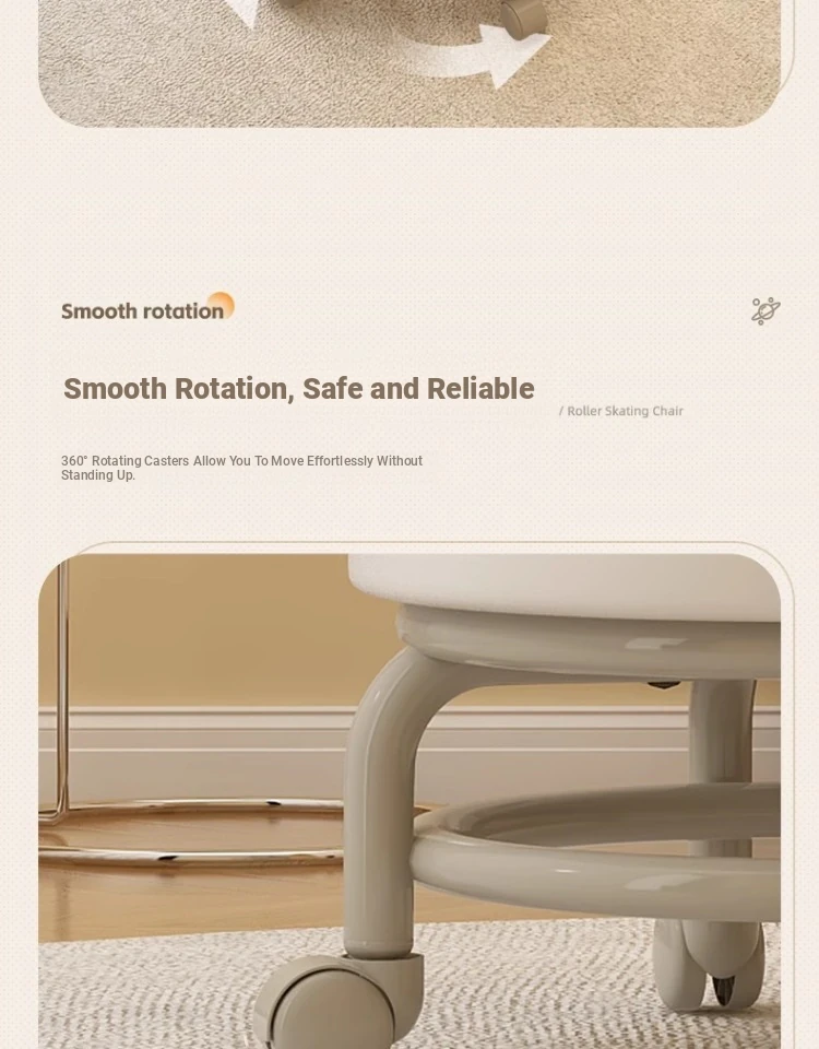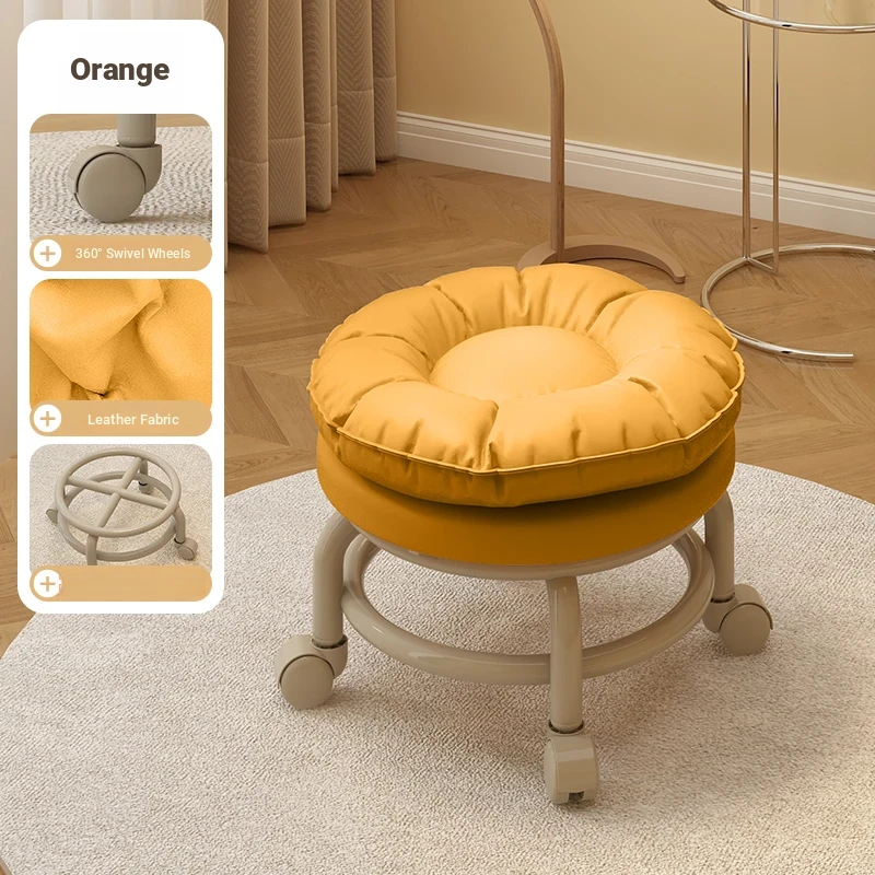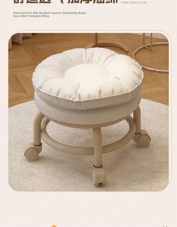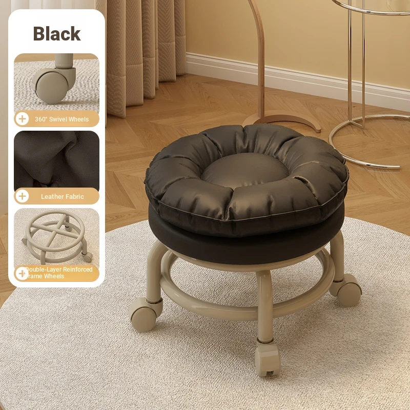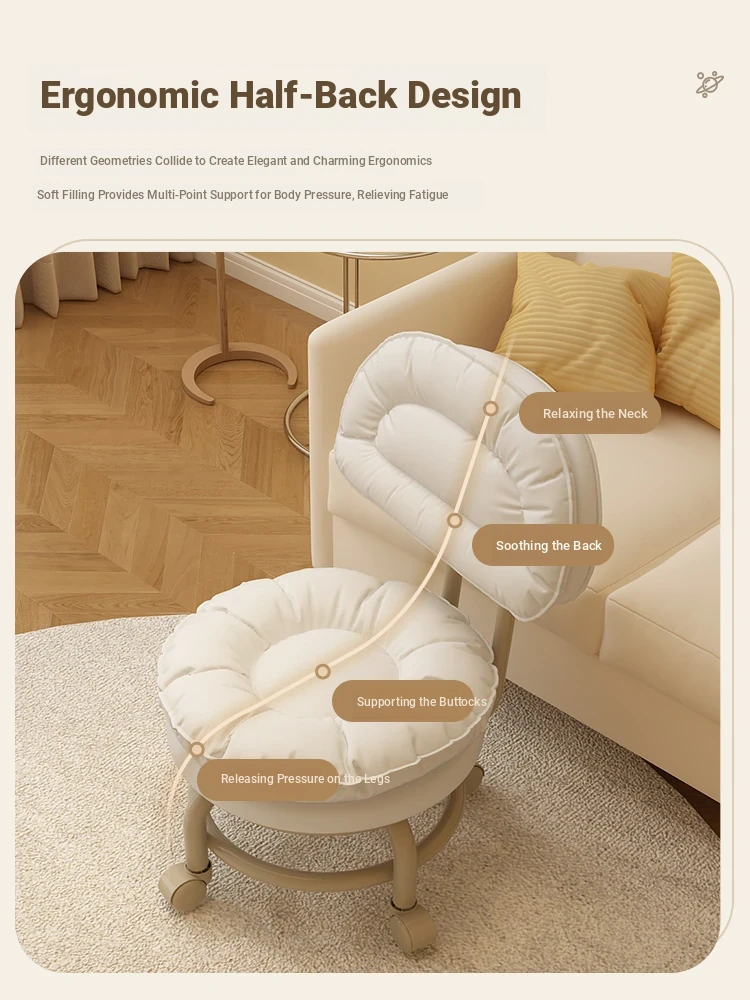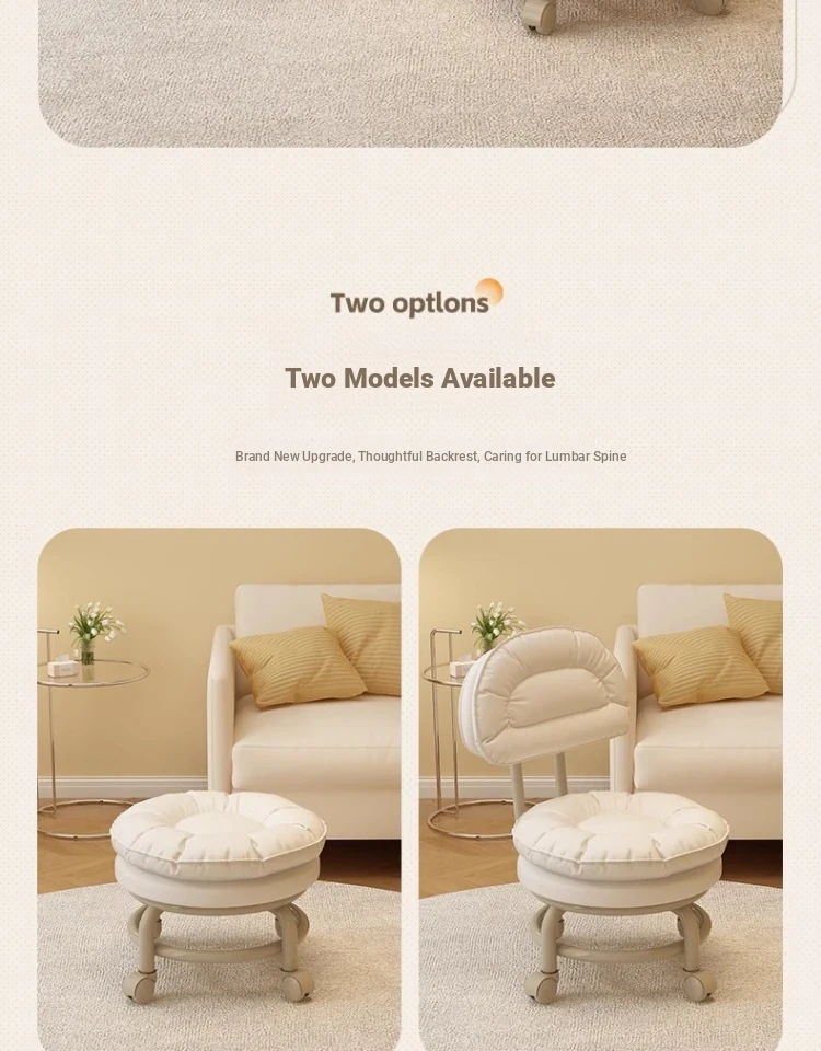 Versatile Rolling Stool with Backrest - Perfect for Kids and Adults! Ideal for Living Rooms, Entryways, and Shoe Changing. Compact and Stylish Round Design for Home Use.
