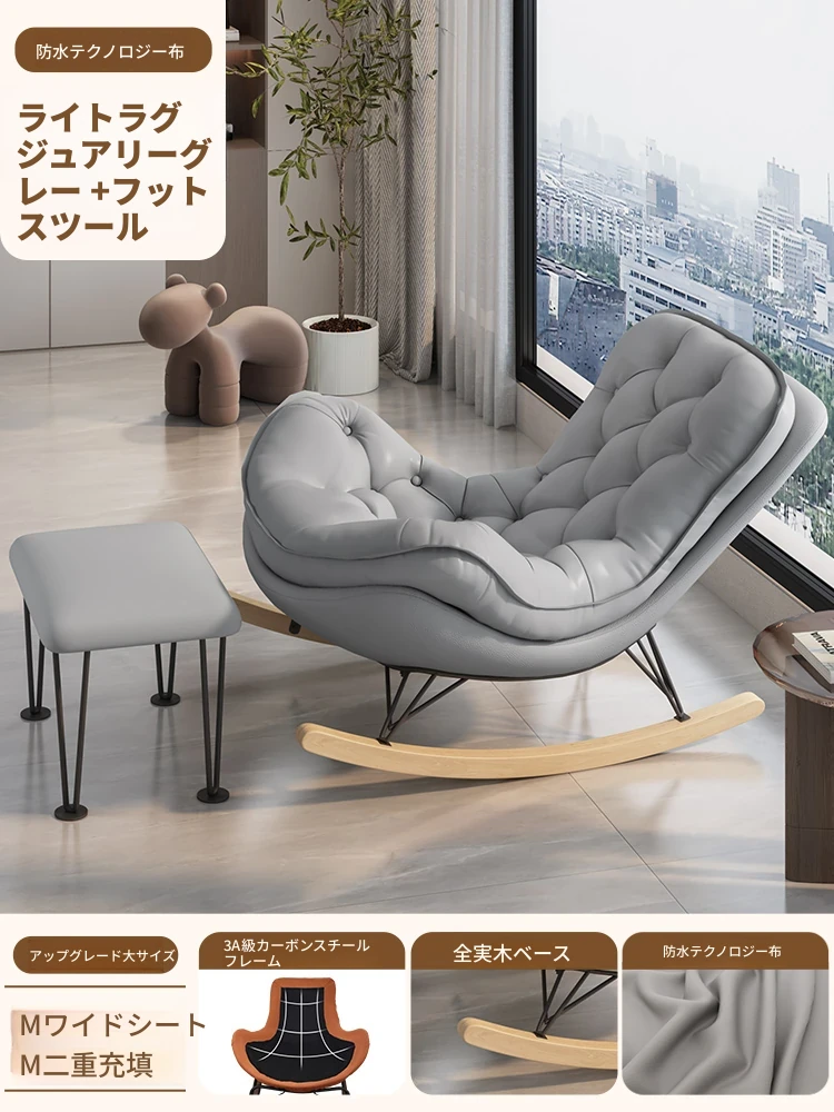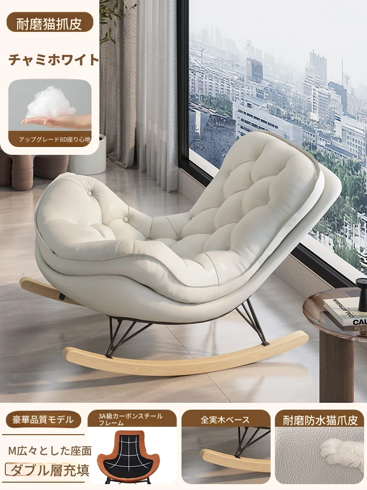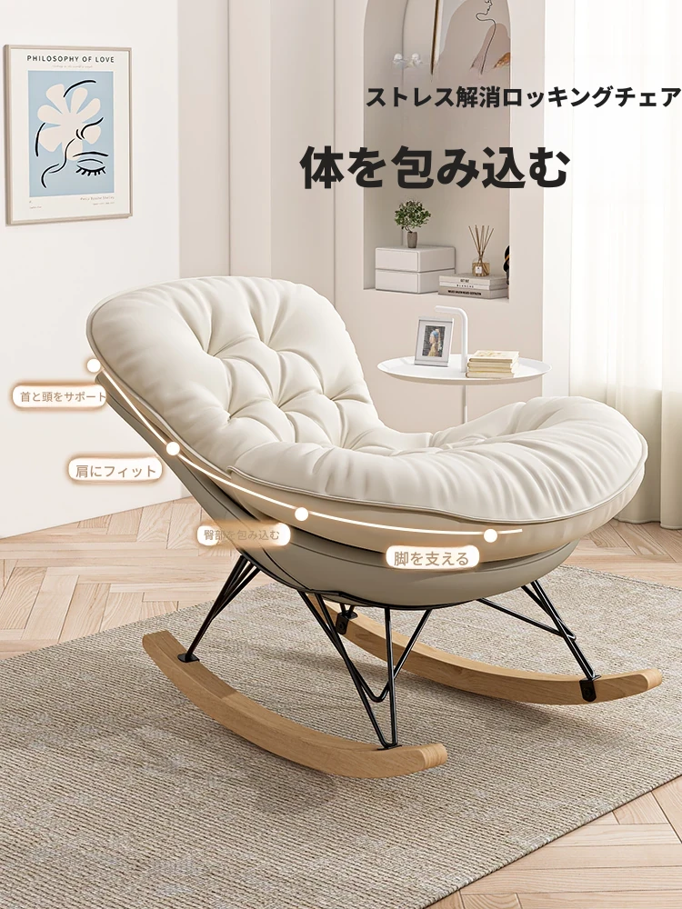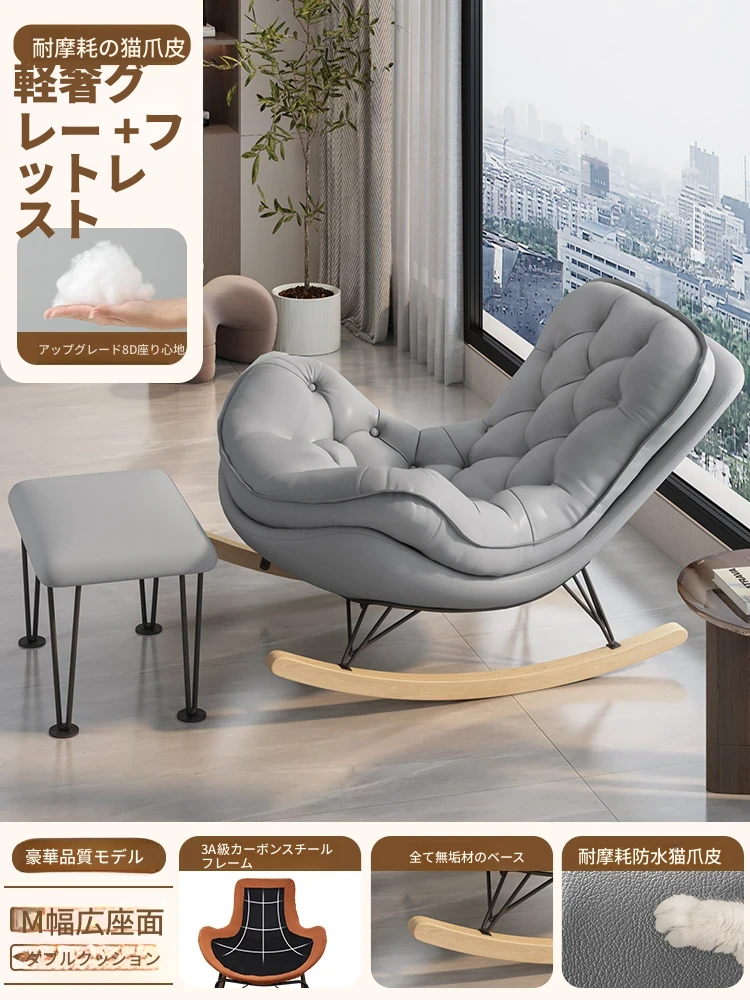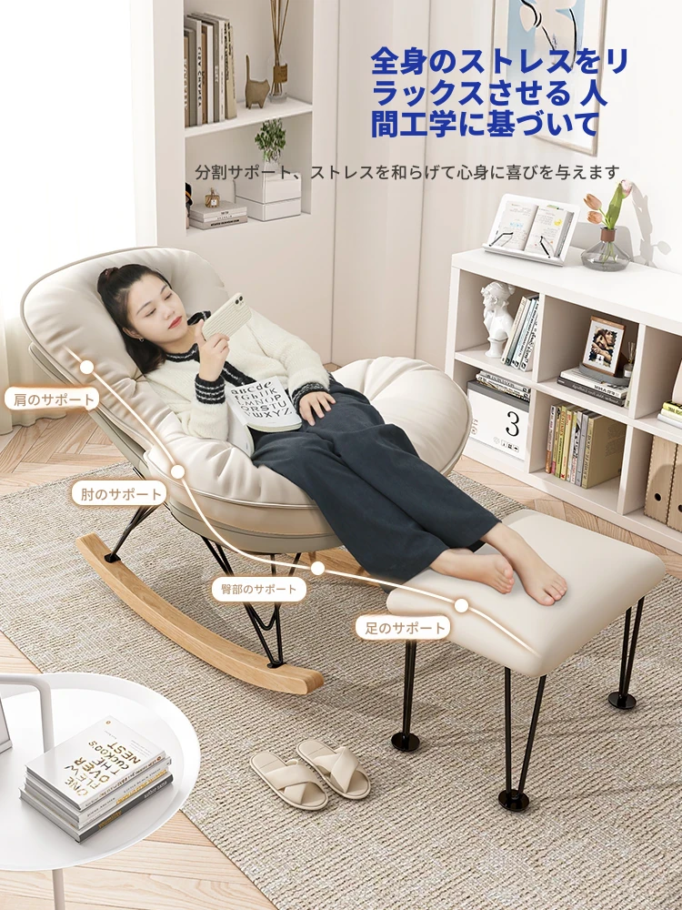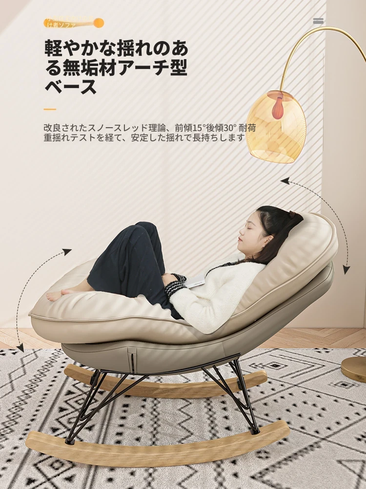 2024年新款!一人用ロッキングチェア、リラックスできるソファ。大人も寝られる快適なデザイン。バルコニーやリビングに最適な、怠け者のためのリラックスチェア!