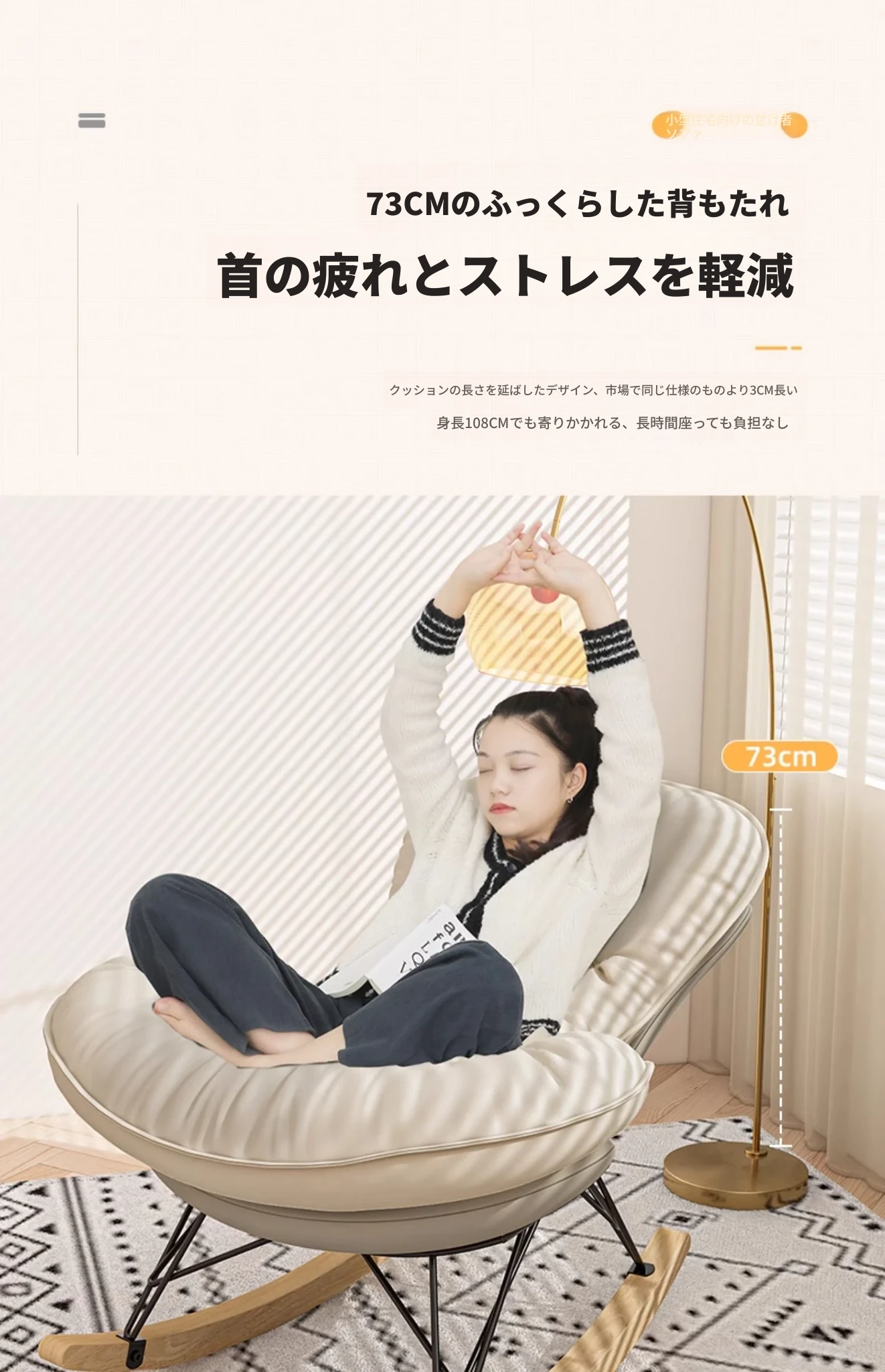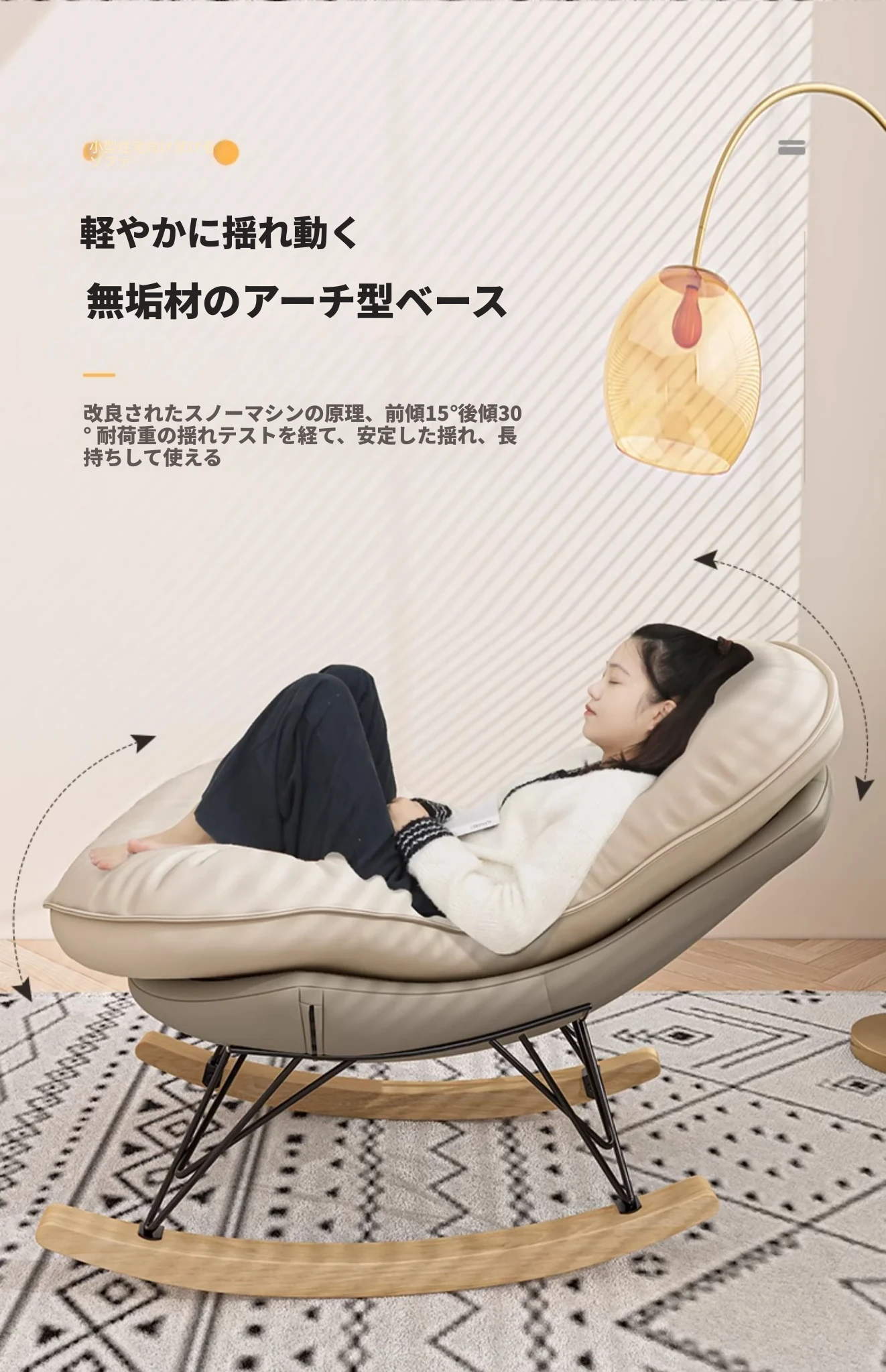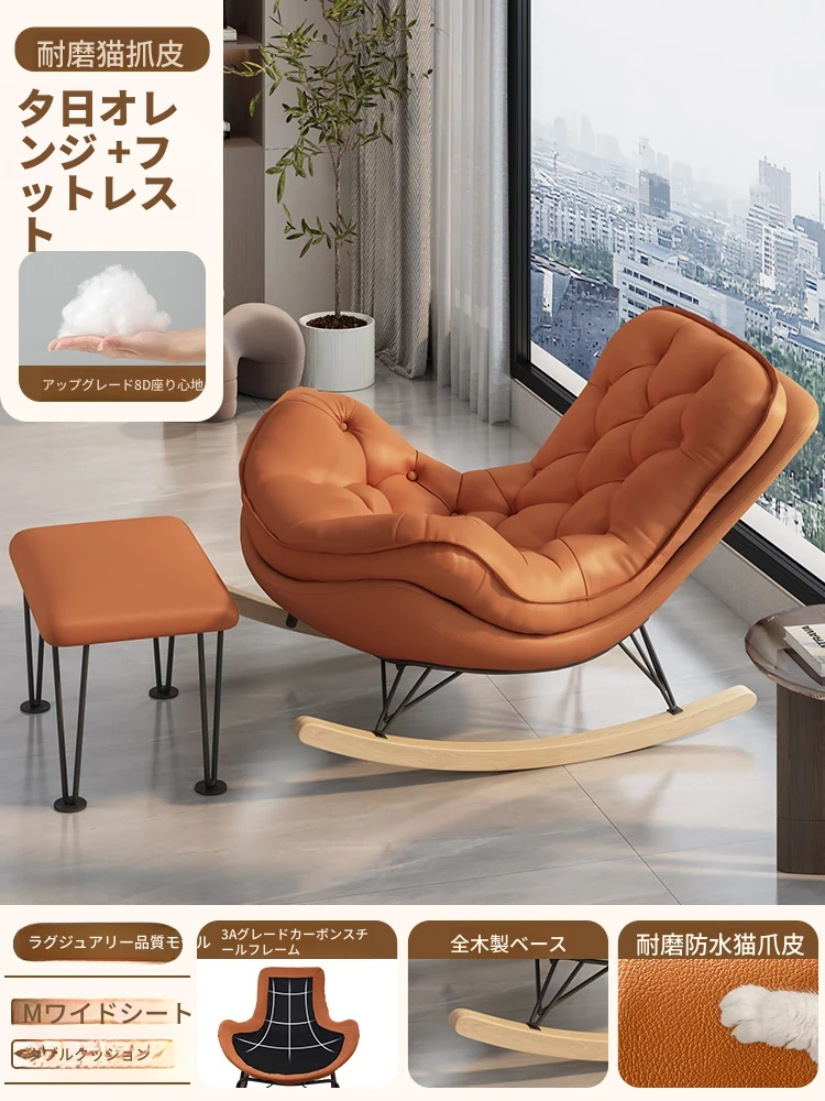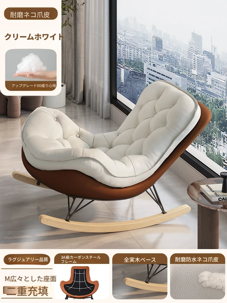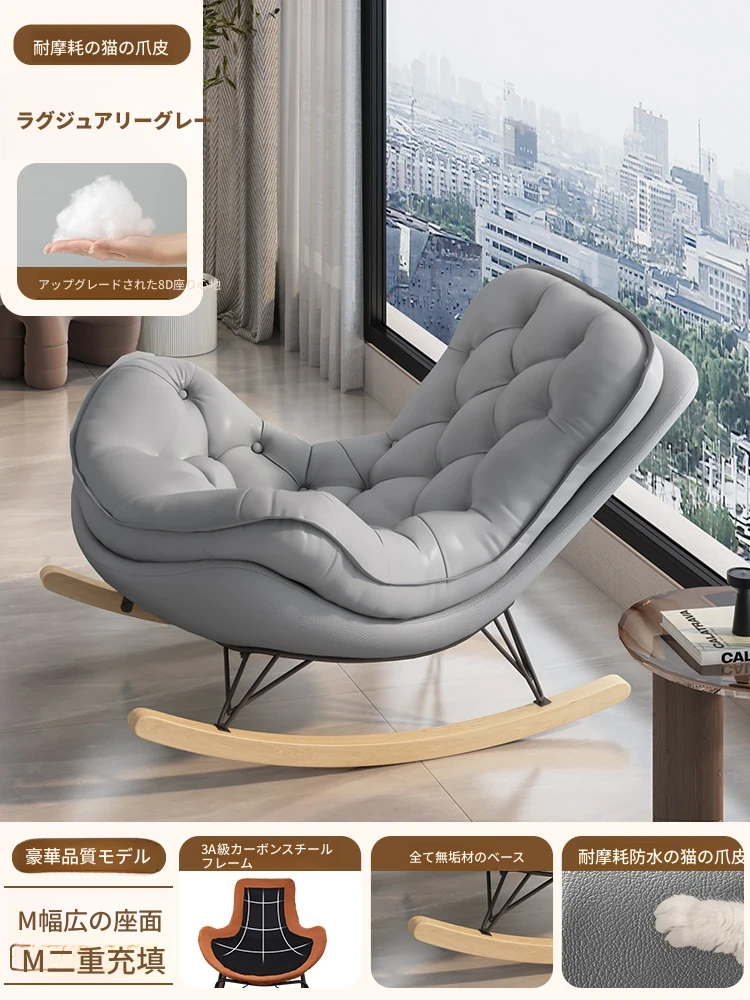 2024年新款!一人用ロッキングチェア、リラックスできるソファ。大人も寝られる快適なデザイン。バルコニーやリビングに最適な、怠け者のためのリラックスチェア!