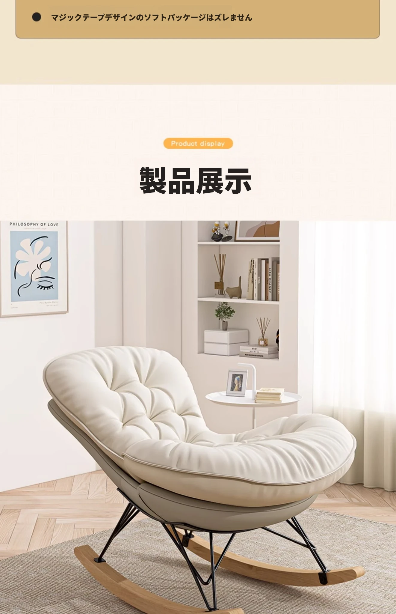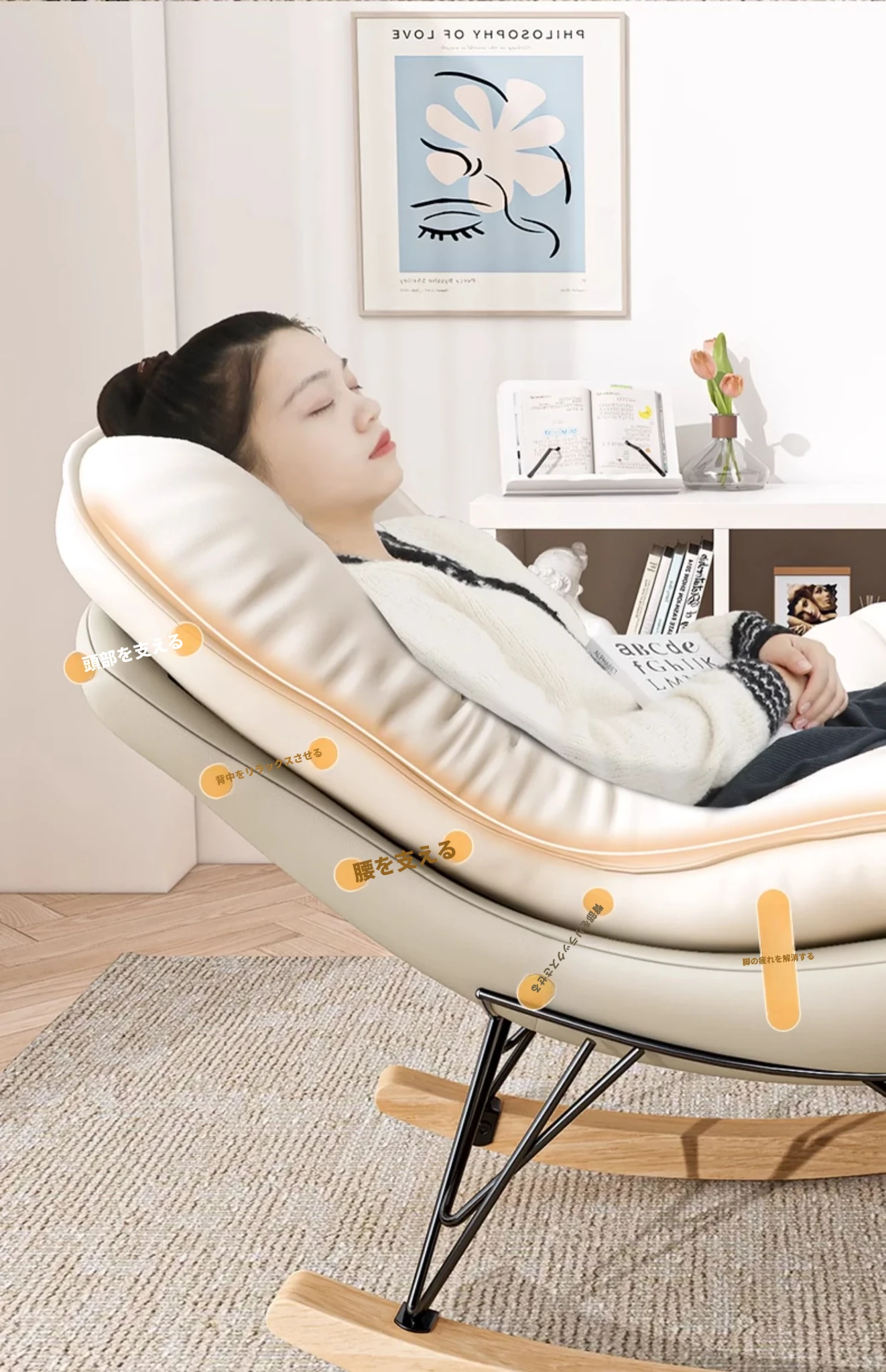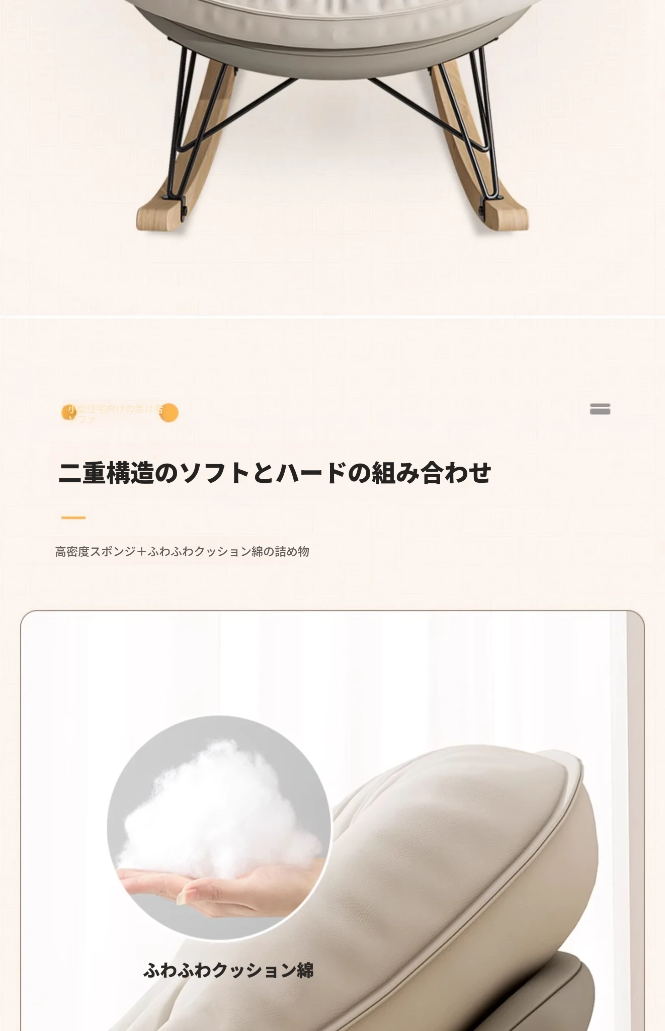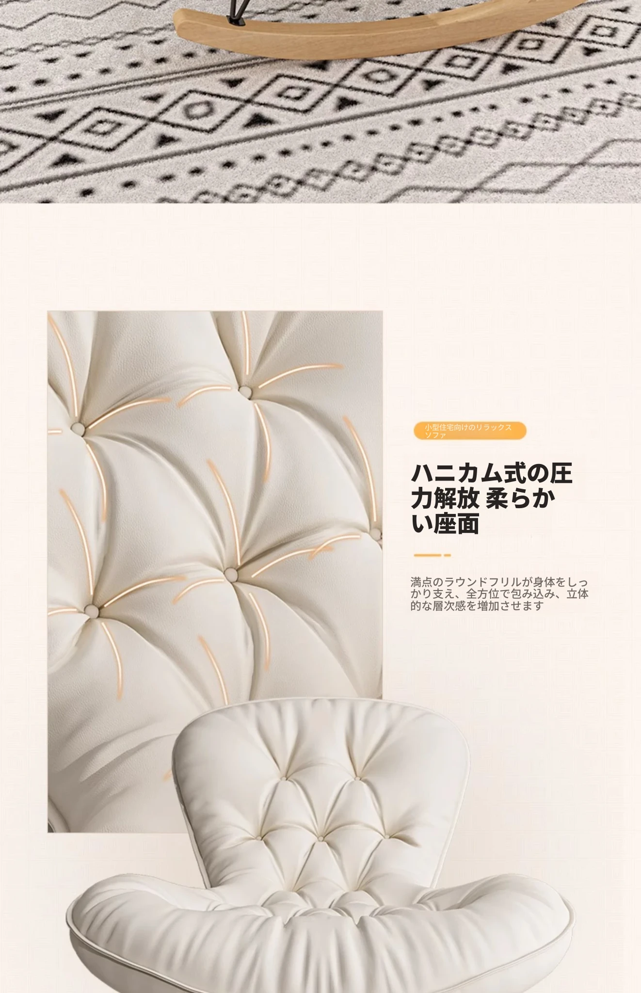 2024年新款!一人用ロッキングチェア、リラックスできるソファ。大人も寝られる快適なデザイン。バルコニーやリビングに最適な、怠け者のためのリラックスチェア!