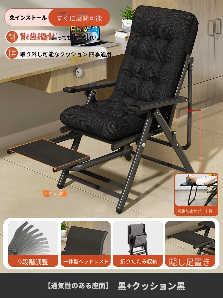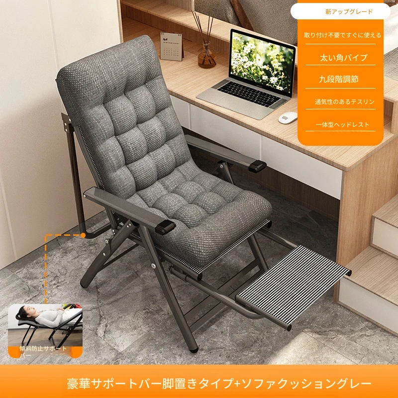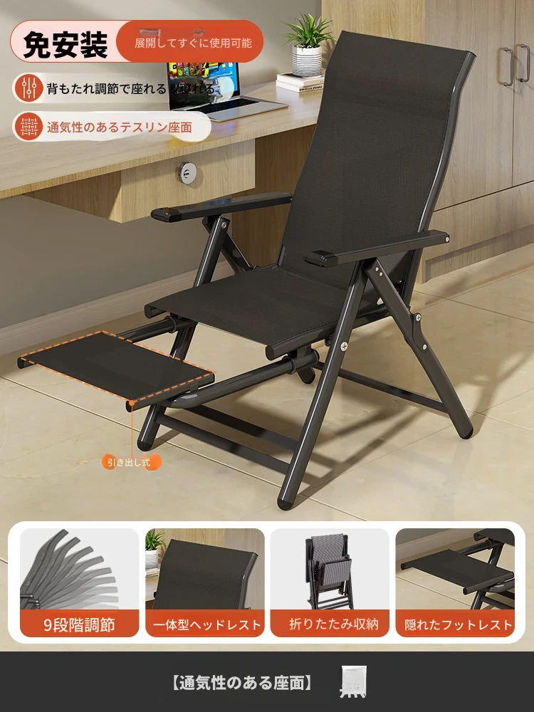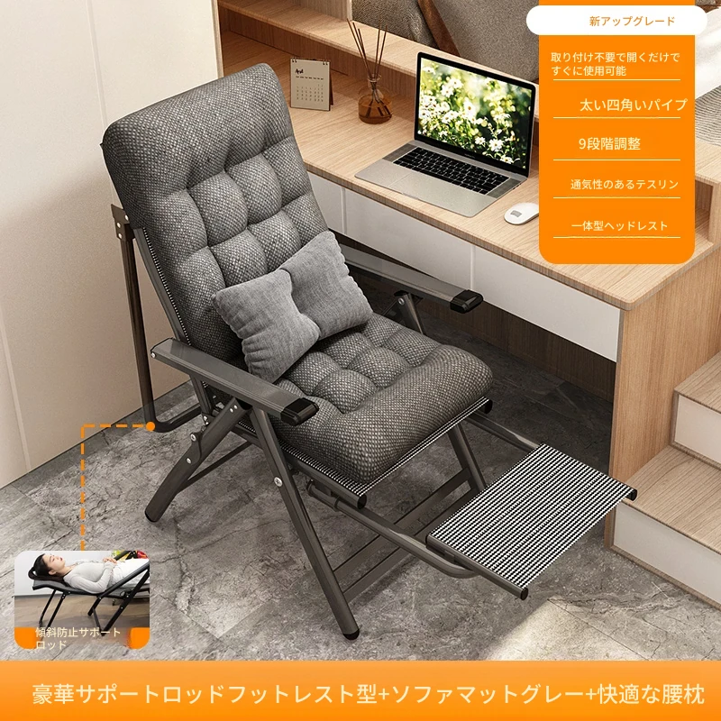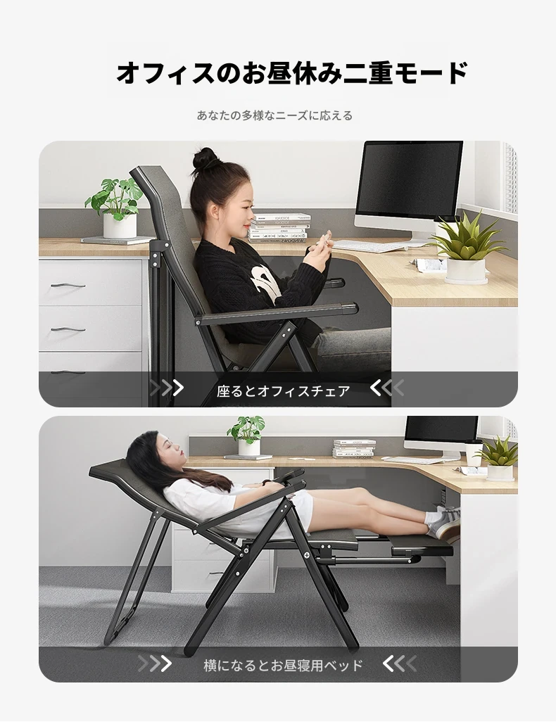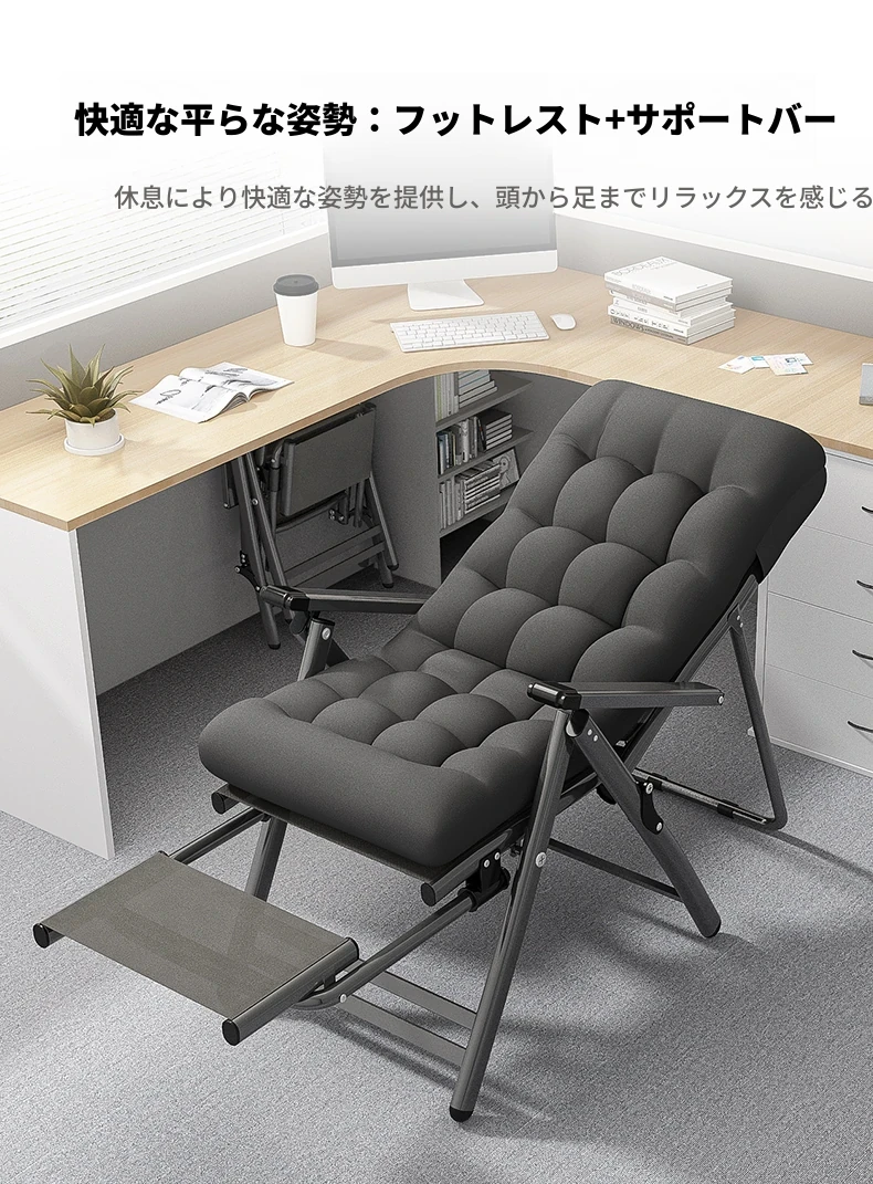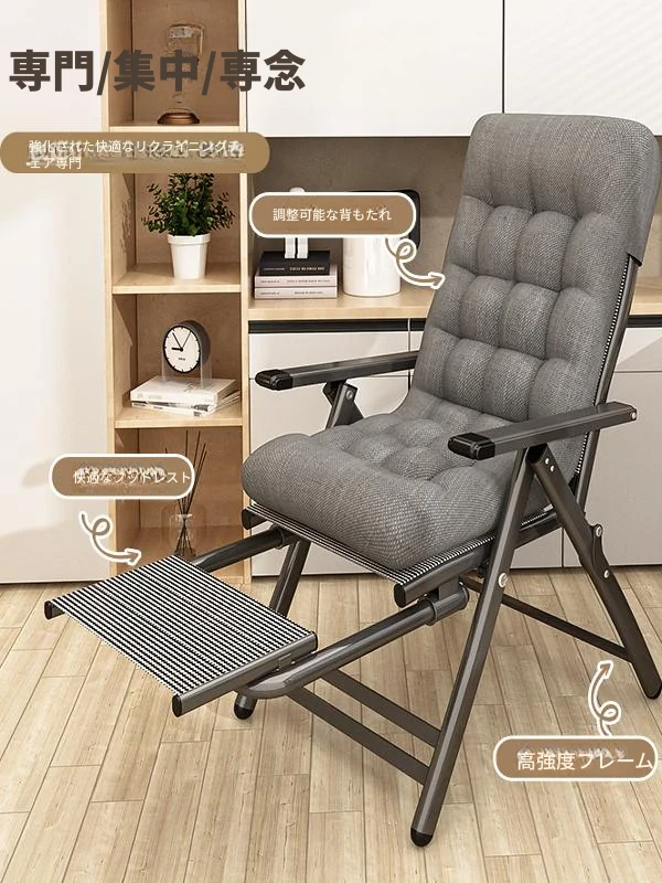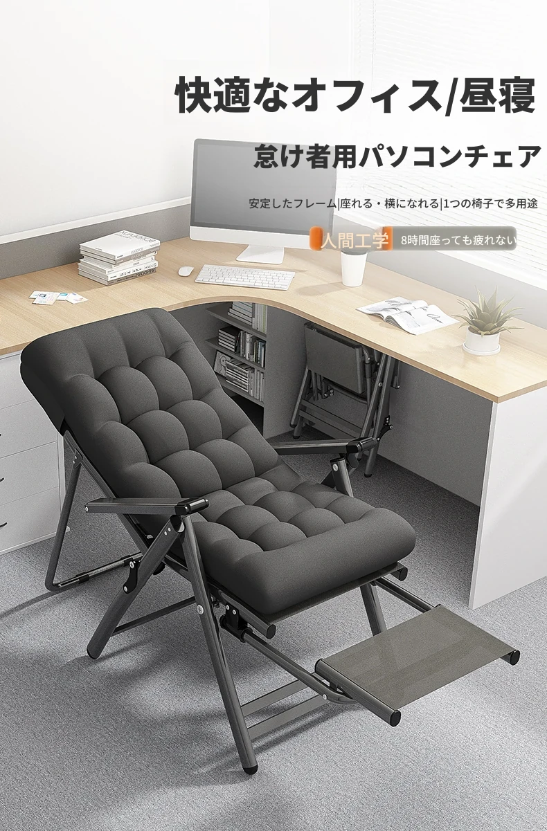 2025年最新のリクライニングチェア!折りたたみ可能なオフィス用お昼寝チェア。座っても寝ても快適なデザインで、怠け者にも最適。学生寮や自宅のPC作業にもぴったり!