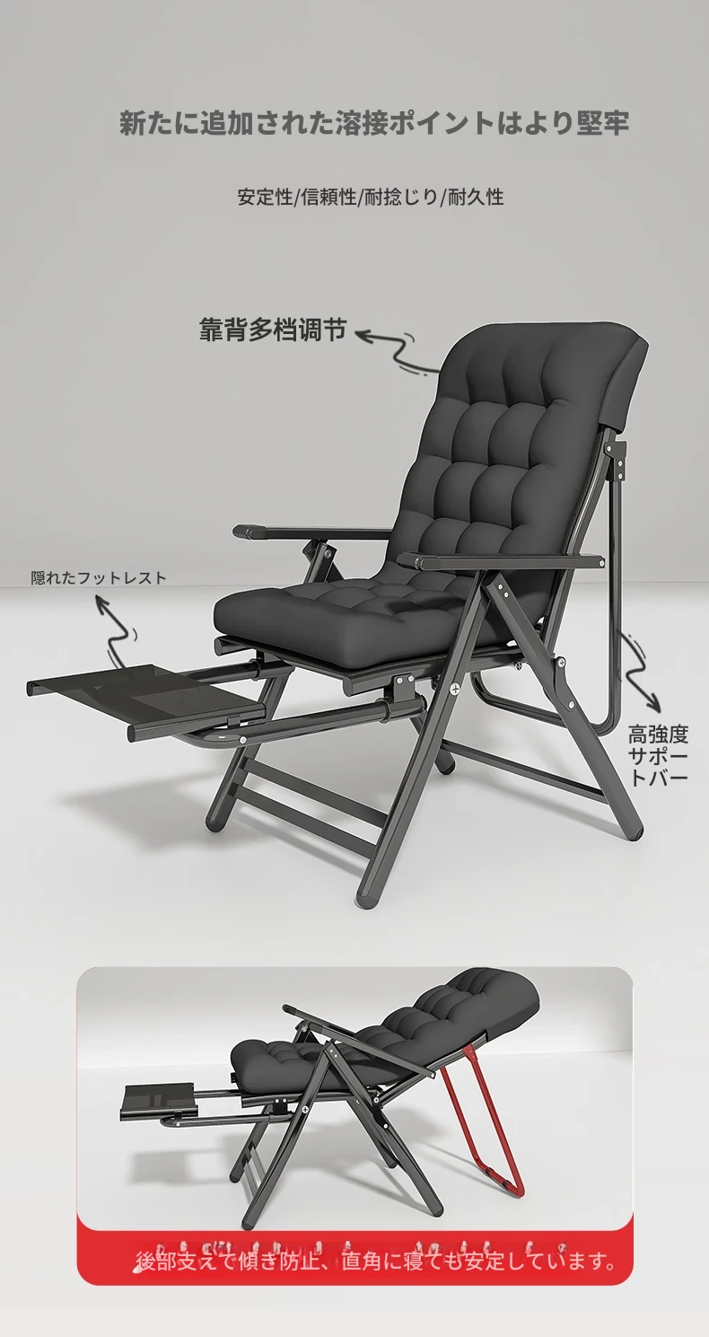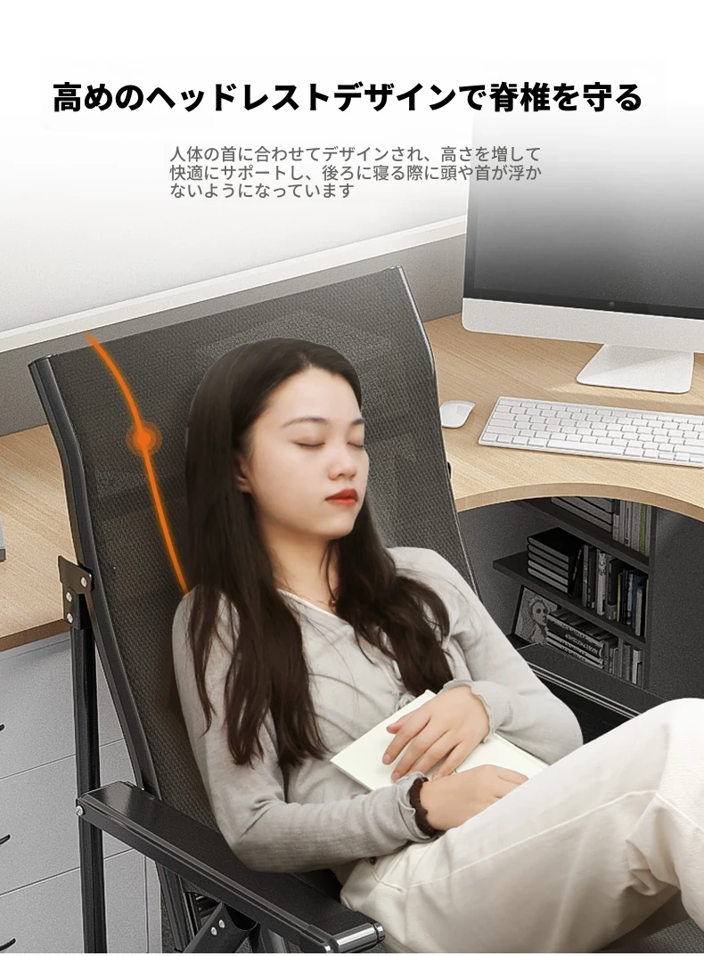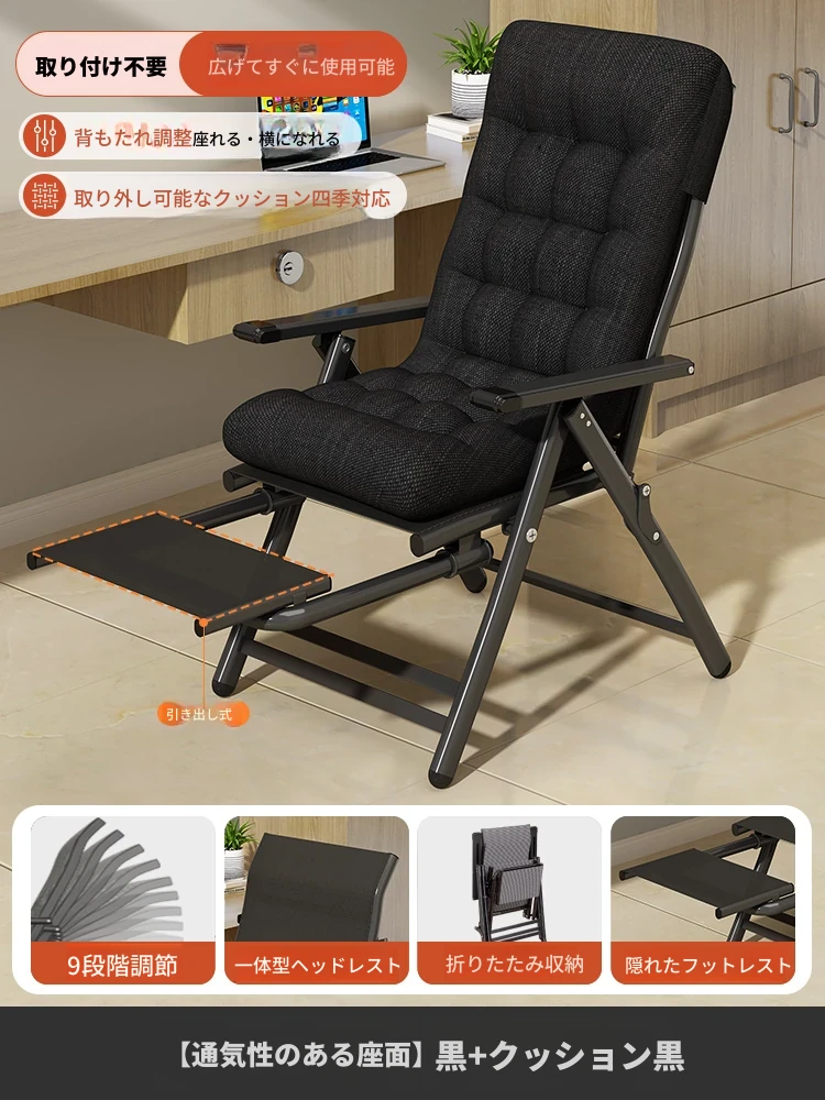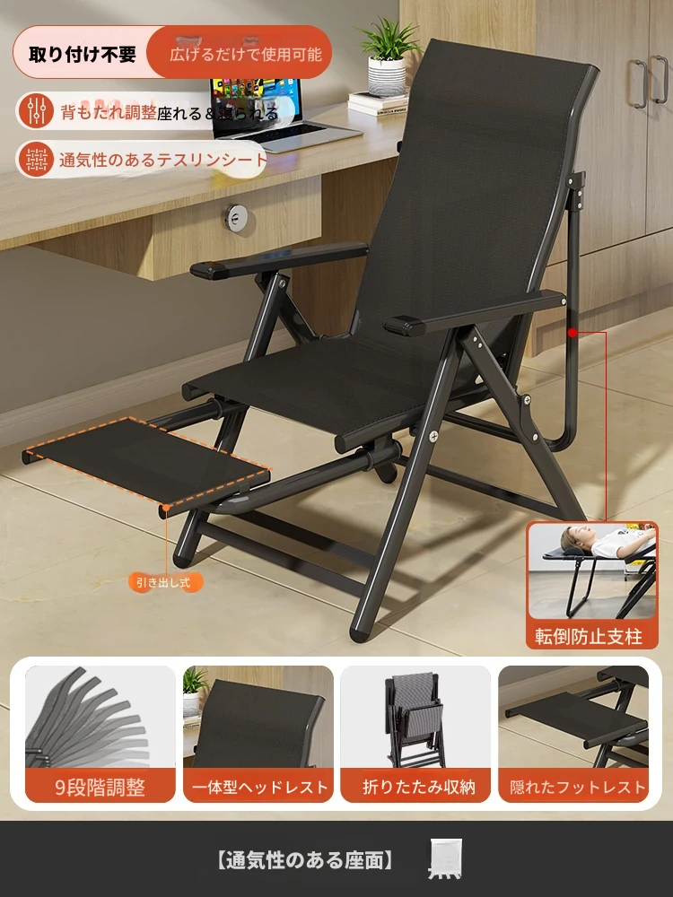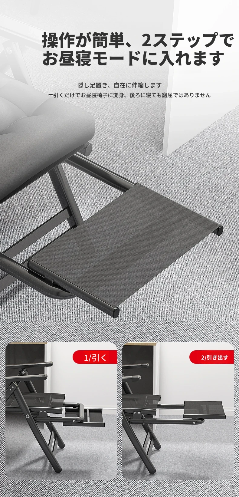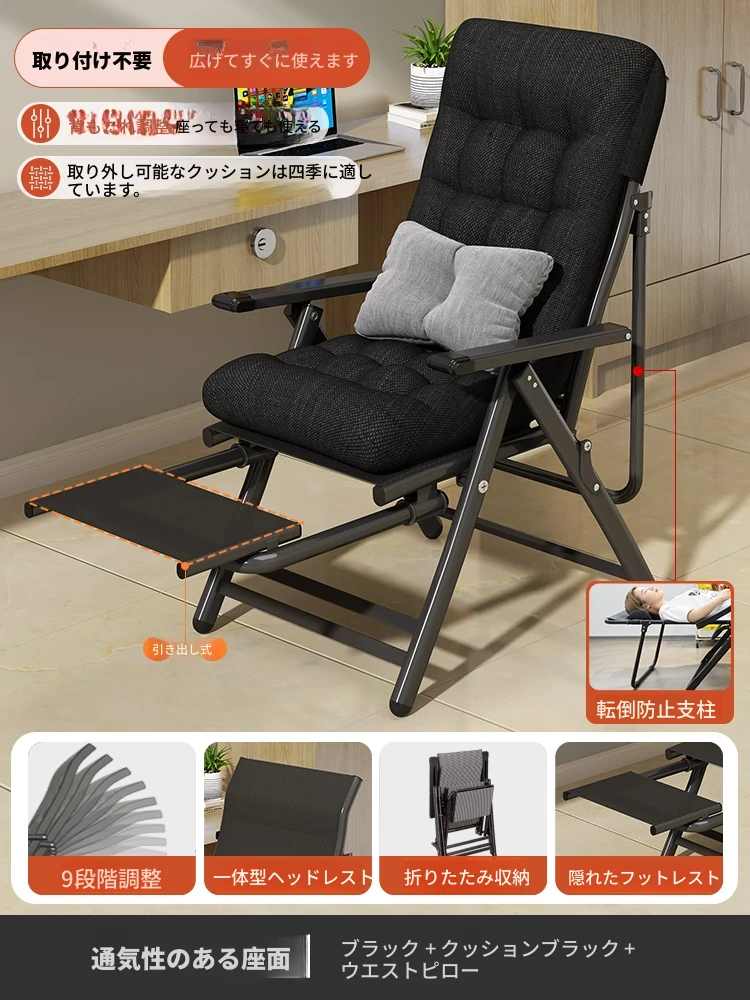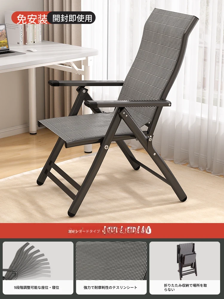 2025年最新のリクライニングチェア!折りたたみ可能なオフィス用お昼寝チェア。座っても寝ても快適なデザインで、怠け者にも最適。学生寮や自宅のPC作業にもぴったり!