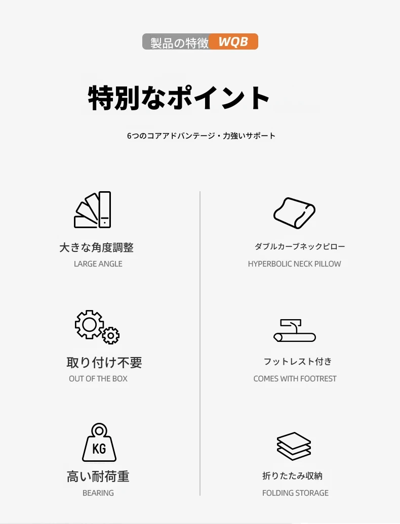 ⭐好評続出✅【ラグジュアリー快適+ヘッドサポートバー】9段調整+フットレスト+クッション(シルバーグレー)