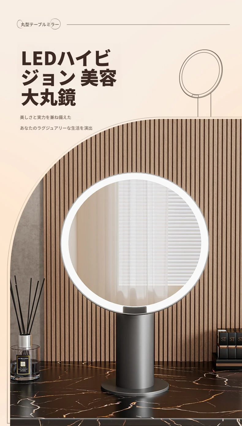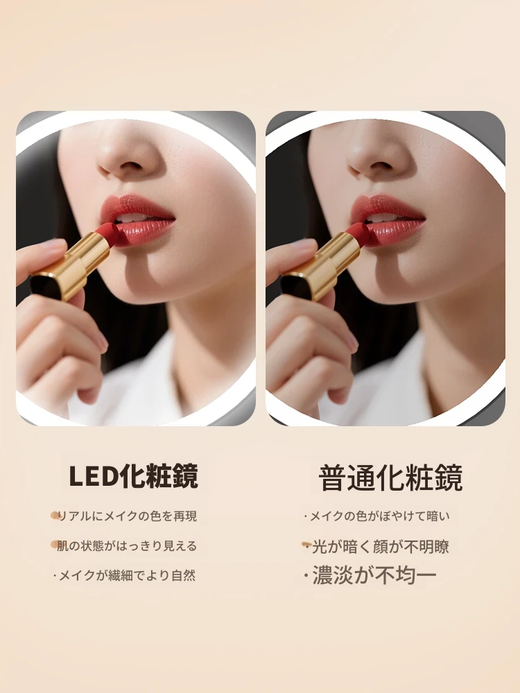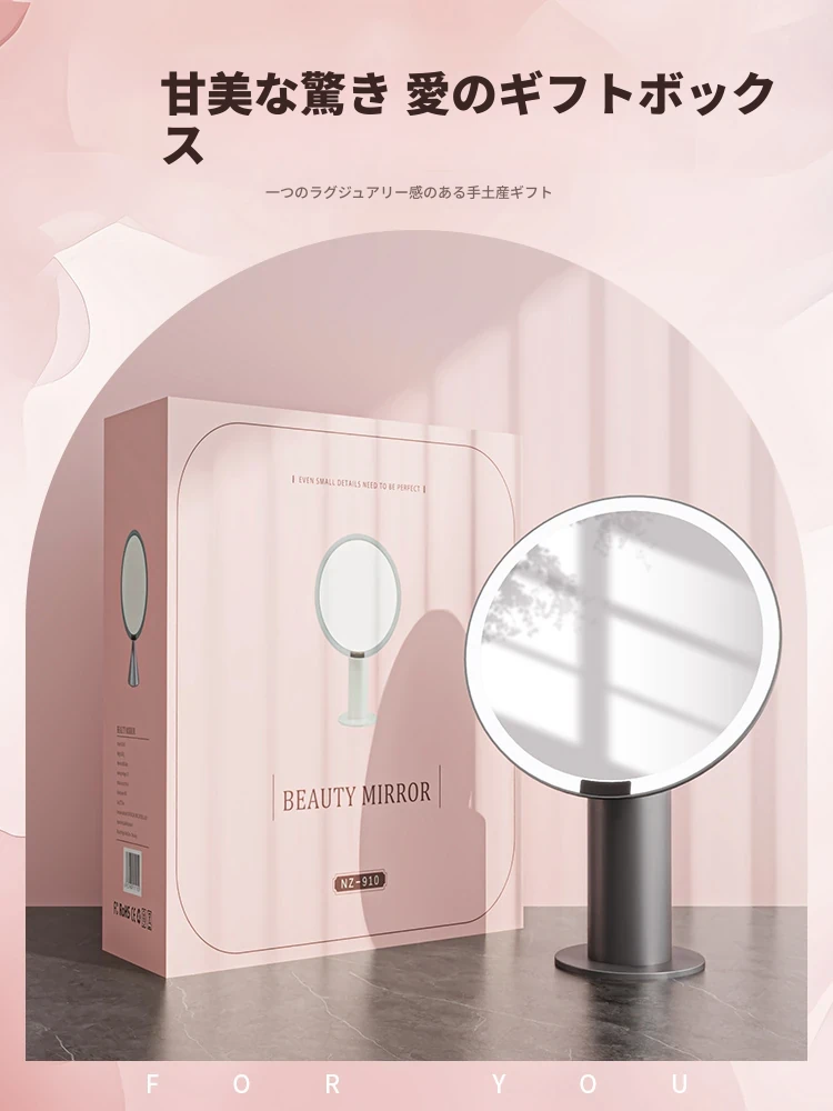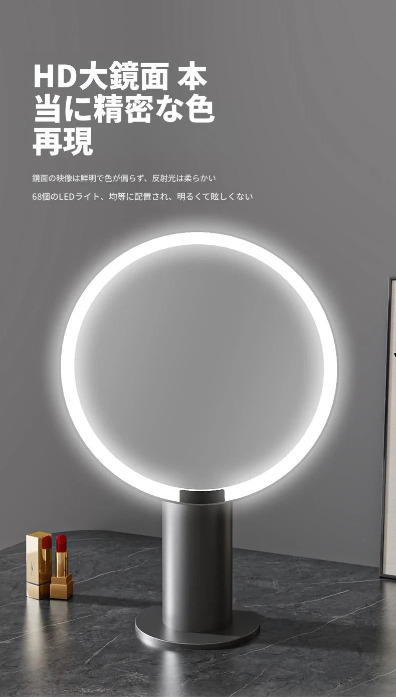 2025年新型LEDメイクミラー - オフィスや家庭に最適!明るい照明で美しさを引き立てる高解像度の卓上ミラー。あなたのメイクアップを完璧にサポートします!