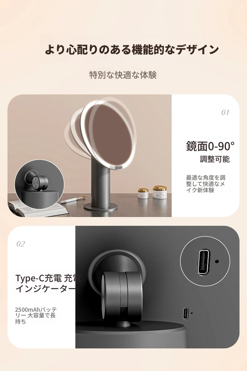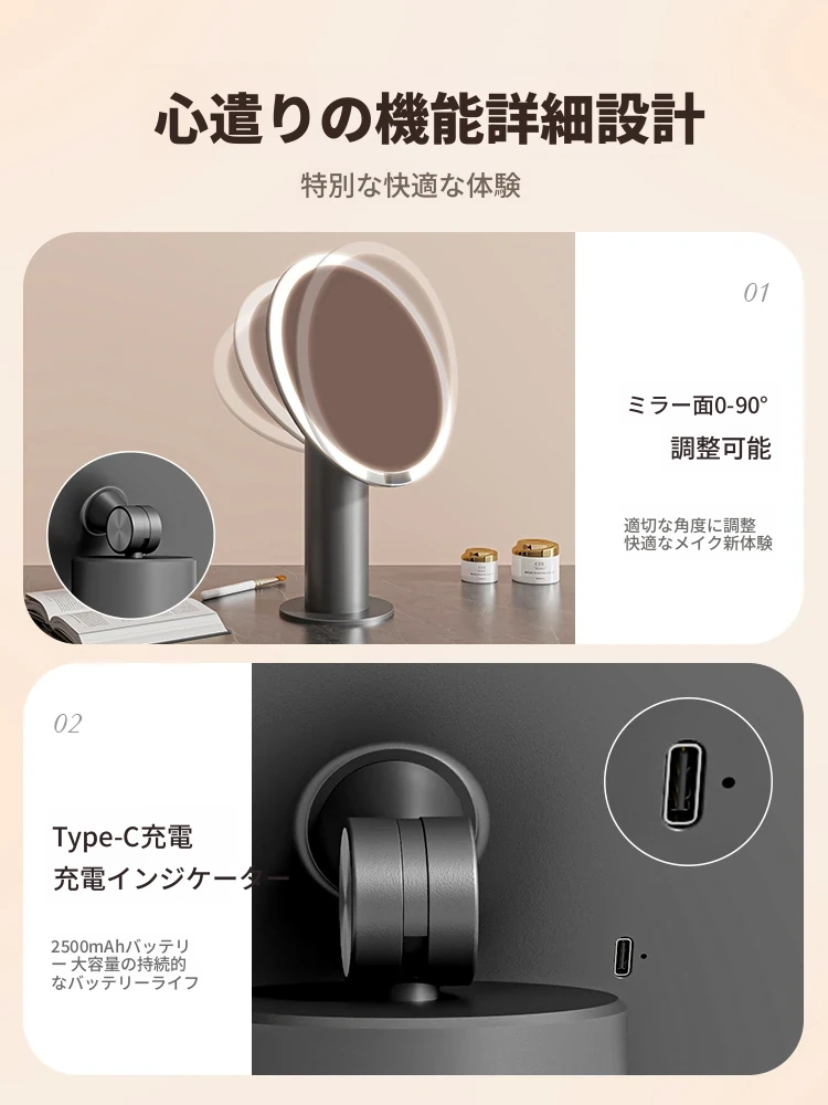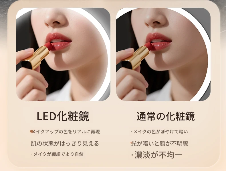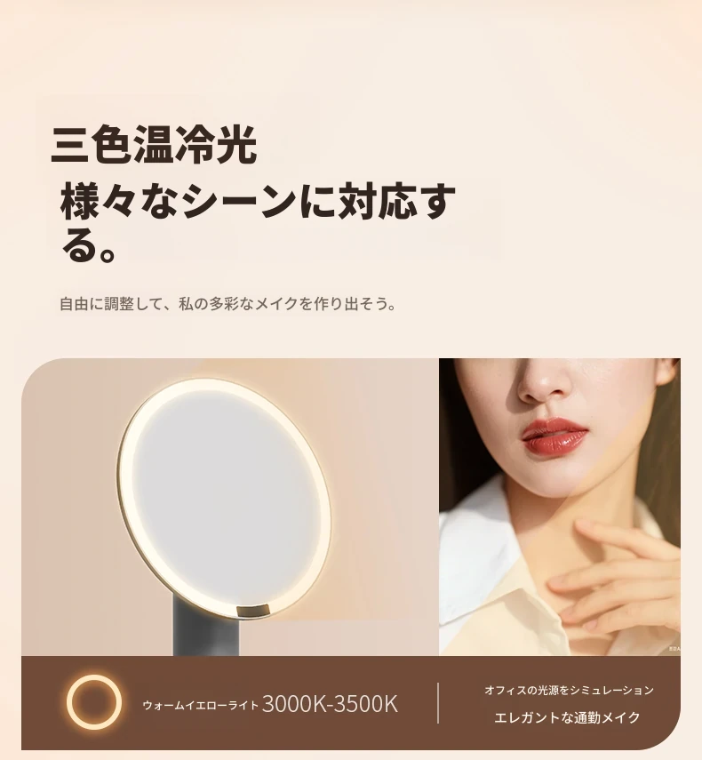 2025年新型LEDメイクミラー - オフィスや家庭に最適!明るい照明で美しさを引き立てる高解像度の卓上ミラー。あなたのメイクアップを完璧にサポートします!