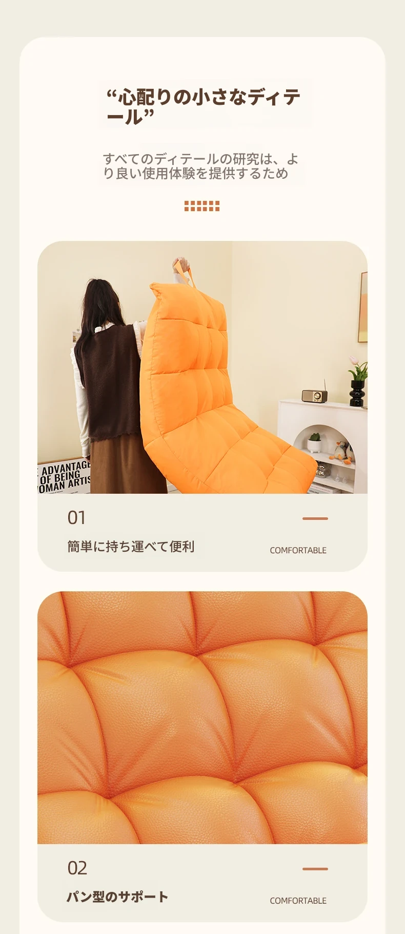 ふっくらしてへこまない/体にフィットしてしっかり包み込む/カスタマーサポートに連絡で10元