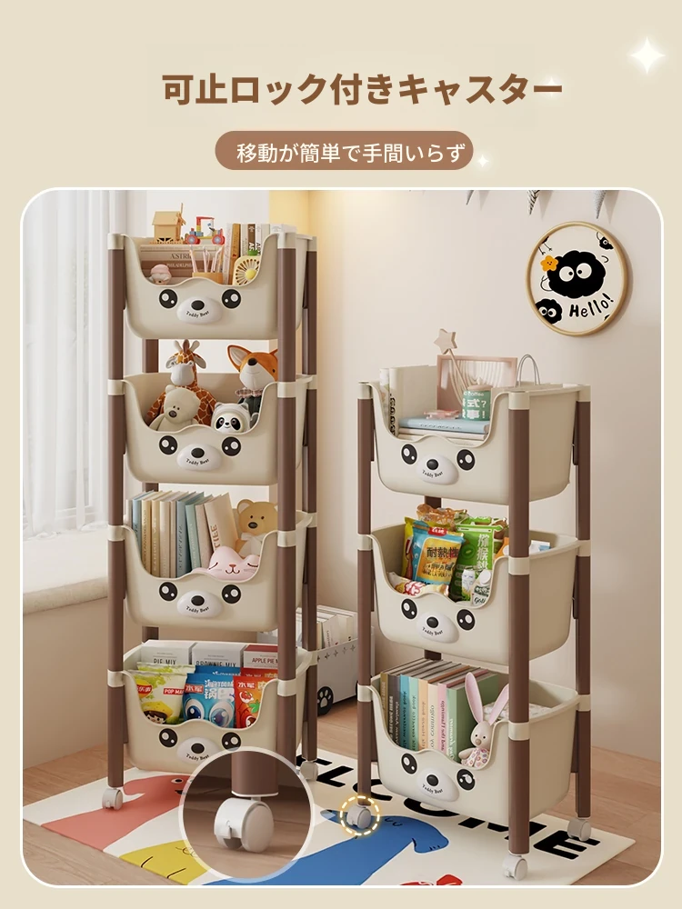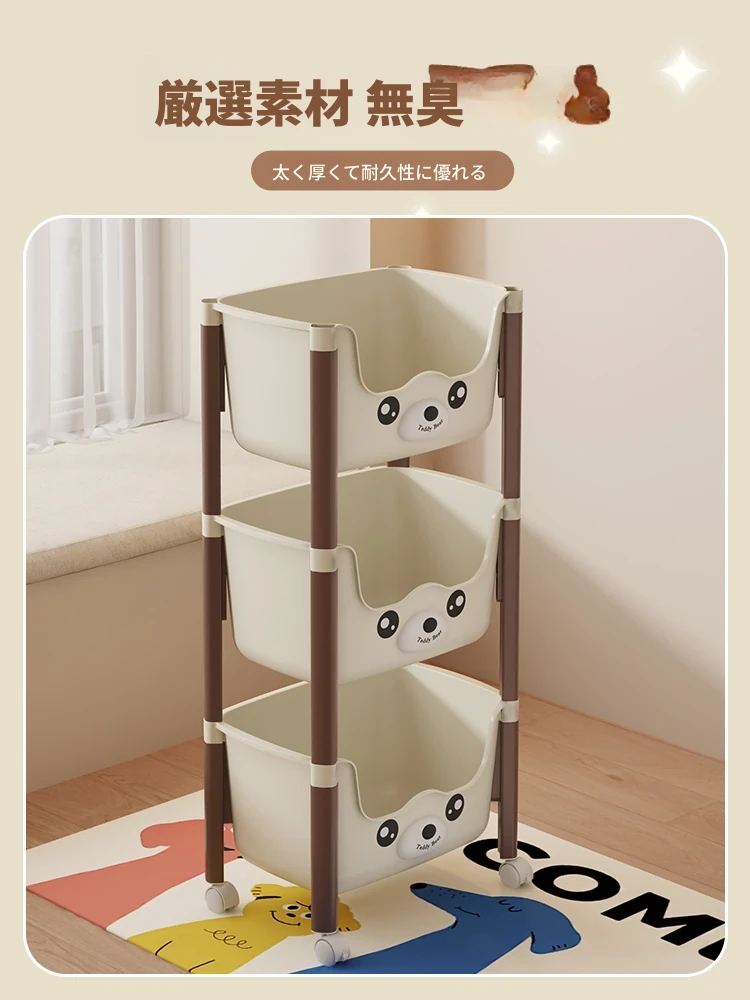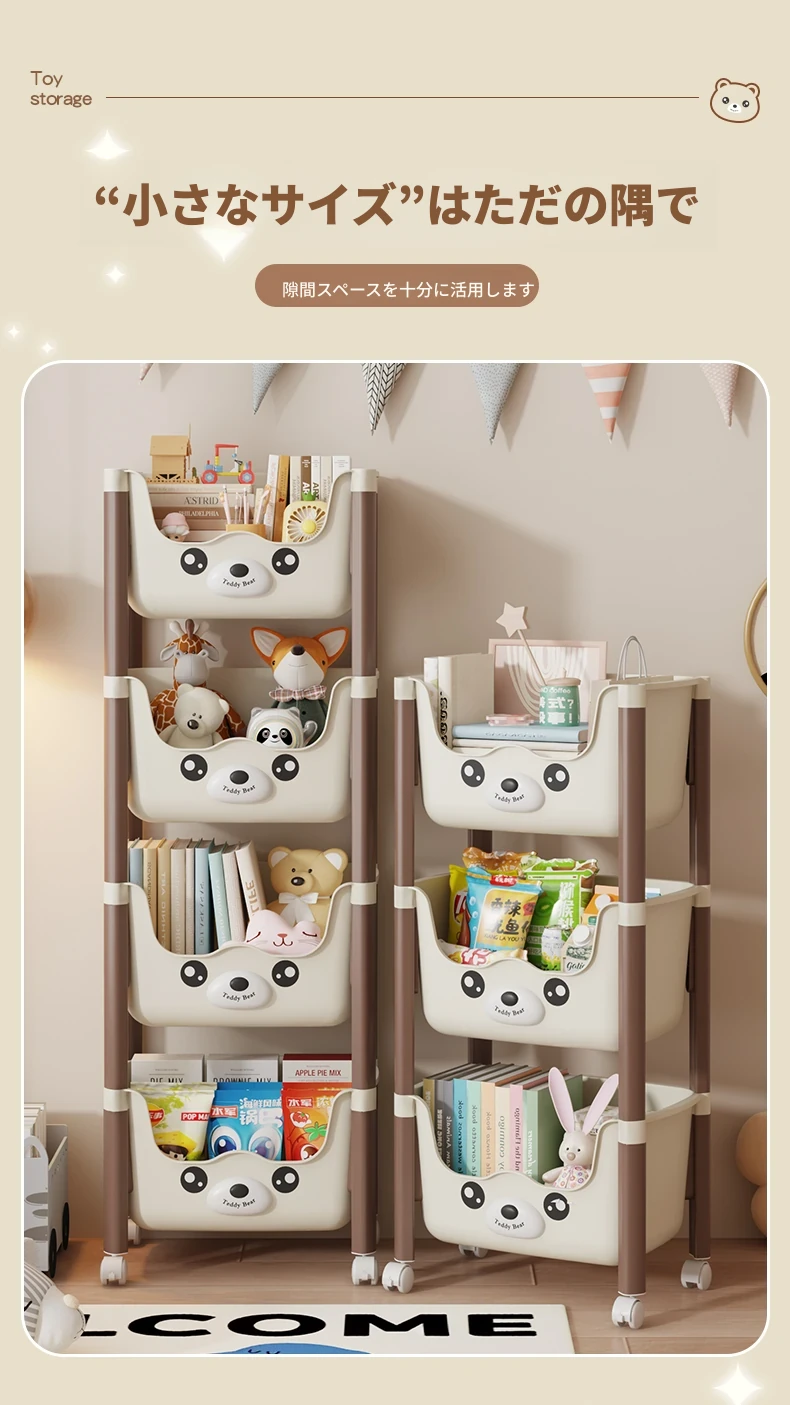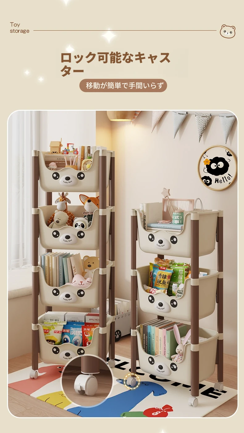 子供のおもちゃ収納カート|スナック収納にも最適な多段絵本ラック|家庭用移動式整理棚でお部屋をスッキリ!