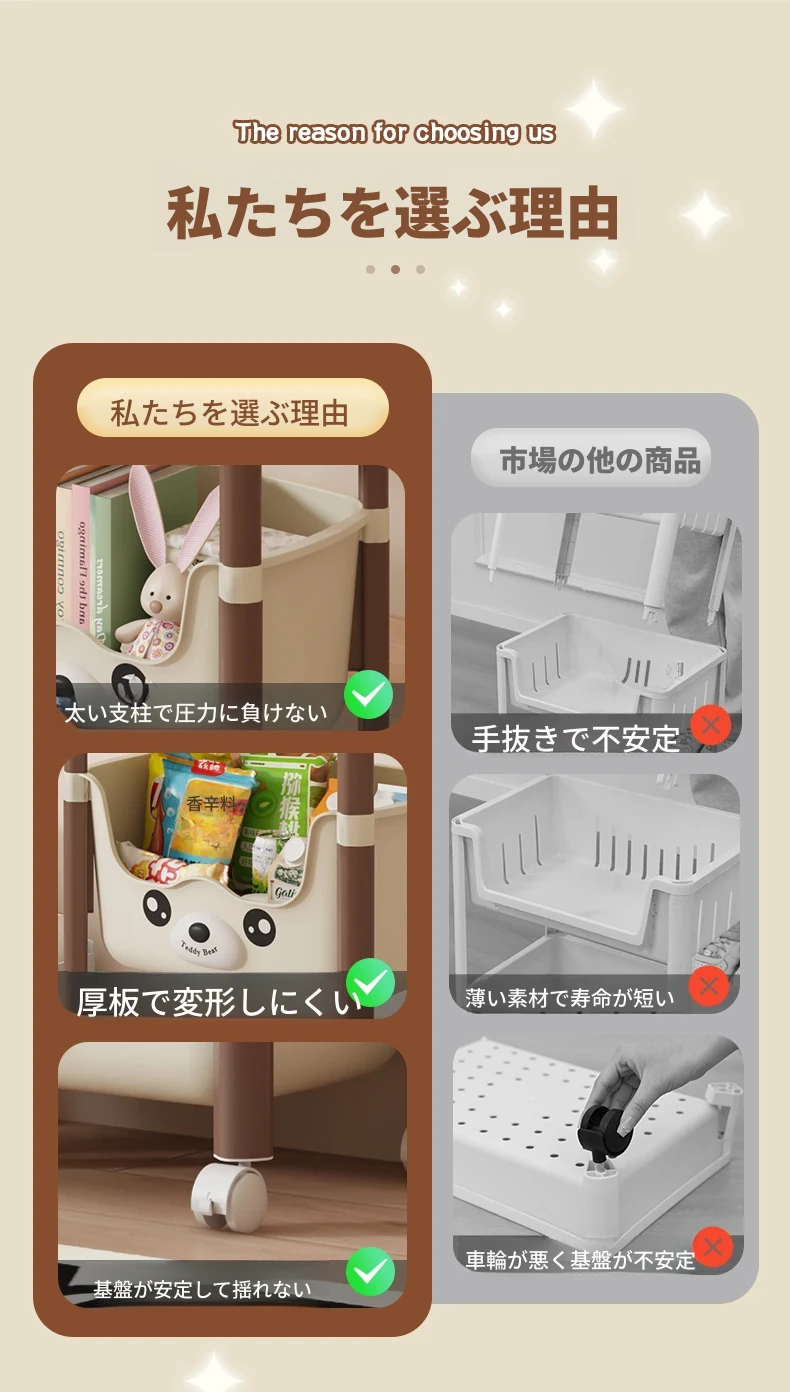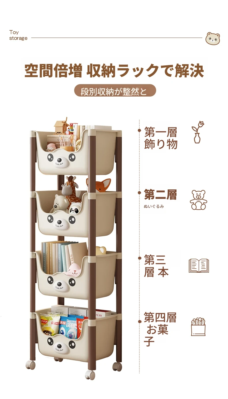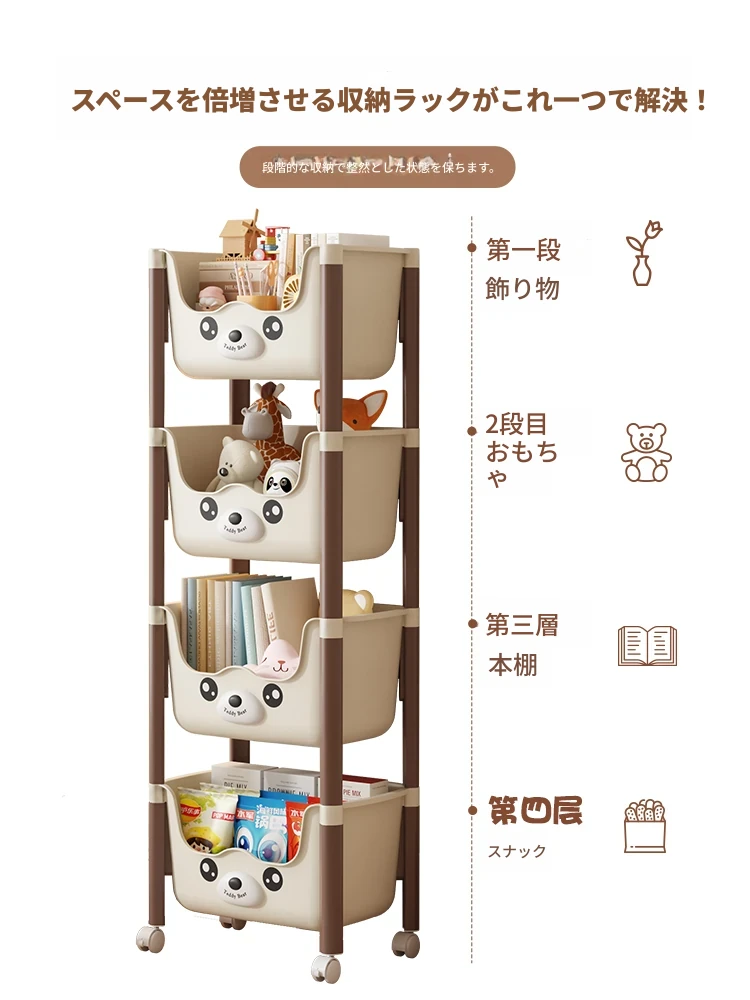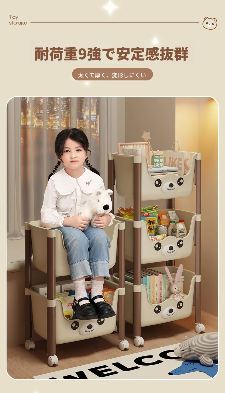 子供のおもちゃ収納カート|スナック収納にも最適な多段絵本ラック|家庭用移動式整理棚でお部屋をスッキリ!