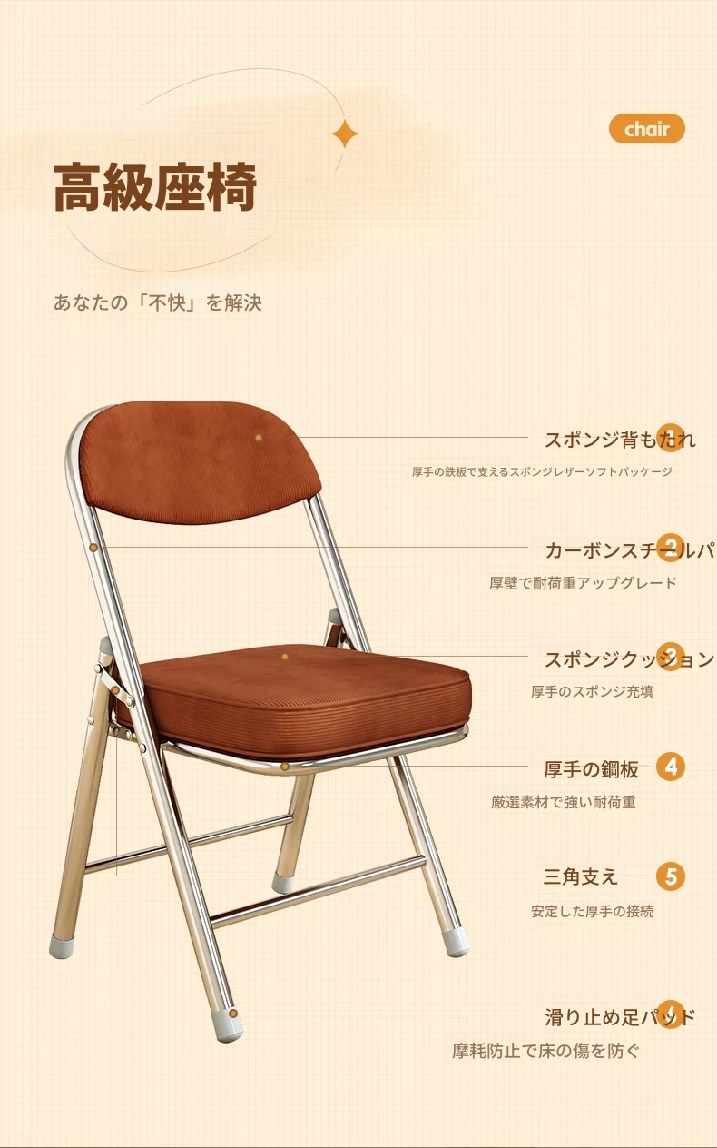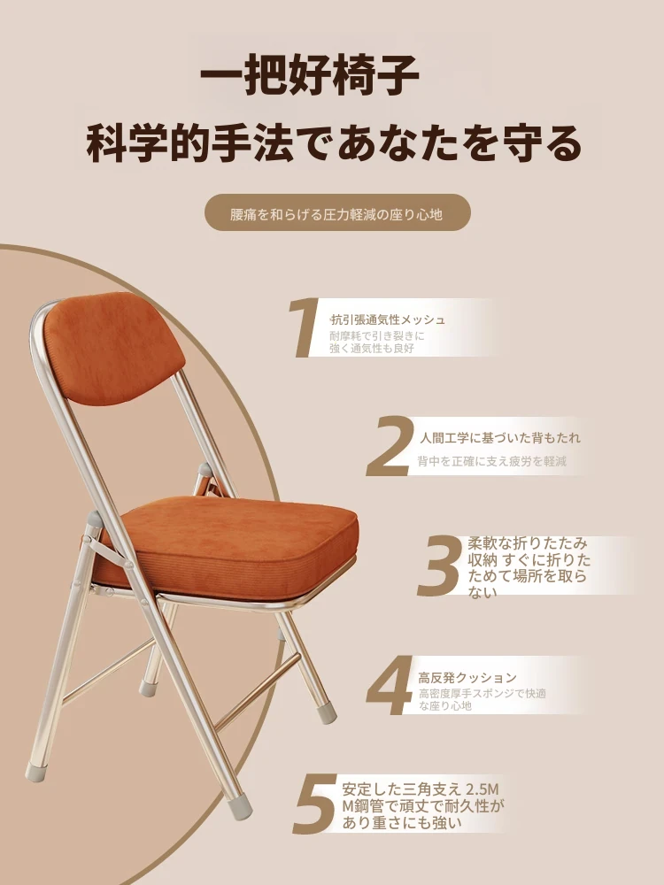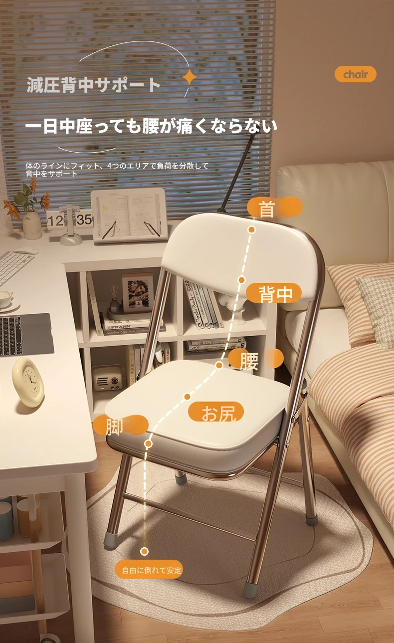 折りたたみ式簡易スツール|快適な背もたれ付き|在宅ワークや勉強に最適|学生にもおすすめのデスクチェア|長時間の座り心地を追求!