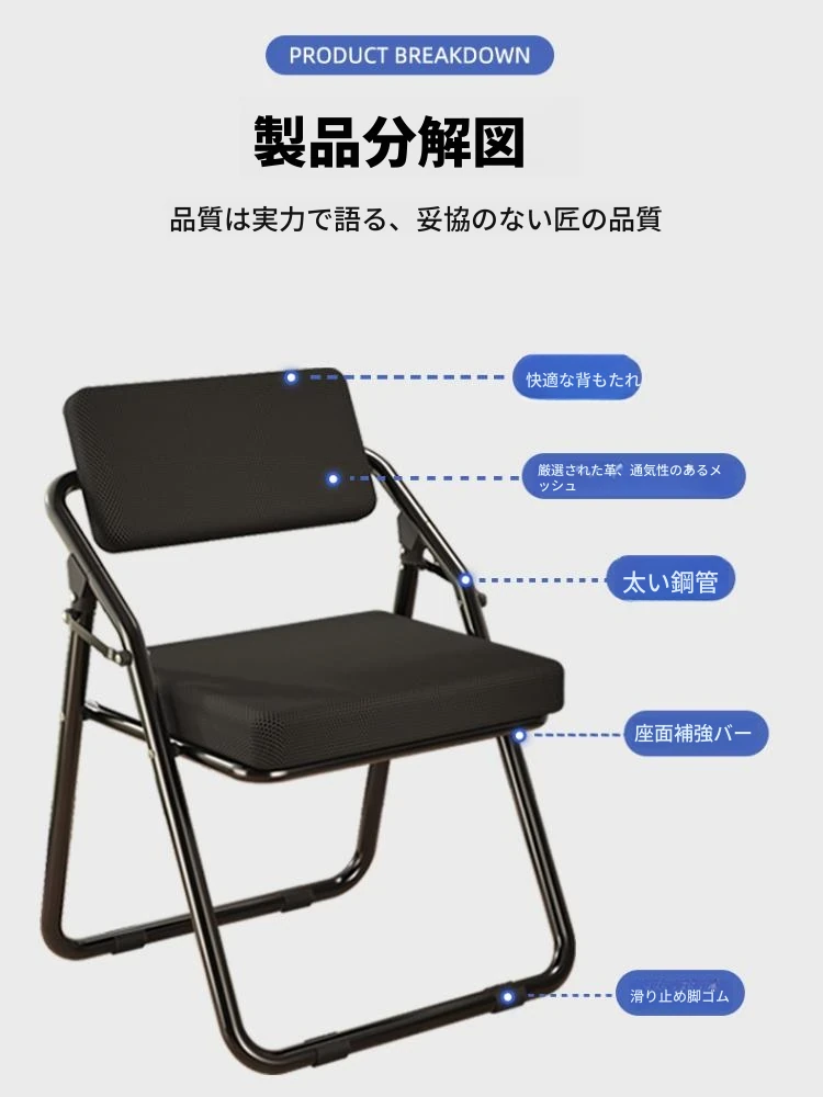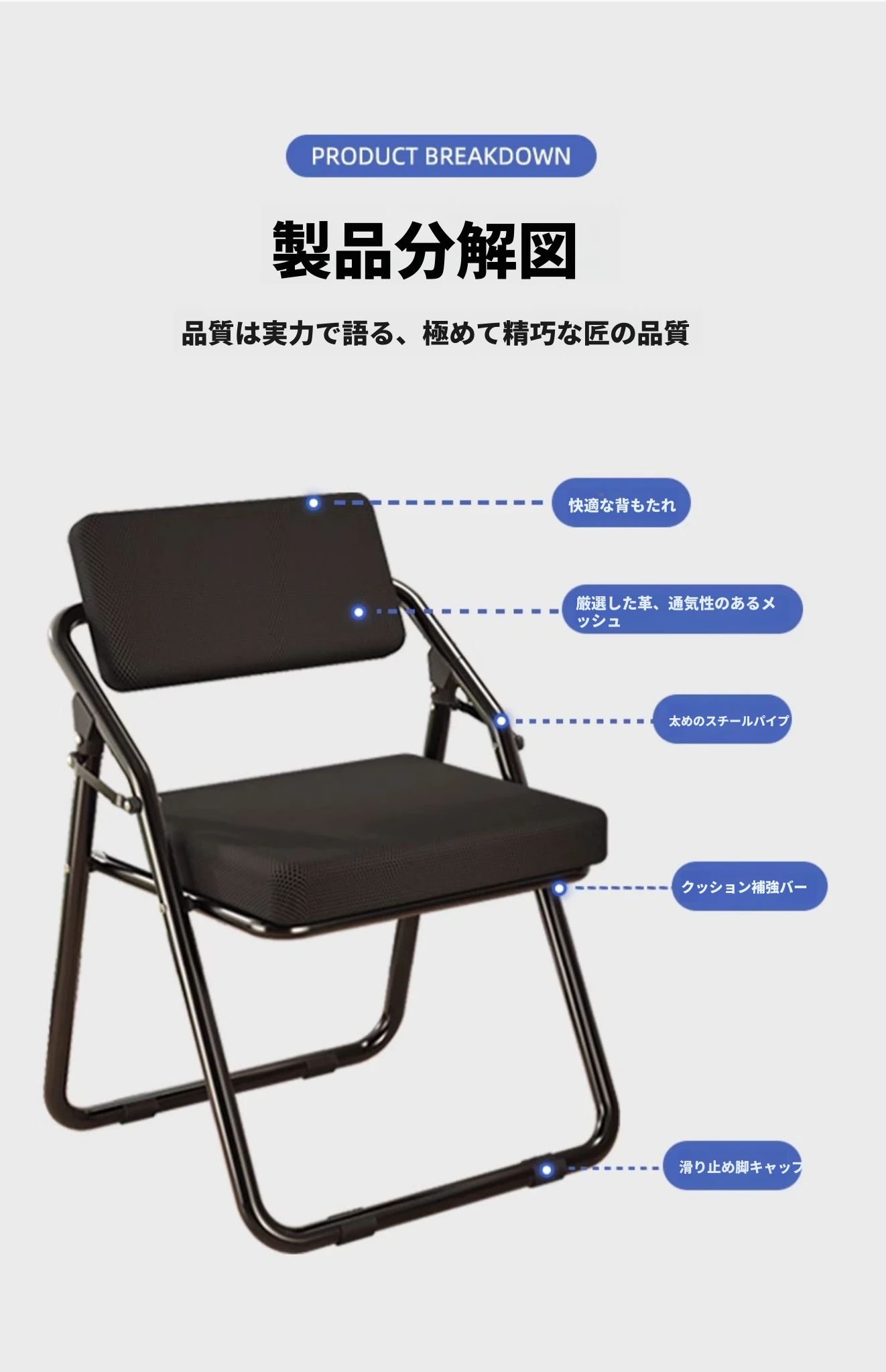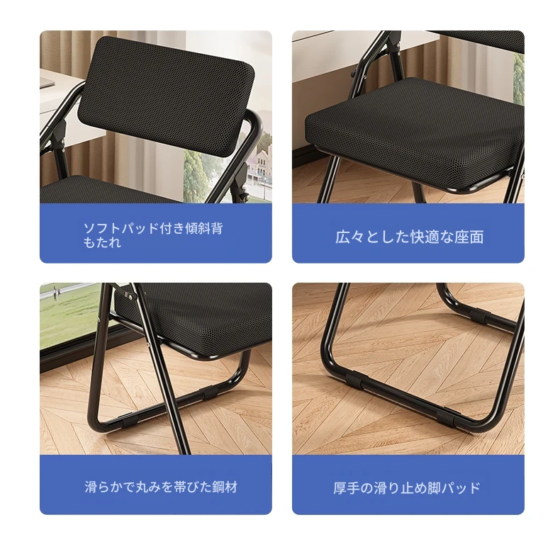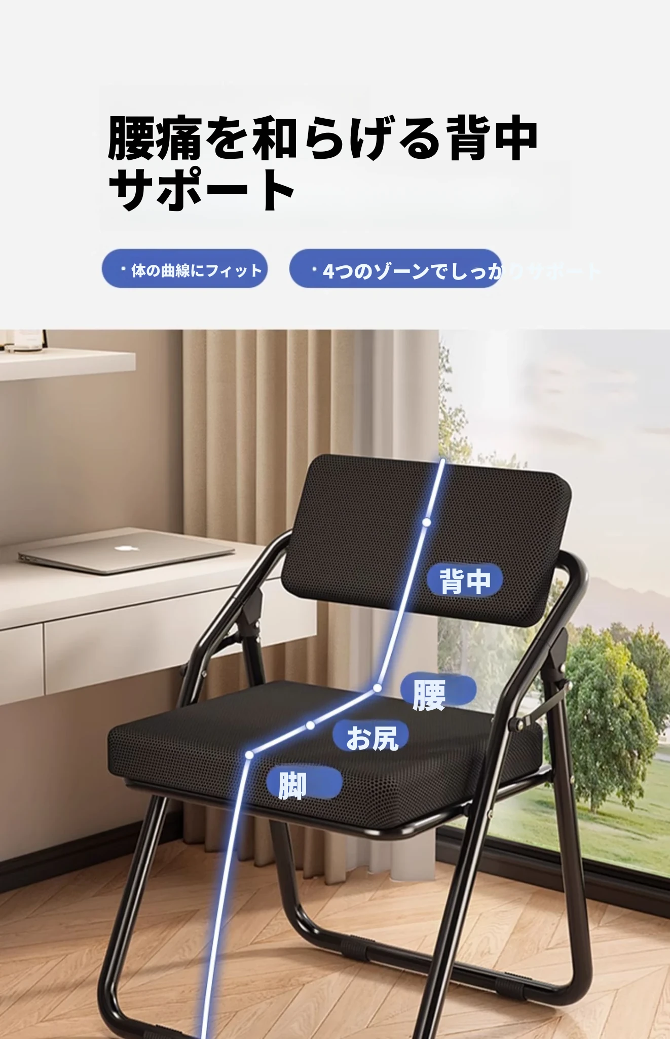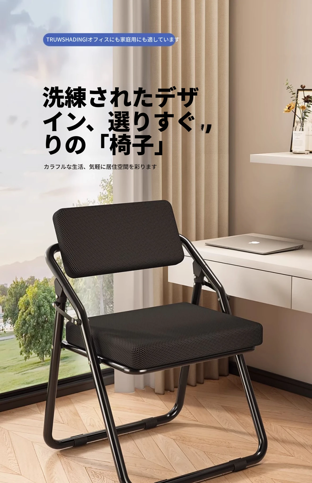 快適な長時間座り作業に最適!折りたたみ式のシンプルなパソコンチェア。学生寮やオフィス、トレーニングにもぴったりな便利な座椅子。デザインもスタイリッシュで、どんな場所にもマッチします。