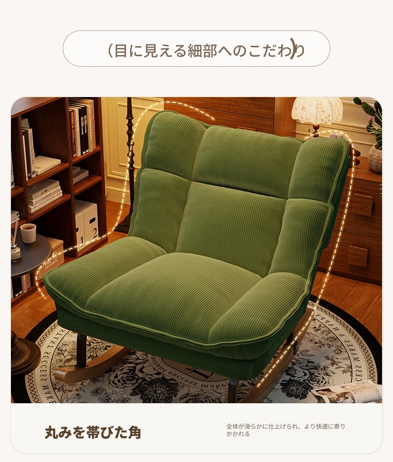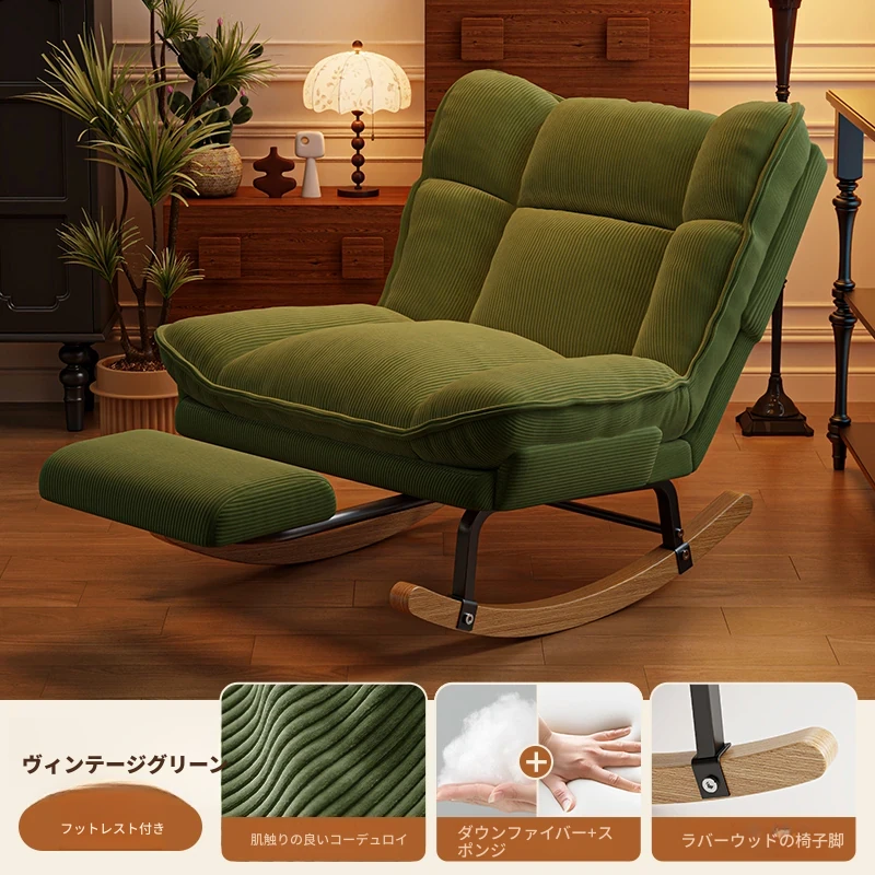 『柔らかいコーデュロイ』ヴィンテージグリーン+フットスツール(背もたれ調整可能+二重クッション)