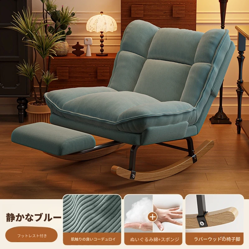 『柔らかいコーデュロイ』静謐なブルー+フットスツール(背もたれ調整可能+二重クッション)