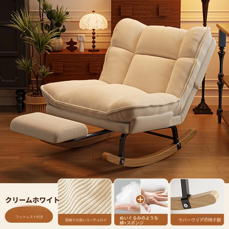 店長おすすめ❤『柔らかいコーデュロイ』アイボリー+フットスツール(背もたれ調整可能+二重クッション)