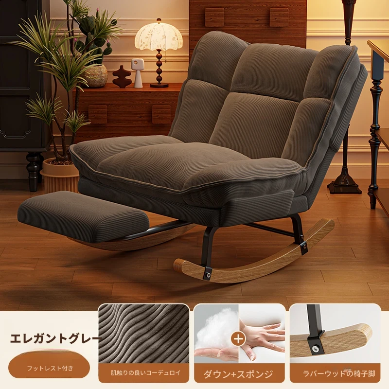 『柔らかいコーデュロイ』エレガントグレー+フットスツール(背もたれ調整可能+二重クッション)