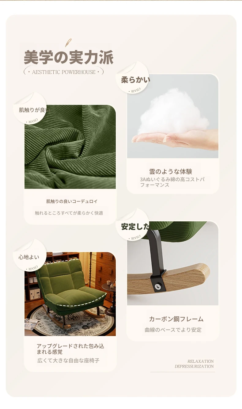 リクライニングチェア 大人向け お昼寝に最適!リラックスできるソファ、リビングやバルコニーにぴったりの快適な一人掛け椅子。あなたのくつろぎタイムをサポートします!
