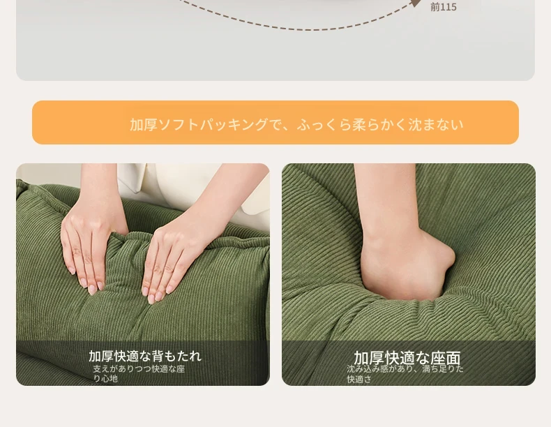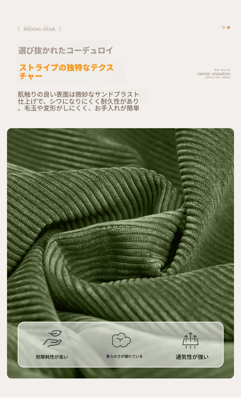 『柔らかいコーデュロイ』ヴィンテージグリーン(背もたれ調整可能+二重クッション)