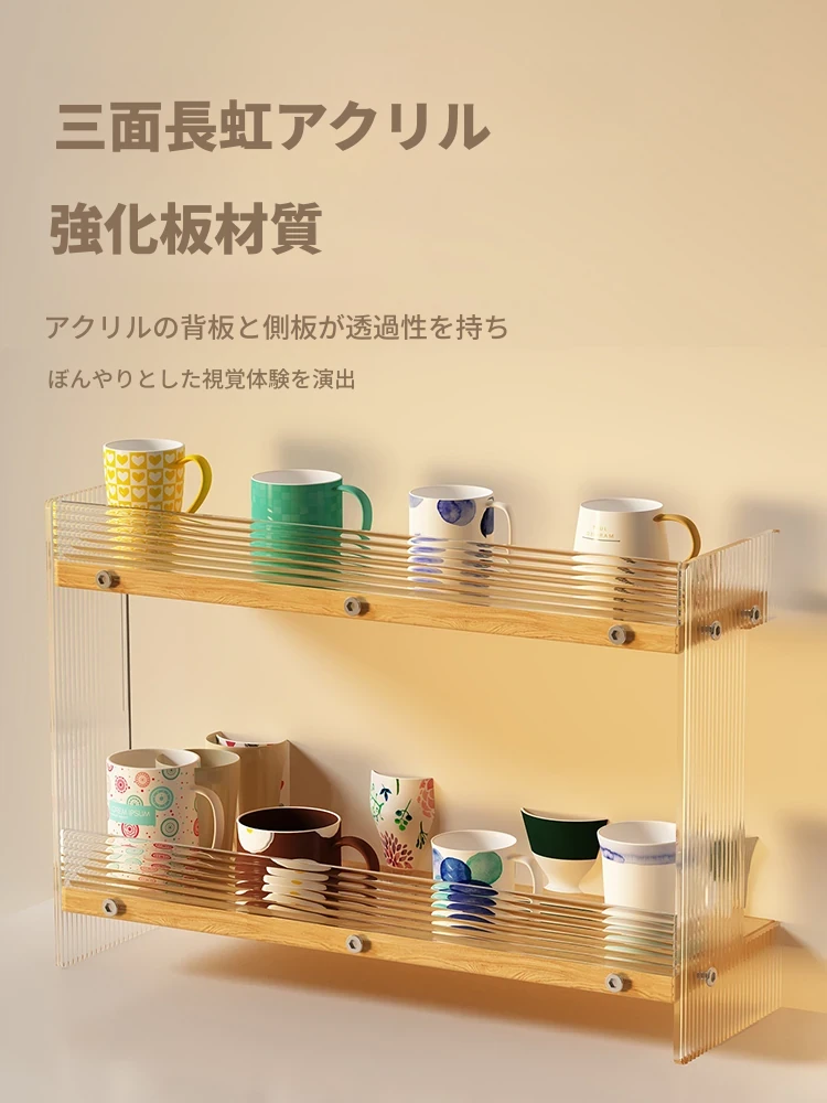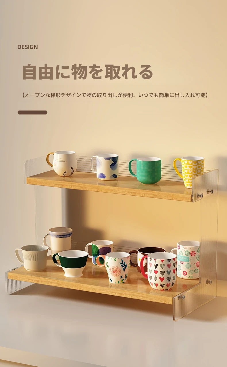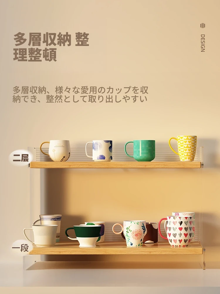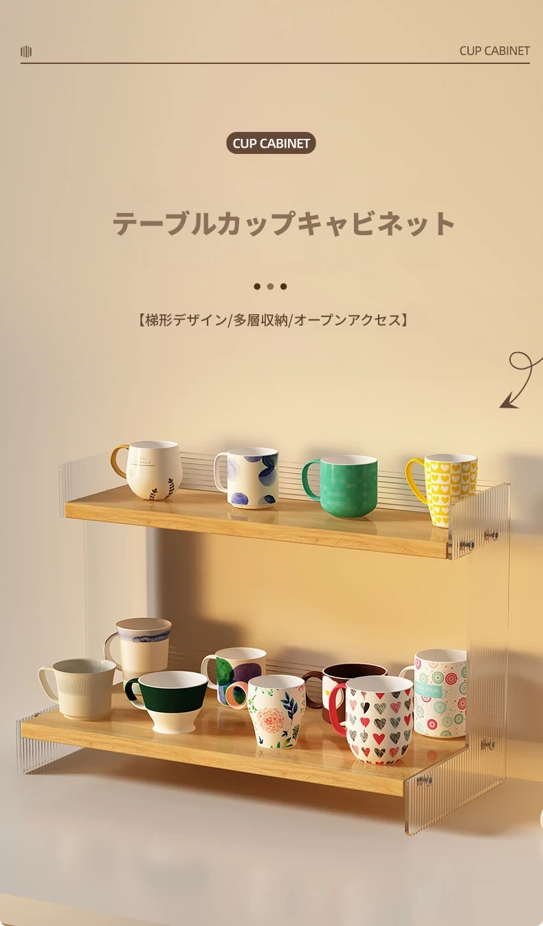デスク用マグ収納ラック - コーヒーカップやティーセットを美しく整理!テーブルや作業スペースにぴったりのコンパクトなデザインで、あなたのデスクをスッキリ整頓。デザイン性と機能性を兼ね備えた必需品です!