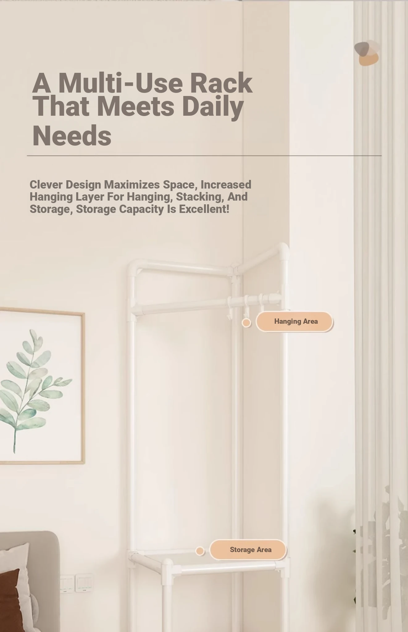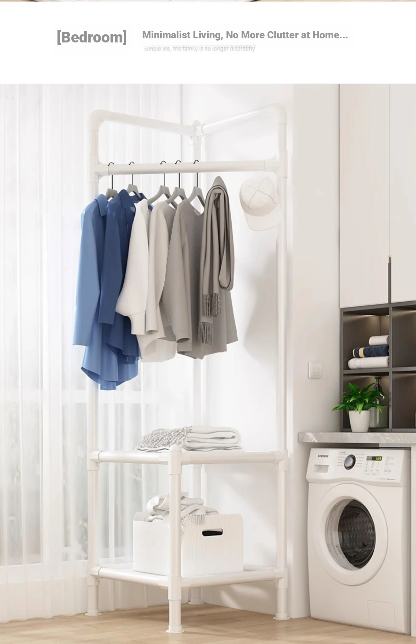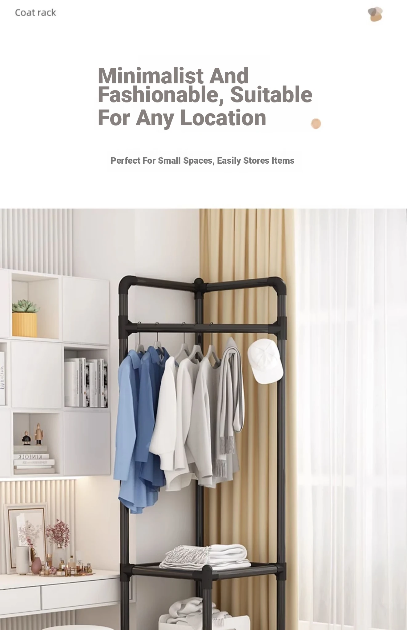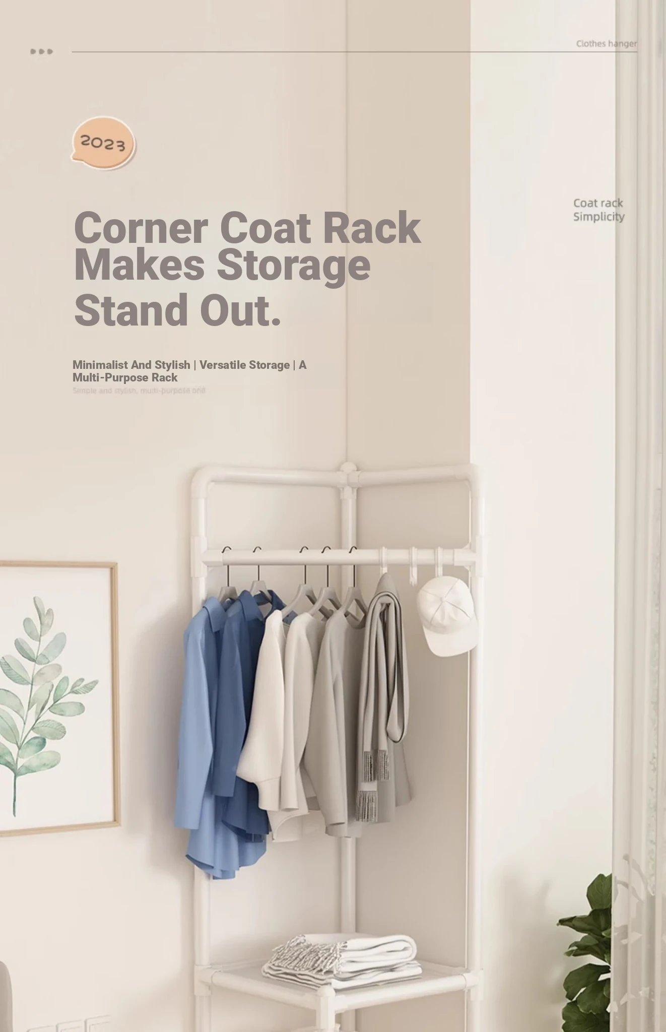 角に置ける便利な衣類ハンガー!寝室や玄関に最適な収納ラック。シンプルでスタイリッシュなデザインで、衣服や小物をすっきり整理。家族みんなのための必需品!