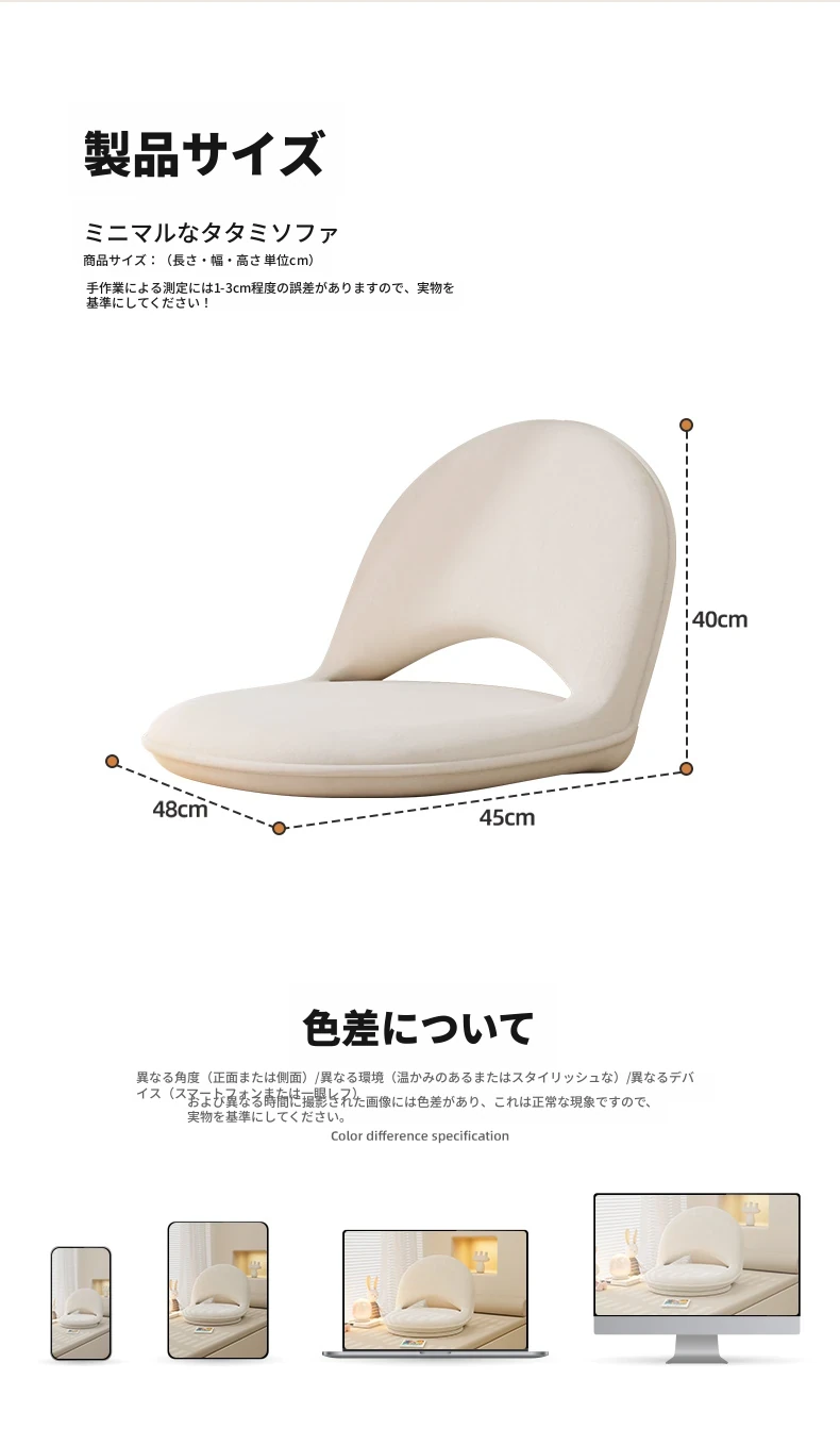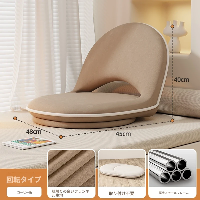 リラックスできる懶人ソファ!畳スタイルのバルコニーや窓際にぴったりなクッション付き一人掛け椅子。子供にも最適なコンパクトサイズで、寝室やリビングでのくつろぎタイムを演出します。